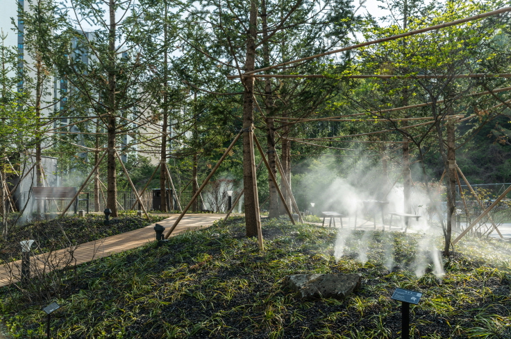 Pangyo Firsthill Prugio is an apartment complex with 974 units located in Sungnam City, the leading city of the 4th industrial revolution in South Korea. Due the rapid expansion of the commercial and industrial district in the city, it required the city government to build new residential area to facilitate numbers of people flowing into the city. Therefore, the development of Pangyo Daejang district sized with approximately 6,000 residential units took place in 2014 and was completed in late May, 2021. Pango Firsthill Prugio is the largest apartment complex in the area. Thanks to the mountains and forests surrounding the complex, the landscape planning was mailnly considered the harmony with the surrounding environment to be seen as part of the forest. Furthermore, the core concepts of the landscape planning were “Environmentally Friendly” and “Participating Gardens”. The residents of the complex will be the participating gardeners under the program prepared by the construction company and the management company. There are 3 main categories of the landscape planning as follows. 1. Tea House – A cliff house like Pergola with an artificial fall which was motivated from Tear-Drop Park in New York City 2. Prugio Garden – Korean Fir tree forest with wooden walking decks. 3. Special Gardens – 2 special gardens designed by 2 well known Korean garden designers. Pangyo Firsthill Prugio was awarded “2021 Landscape Award” in Hankyung Culture and Residential Award by the one of the biggest Economy Daily, Hankyung Economy Daily. We, The association of Pangyo Firsthill Prugio Residents” are representing to submit the entry for Landscape Institute Award 2021. 1. Design There are three key factors Daewoo E&C’s landscape team had to consider when it comes to the landscape design for Firsthill Prugio Apartment Complex. 1) Landscape development connecting to the surrounding nature 2) To overcome the ground level differences due to the slopes 3) To implement diverse gardens Firsthill Prugio Apartment Complex was built on the hill, therefore, Daewoo E&C needed to find a way to overcome the ground level differences among blocks. There exist 5 ground level differences. The landscape design that Daewoo E&C thought of was to implement valleys by planting pine trees on the ground levels. (please, see the attachment – valley.jpg) Daewoo E&C planted large trees to be in harmony with the outskirts of the surrounding forest. Secondly, between the complex 1 and 2, rigida pine trees forest was established to be seen as one complex and the part of the complex. The double story tea house is another good example to overcome the ground level differences. Since the tea house was built in a place where there is a ground level difference, it is utilized the stairs the residents to access to the upper floor of the pergola itself and at the same time, used for a sidewalk to the upper blocks on the hill. 2. Sustainability Firsthill Prugio Apartment complex pursues an eco-friendly environment. It is planned to use the minimum amount of carbon energy to preserve the surrounding nature by using cutting edge technology. First, the most energy used for the landscape of the apartment complex comes from the energy generated by solar panels installed on the roof of the blocks. Second, the water used for the artificial waterfall besides the tea house uses recycled water resources from rainwater reserve. Finally, the green space between the complex 1 and 2 was designed for the convenience of small animals to pass through, but the residents are not allowed to enter. However, a wooden bridge will be established above the green path for the residents to move to each complex. 3. Value criteria The landscape mainly values on human and nature. The original landscape plan of the apartment complex was a lot different from the landscape completed as of today. First of all, most residents didn’t value at the original landscape plan provided by Daewoo E&C at the beginning of the construction. Therefore, the resident’s association conducted a survey in the online community and decided to request to modify the plan to Daewoo E&C to reflect residents’ opinions as much as possible. Gratefully, Daewoo E&C accepted residents’ request and the current landscape was created through the collaboration between the builder and users. From the idea generation to the implementation of the landscaping plan, Daewoo E&C and the representatives of the resident’s association worked together and held more than 10 meetings for 10 months. They also held a briefing session by inviting approximately 50 residents so that more residents’ opinions were reflected on the plan before the implementation started. Finally, the residents were very satisfied with the final outcome of the landscape. It was the resident association who suggested Daewoo E&C and the resident’s association work together to entry to local landscape awards and to this international award. 4. Professionalism 2 well known garden designers, Ms Ah-Rim Kwon and Young-jun Kim participated in the landscaping of the apartment complex. Ms Ah-Rim Kown – Awarded in Shanhai international Flower Festival Mr. Young Jun Kim – Awarded in Chaumont International Garden Festival Two gardening designers implemented an experimental garden that enhances space utilization experiencing outdoor living and a contemporary garden that symbolizes plants to human emotions respectively. In addition, Lumion 3 tool was utilized for the landscape design.