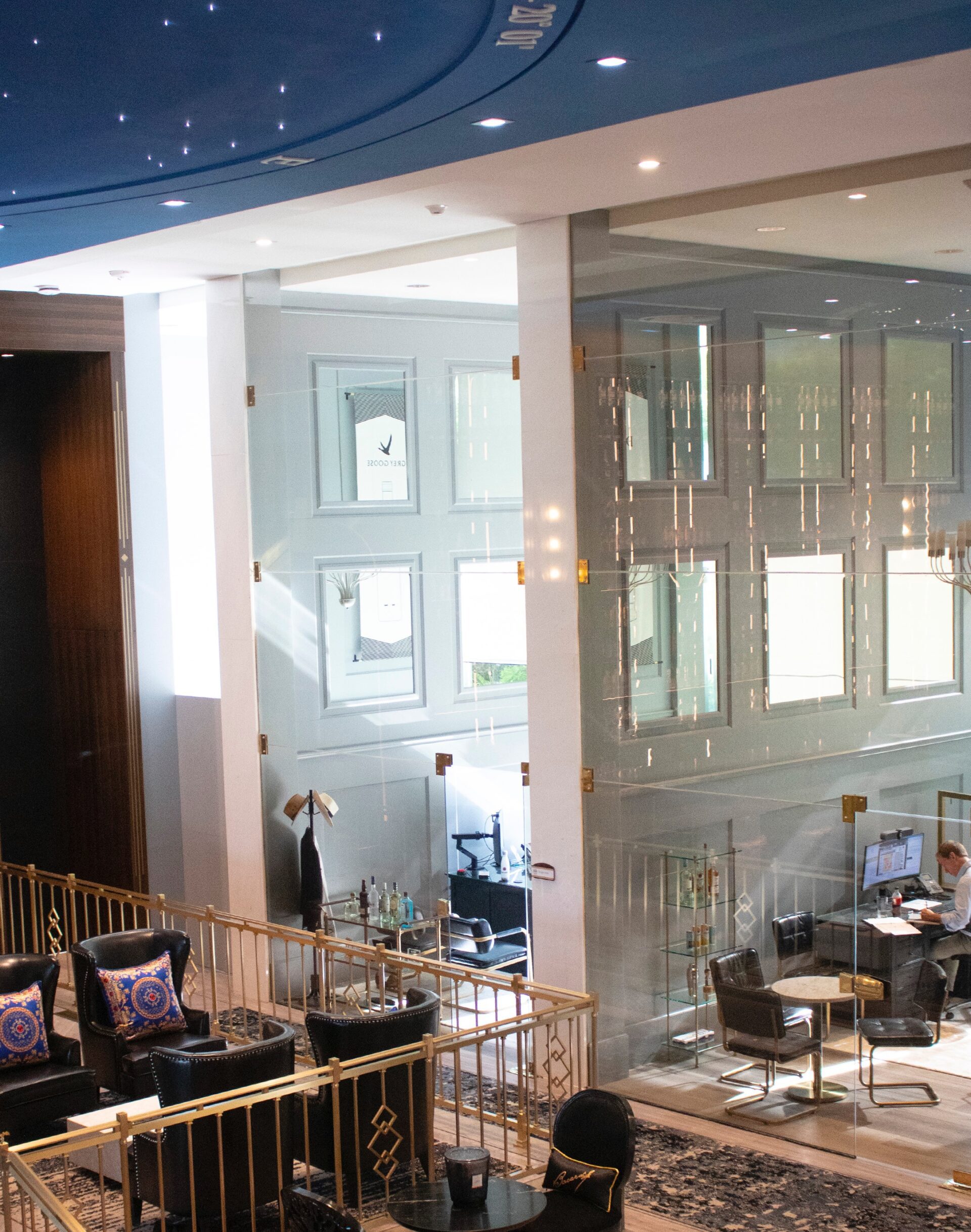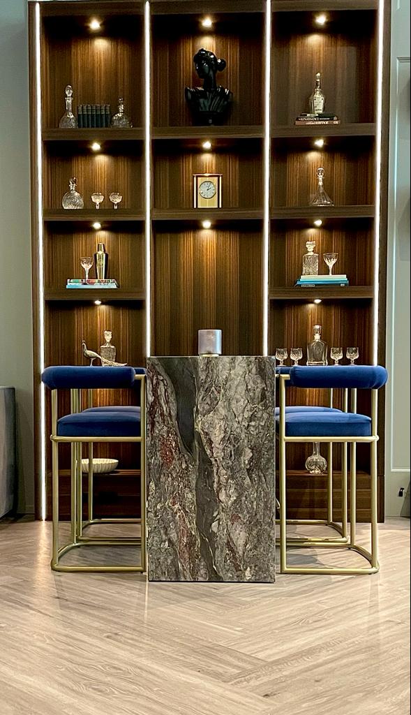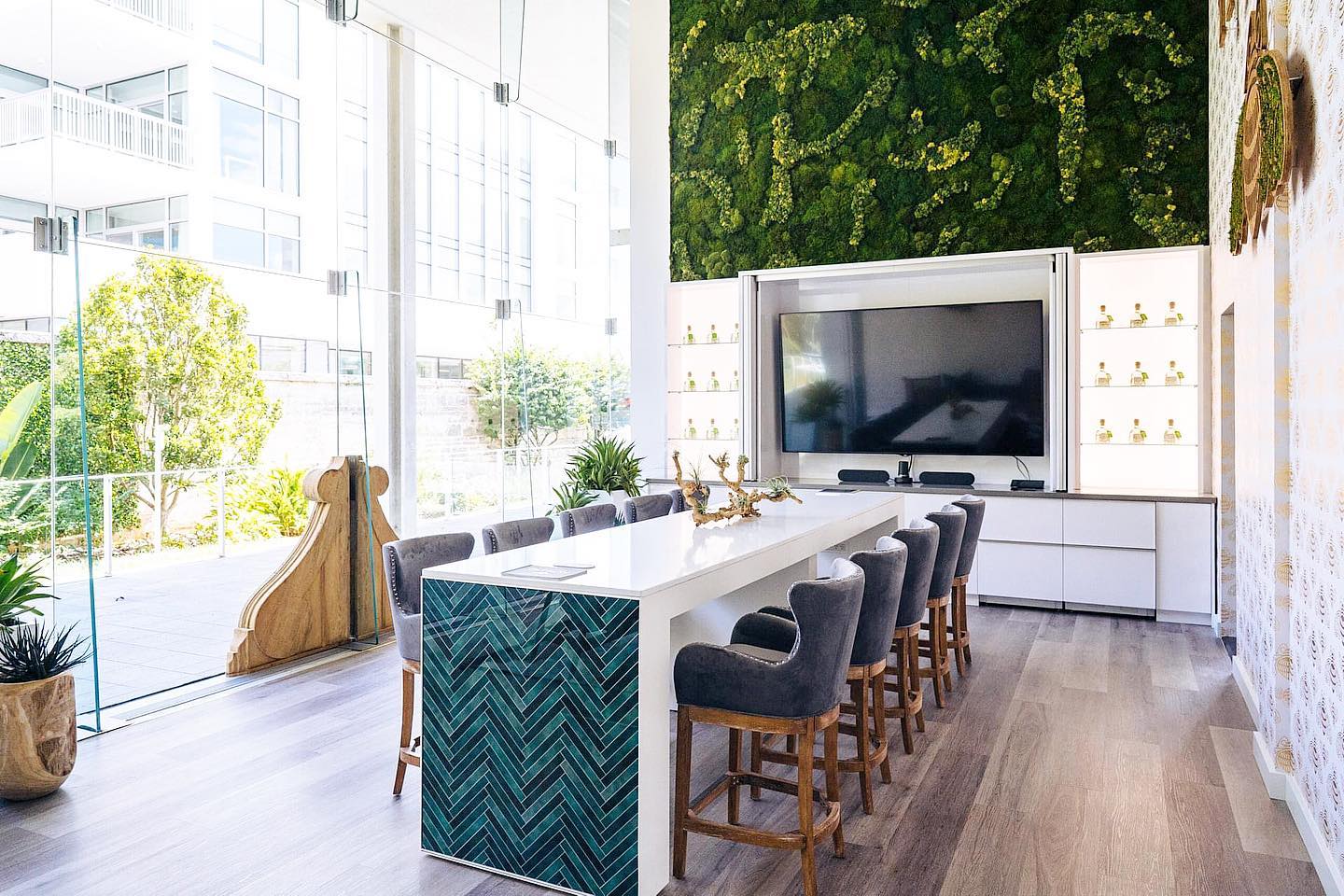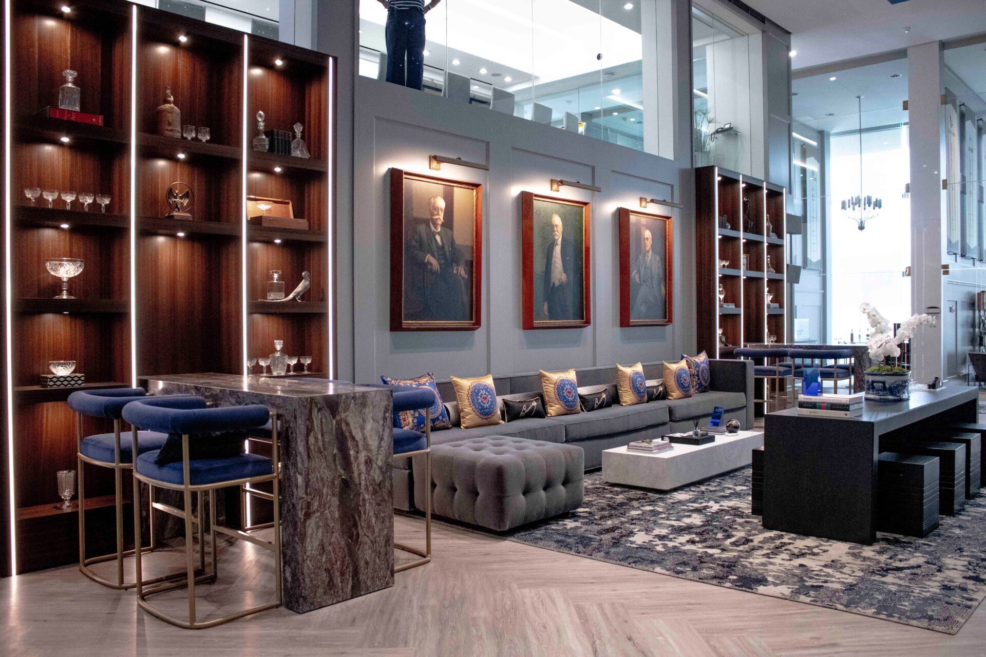 Bacardi Limited, the world’s largest privately-held spirit company, has been applying dynamics of Social Architecture since opening the doors of its global headquarters in Bermuda in 1965 as an ‘office without walls’. The building is inspired by an original design by renowned architect Ludwig Mies van der Rohe. These designs were intended for the company’s original headquarters in Santiago de Cuba that were never realized as the family and business was forced into exile from the island in 1960. Recent updates continue to revolutionize the idea of Social Architecture, such as applying Vaastu theory to include a layer of elemental awareness and social healing to experiential intention, particularly honoring the true center of the building. The epicenter of the inspiring, stylish, community space, and central to the sleek offices, is the 1862 Cocktail Bar, a one-of-a-kind, brand portfolio lounge, which invites employees and special guests alike to sit for a drink and consider the breadth of Bacardi while connecting in a personal way. Digital engagement and real-world connection come together in this space with a state-of-the-art AV system to ensure seamless town hall meetings, and cutting-edge advancements such as VR tours of distilleries and product NFTs. Adjoining glass paneled meeting rooms have been upgraded to invite fresh ideas with innovative installations such as living walls as well as intriguing, custom design touches like metallic logo wallpaper. All architectural decisions for offices and boardrooms were designed to be adaptable for multipurpose use. Stacks of high art books in the variety of luxurious seating vignettes, inviting you to sit, align, and as the Bacardi Limited purpose states, “make moments matter”.