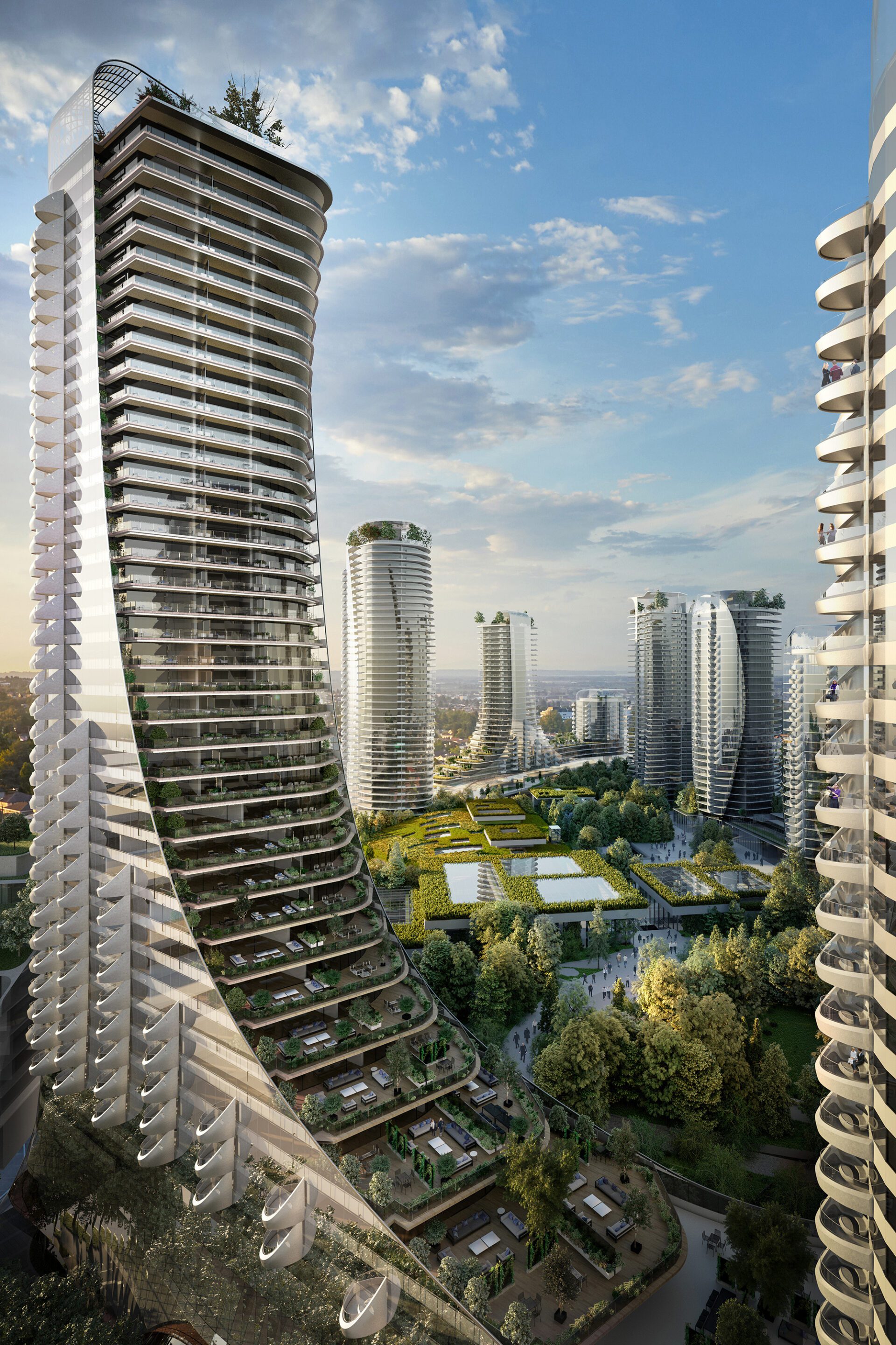 The architectural expression of Oakridge combines positive attributes from planning movements that integrate city and nature, and the design narrative begins by reintroducing parkland displaced by the original mall.