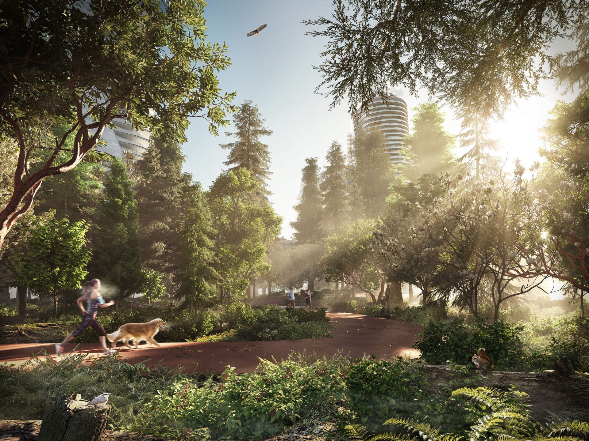 As a complete community, Oakridge includes a mix of residential, retail, office, public realm, civic, and cultural elements. This includes over 3,000 new homes with 420 affordable units; workspace supporting 5,300+ full-time jobs; an array of civic amenities including a 9-acre public park, community centre, library, daycare, performance spaces and senior’s centre; new retail plus a dynamic foodhall integrated with the park to encourage engagement.