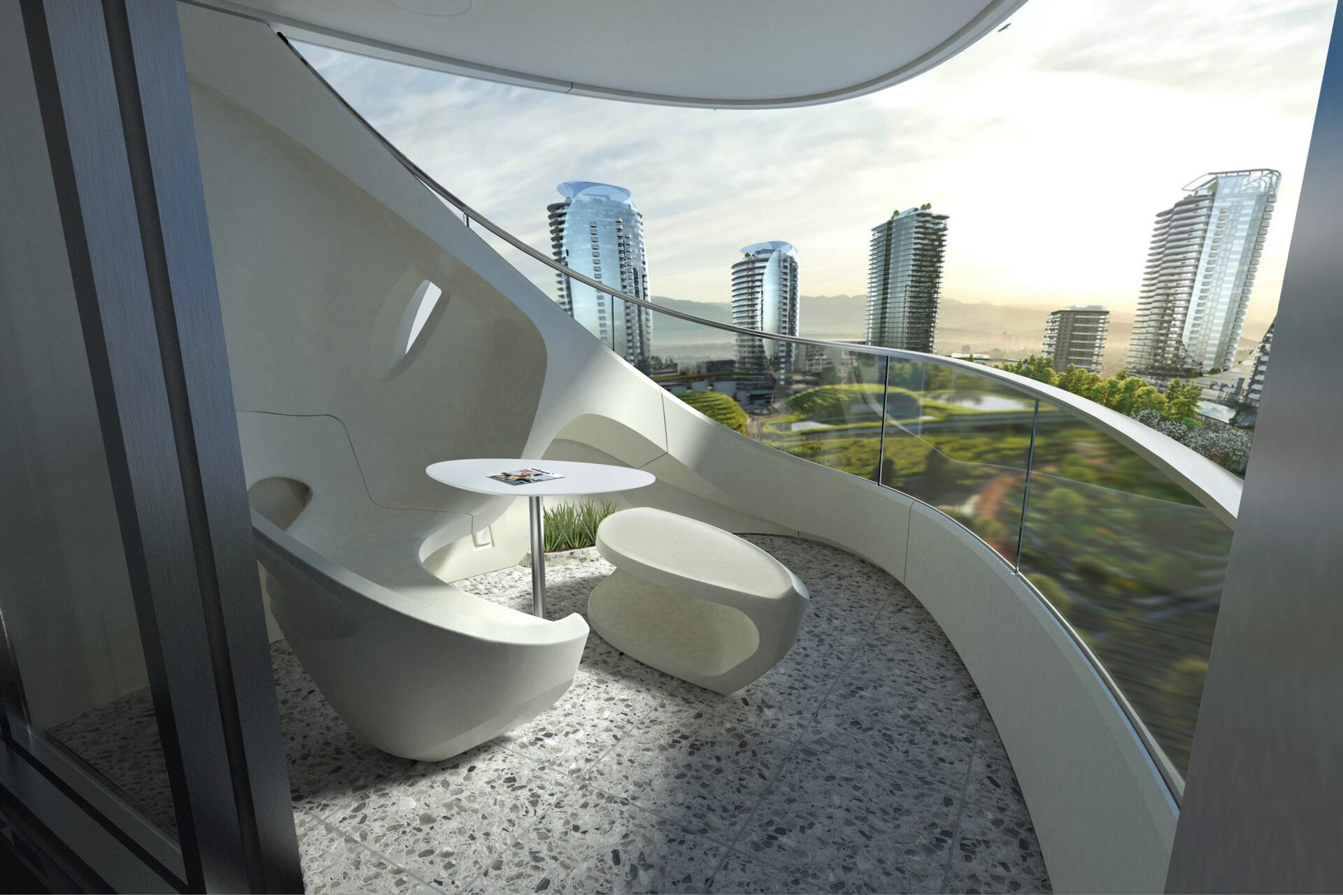 A design vocabulary of ‘skin and skeleton’ builds on this, using ‘draped’ landscape as a key element and reinterpreting the residential towers as emerging from the landscape, adorned with their own ‘skins’. The tower slabs, the ‘bones’, are seen along edges where skins are pulled back revealing balconies and storefronts, reinforcing visual and physical permeability at grade. The act of wrapping or revealing defines the relationship between landscape and buildings, breaking up massing while providing programmatic identity.