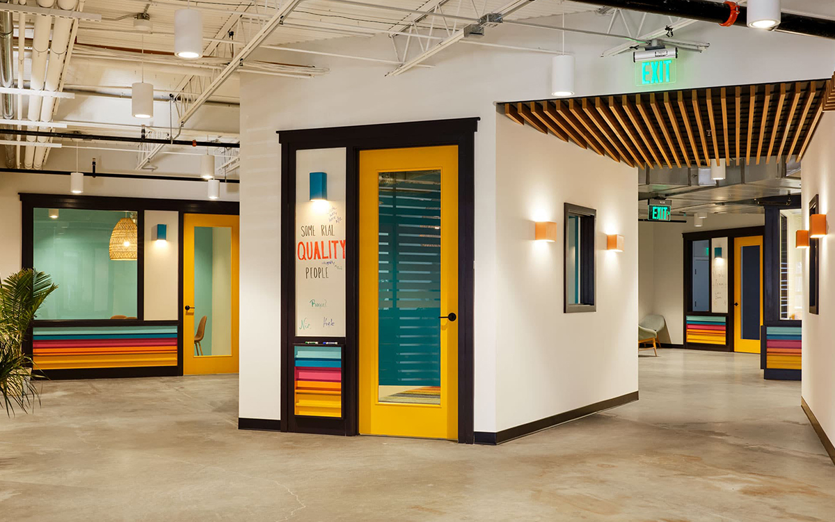 Having partnered with Siete for several years to build their brand through packaging, promotionals, and trade show events, the familia asked Drawn to make this old factory feel like a Mexican-American home for 100 co-workers. It was important, however, that we design a home that matched Siete’s working culture.