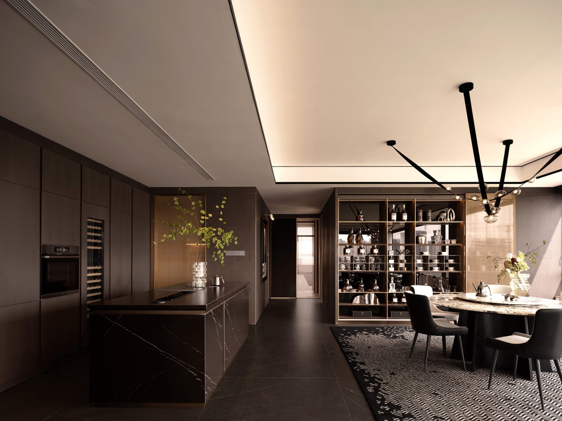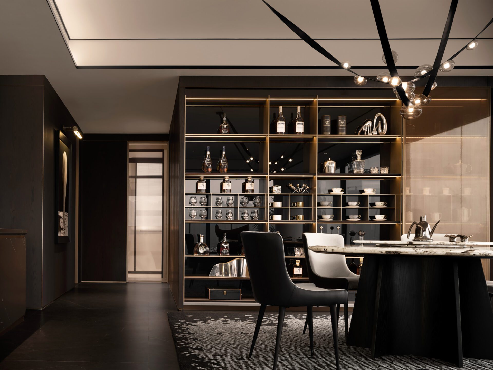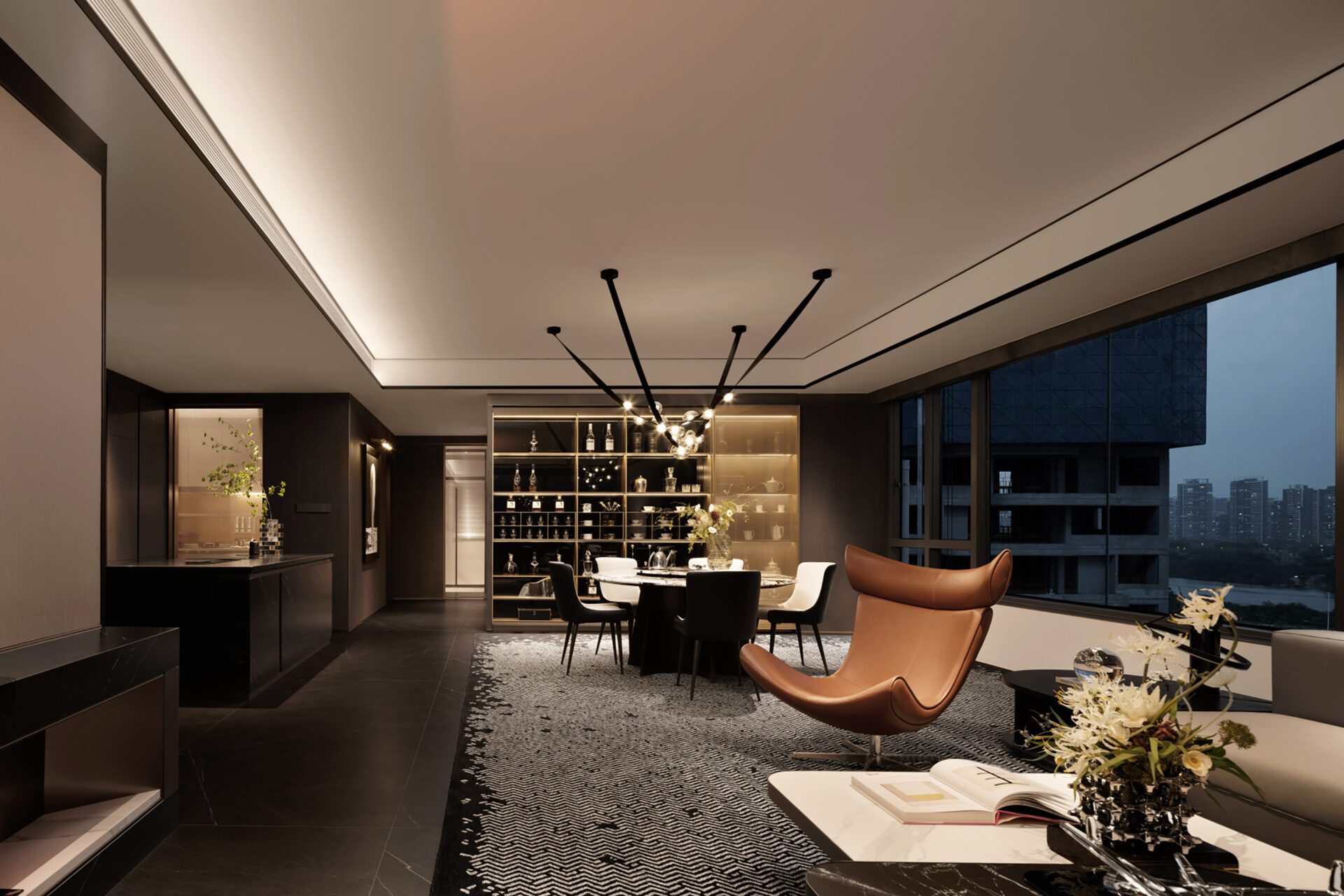 The residence is an art gallery that contains nature, exhibits life and hides the trivial. With a simple layout, it is not only the storage system of the home, but also the endless possibilities of lifestyle. The city bears witness to the long flow of the home, while the home records the changing seasons of nature. ENJOYDESIGN uses a layout that overturns the boundaries of spatial scale to allow the city and nature to become the home of the family, interpreting the aesthetics of Italian-style elegantly sculpted living in the mesmerizing light of the lake. From the luxury scale to the creation of scenes, the design controls the "equal rights to the living field" with ease, creating the ultimate spatial enjoyment for the towering circles. The construction of the entire spatial order precisely expresses the effortless style, comfortable scale, open vision and boundless field, interpreting the unique romance of Italian elegance.