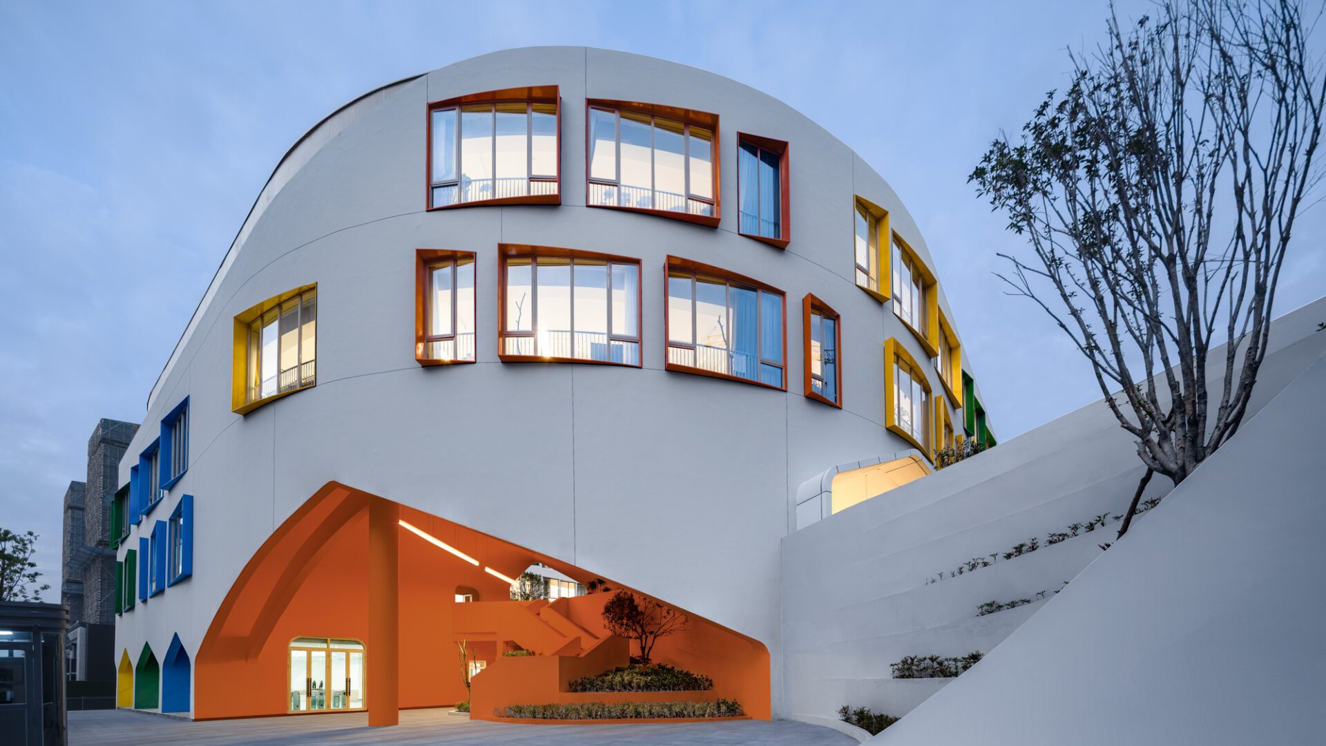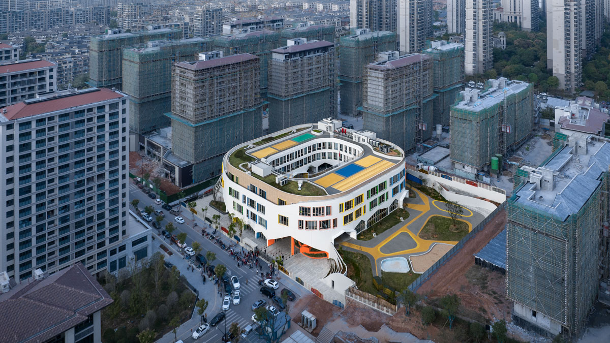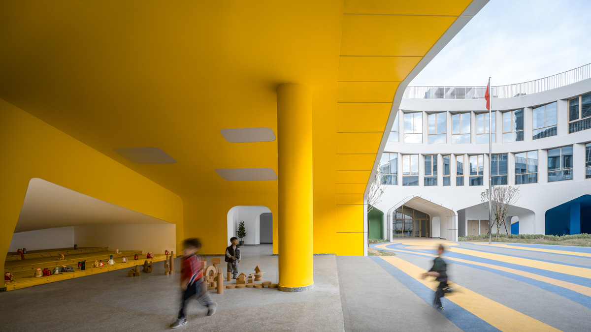 The Jiaogong kindergarten is located in the Smart New Town of Quzhou and has a total construction area of 11,568 square meters. The project site is located in a high-density residential area surrounded by residential buildings on all sides except the west. As the demand for activity space increases for children's growth, the land for campus construction is extremely limited. Therefore, how to achieve maximum freedom within the limited space and use play and joy to stimulate children's motivation for autonomous exploration and learning has become the main topic of discussion in this case.