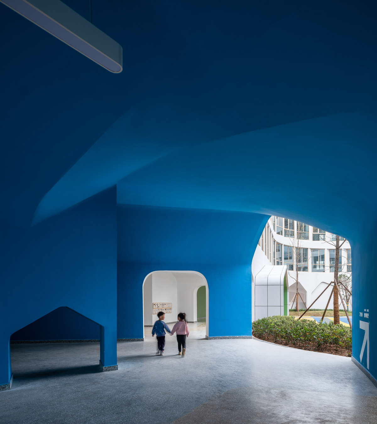 The traditional practice had divided the campus into teaching and activity areas separately, which would significantly limit the children's activity space. In the hope of giving back the land to the children, the original ecological terrain has been preserved and transformed into a spaceship-shaped playground that stimulates curiosity and desire for exploration.