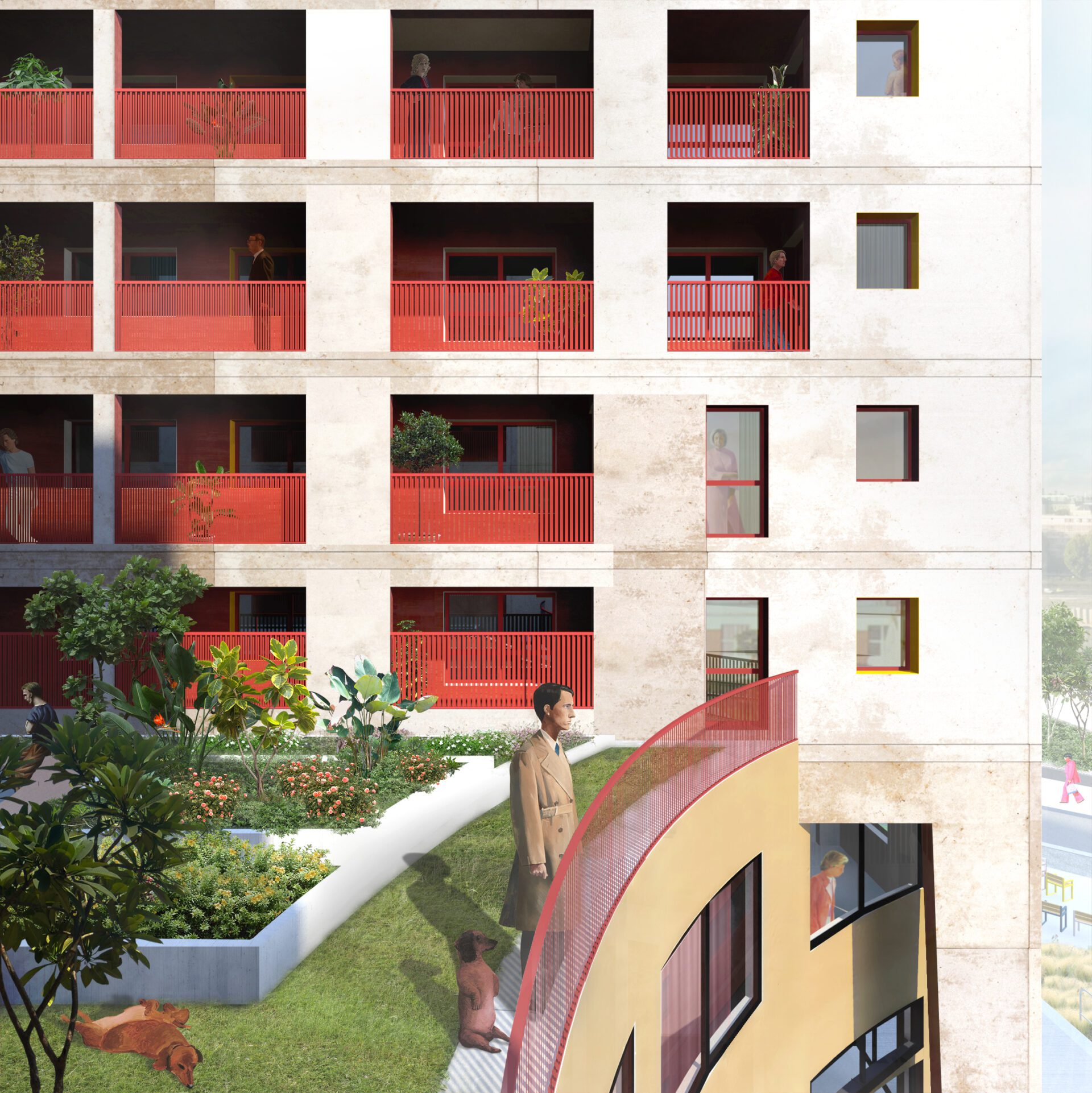 START is composed of 5 buildings ranging from 12 to 18 floors containing 288 experimental apartments, and 14 commercial spaces. The total surface area of the housing project is 22,863 m², of which 19,700 m² is residential, including 34% social housing.