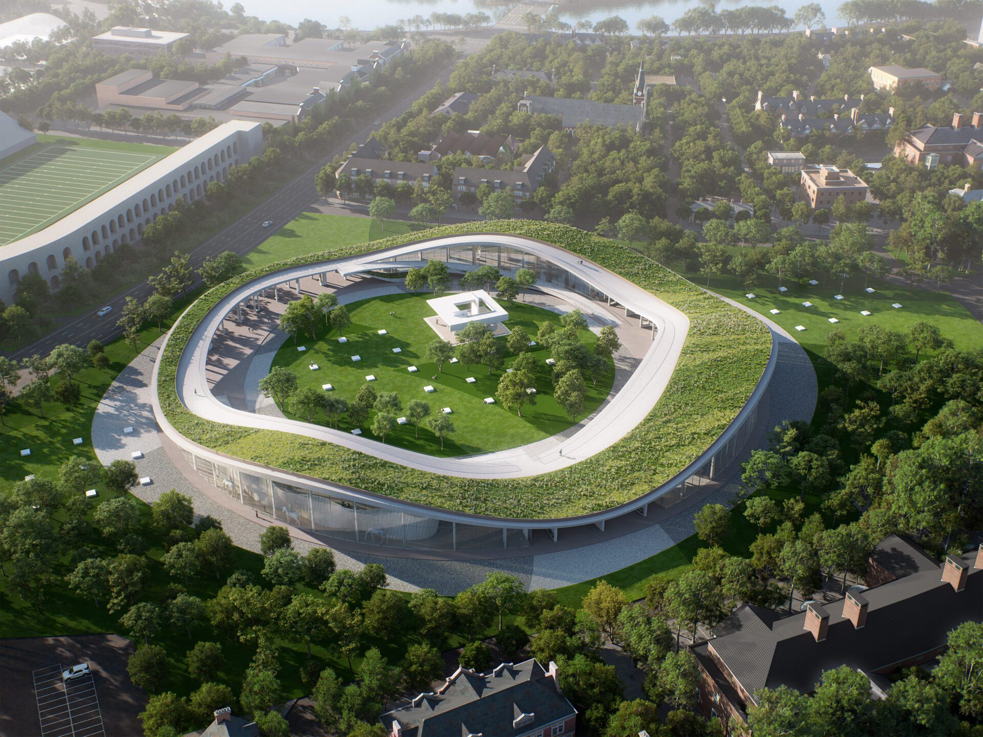 Aero Grove is a public cultural center designed for a prominent green space adjacent to the Harvard University campus in Boston. This site is a vital communal area regularly frequented by students, professors, and local residents—for reading, post-class discussions, and leisure. It serves as one of the most important public gathering spaces in the neighborhood.