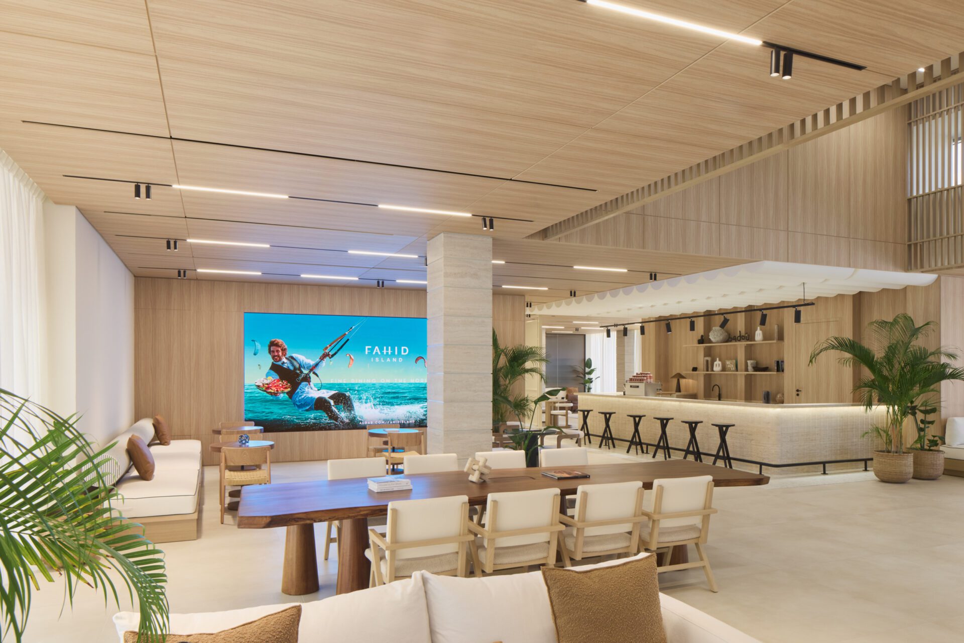 Inspired by the timeless charm of the Mediterranean, the design of the Al Fahid Sales Center draws from the elegant aesthetics of Greek, Italian, and Spanish coastal living. The concept, “Mediterranean Escape,” was developed to embody the authentic spirit of the island, seamlessly infusing its character into every aspect of the interior.