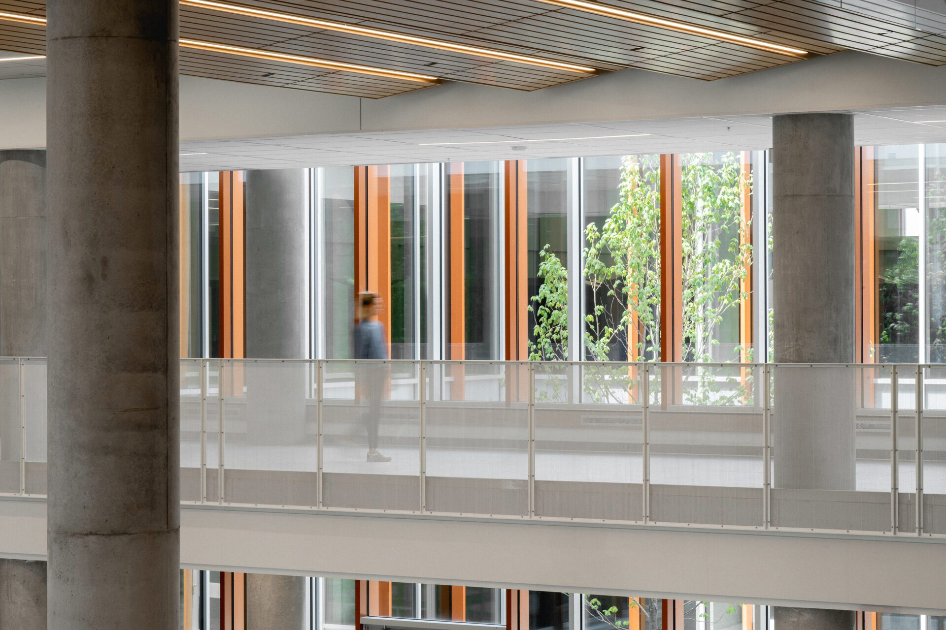 A biophilic approach guides the project, integrating indigenous planting, maximizing natural daylight, enhancing water management, and encouraging active transportation. A black maple tree anchors the landscape at the heart of the school, joining a mix of preserved and newly planted species. Together with targeted wellness strategies, these features create a strong connection between users and the natural environment.