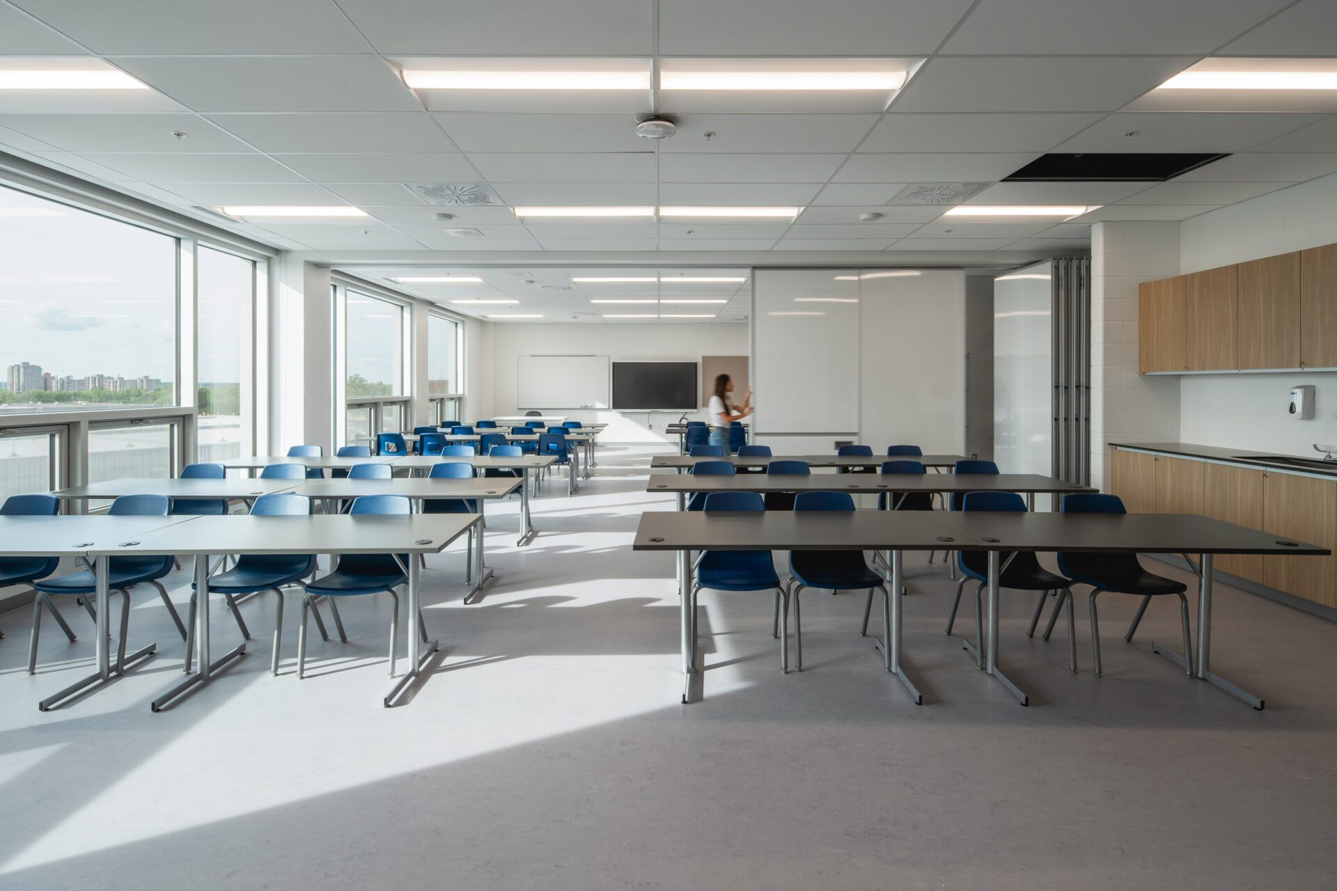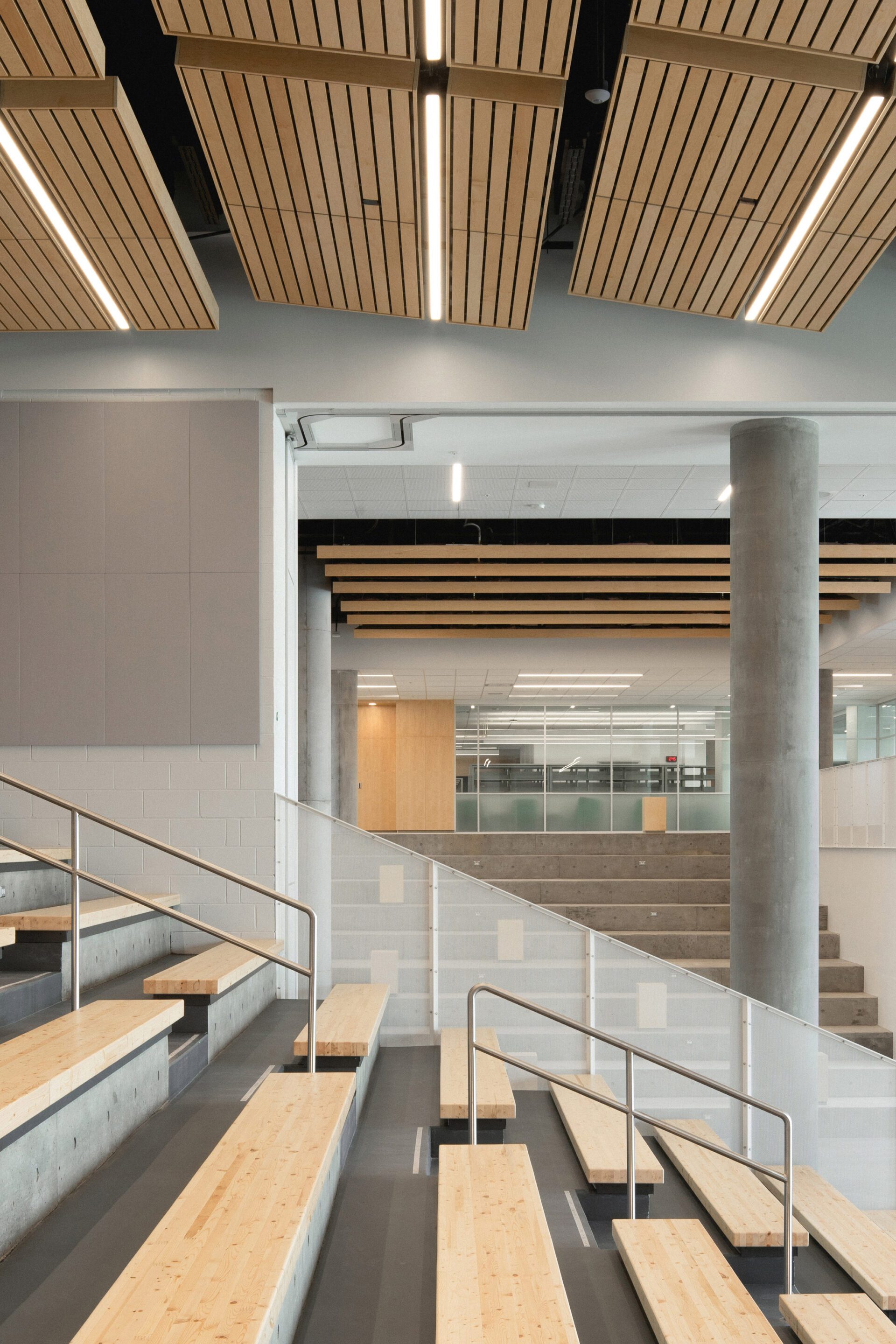 The Aux Mille-Voix high school embodies a forward-thinking vision of education—evolving, sustainable, and inclusive. As part of Quebec’s initiative to renew education infrastructure, the project goes beyond the traditional concept of a school to transform it into a true public building: a place where people meet and interact, bringing life to its neighbourhood.