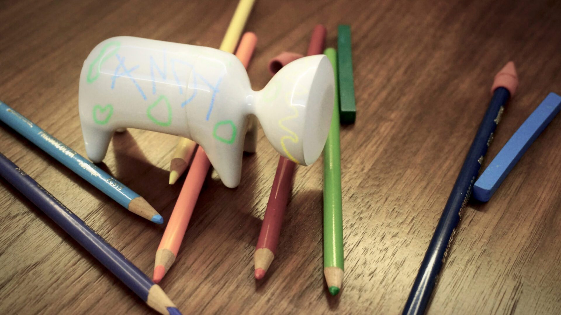 Conceived as a targeted, portable lighting solution and interactive design object in equal parts, Baby Spot is a spirited take on the traditional flashlight that also functions as a child’s toy. When on, its light weight, cordless compact form, and battery-powered LED bulb provide targeted illumination ideal for those in need of mobile light emission. Its durable high polish plastic exterior provides an ideal surface on which to draw with markers and is entirely cleanable, allowing for endless customization and creativity. Its materiality also makes Baby Spot realistic on a technical and economical level to develop and market large-scale while remaining sensitive to environmental impact. Ergonomically, its simple and grip-friendly design makes it easy for both children and adults to use and provides a sense of joy to the user in addition to fulfilling its practical purpose.