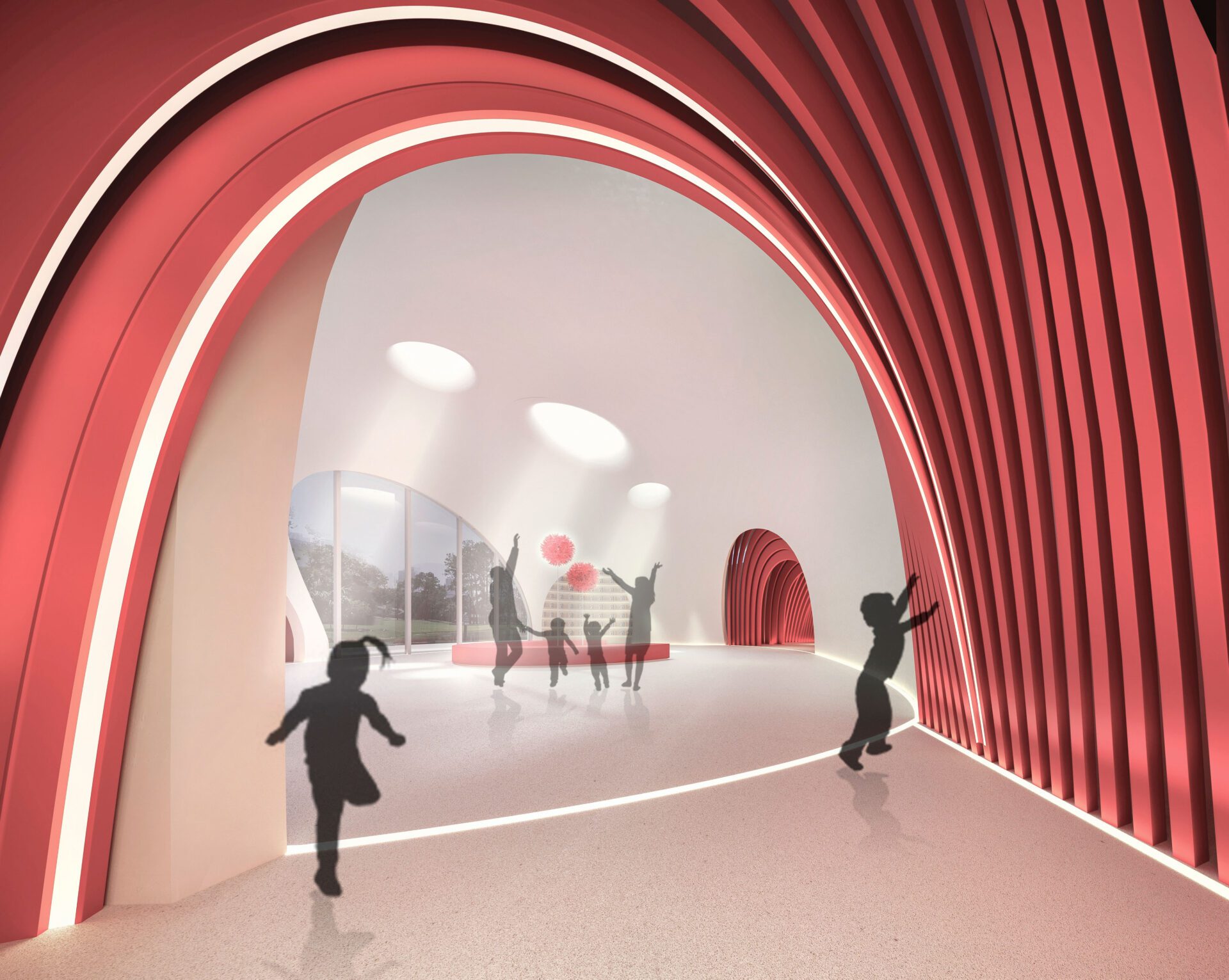 The design intends to create a landscaped kindergarten that provides functional experiences and enhances the urban environment; a themed pre-educational space which conforms to the ideas of preschool students and has unique features; a kindergarten with a cultural context that interacts with the urban environment; an ecological kindergarten that integrates plants with architecture as well as a safe campus that offers protection for kids.