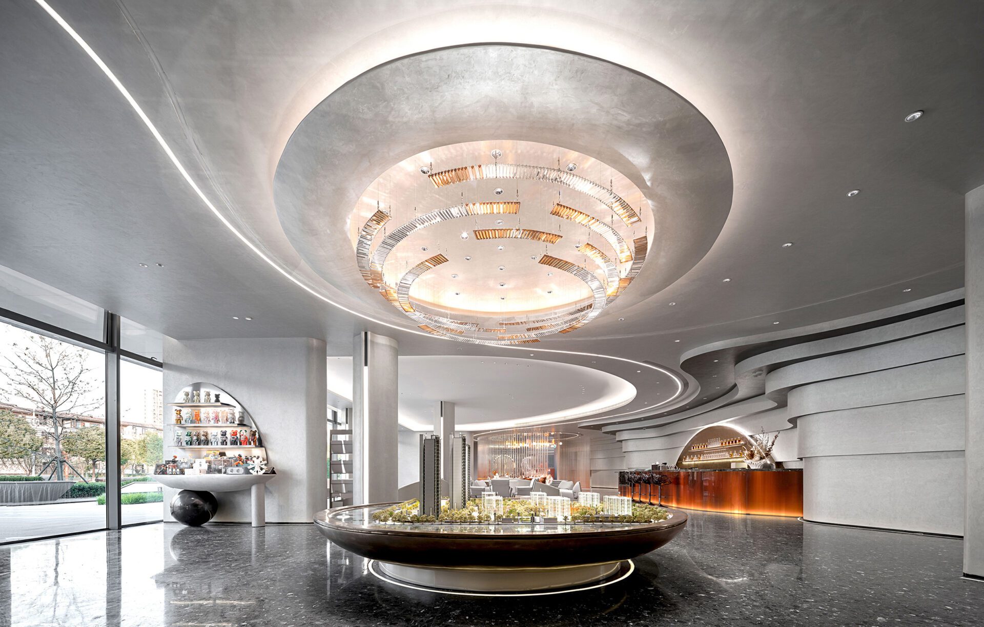 The poetic orbit remains the inspiration for the sand table area. People feel a sense of purity at the sight of smooth lines and elegant colors. As such, an “island in the air” comes into being.