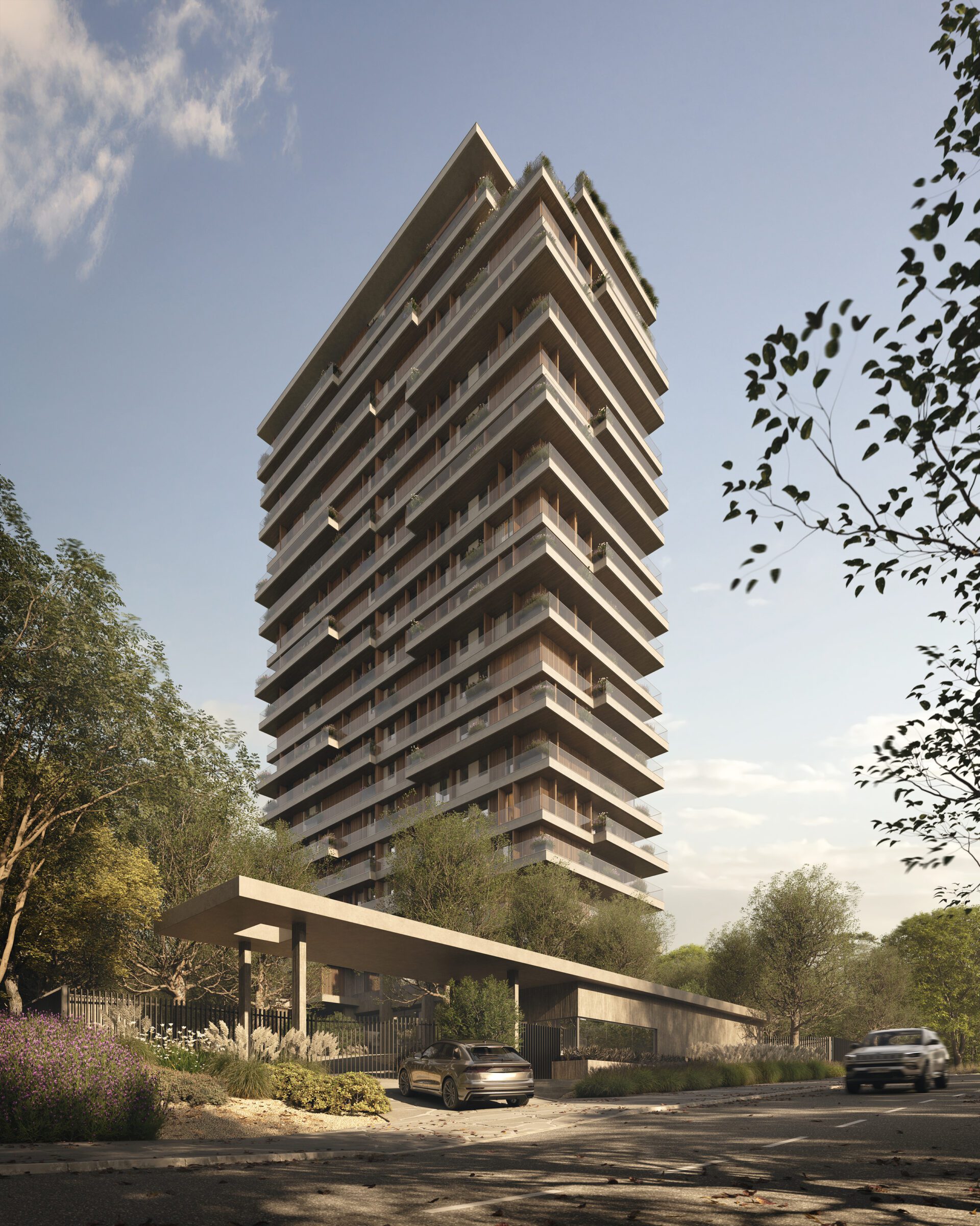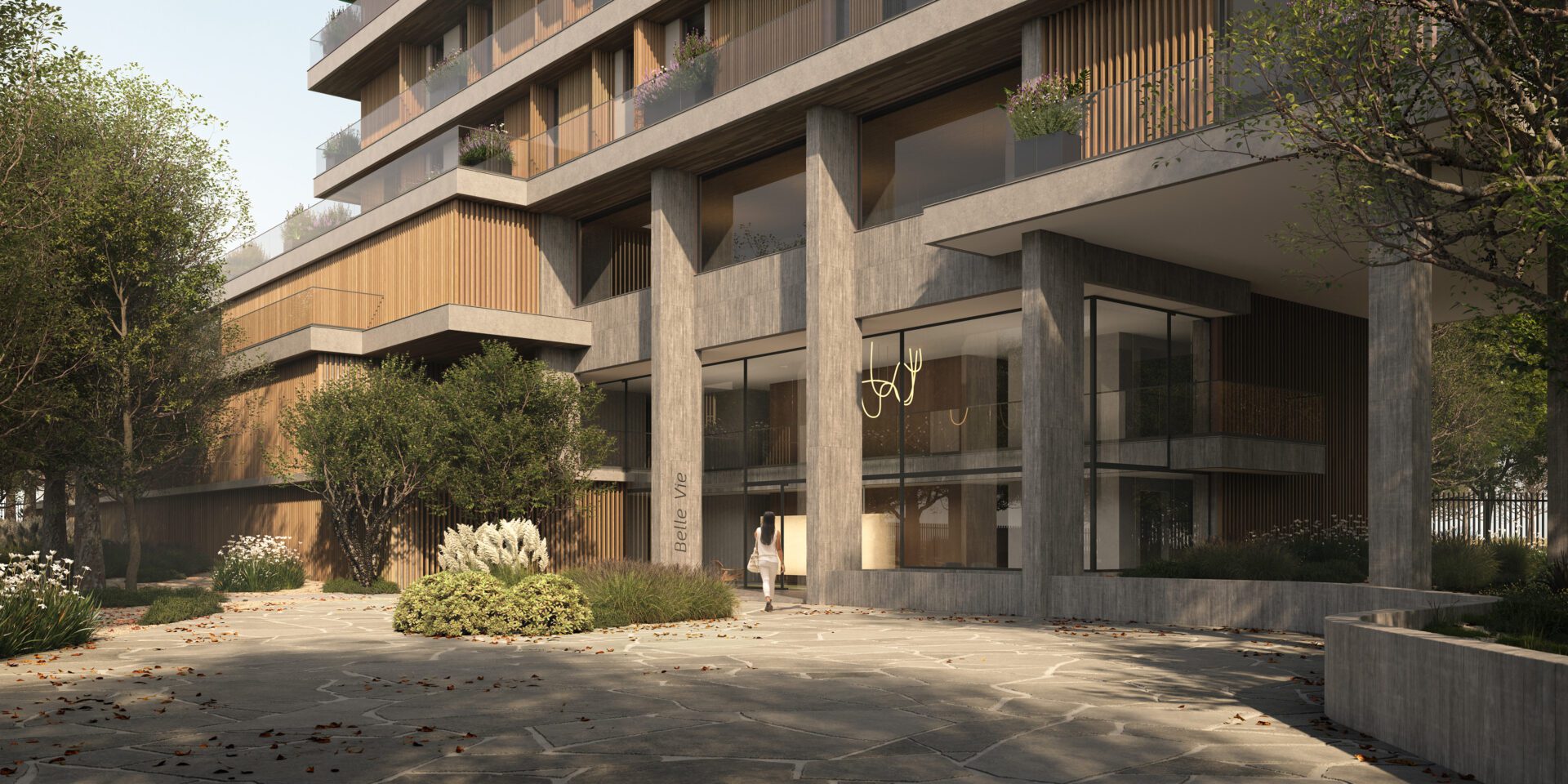Set within a context where native vegetation plays the leading role, the Belle Vie building proposes an architecture deeply connected to nature, from conceptual foundations to a volumetric composition that subtly mirrors the structure of a tree. Belle Vie continues the landscape. It is a space for contemplation and introspection. A place where life unfolds slowly, peacefully.