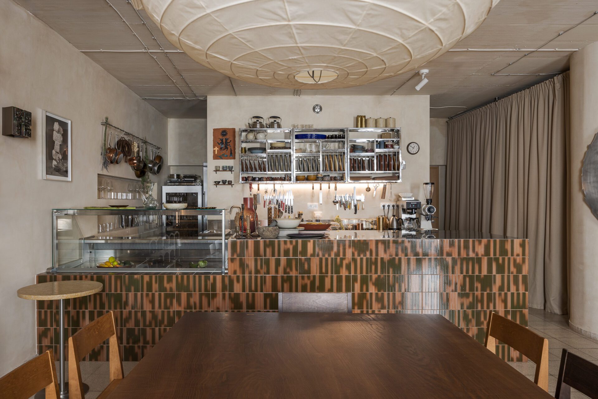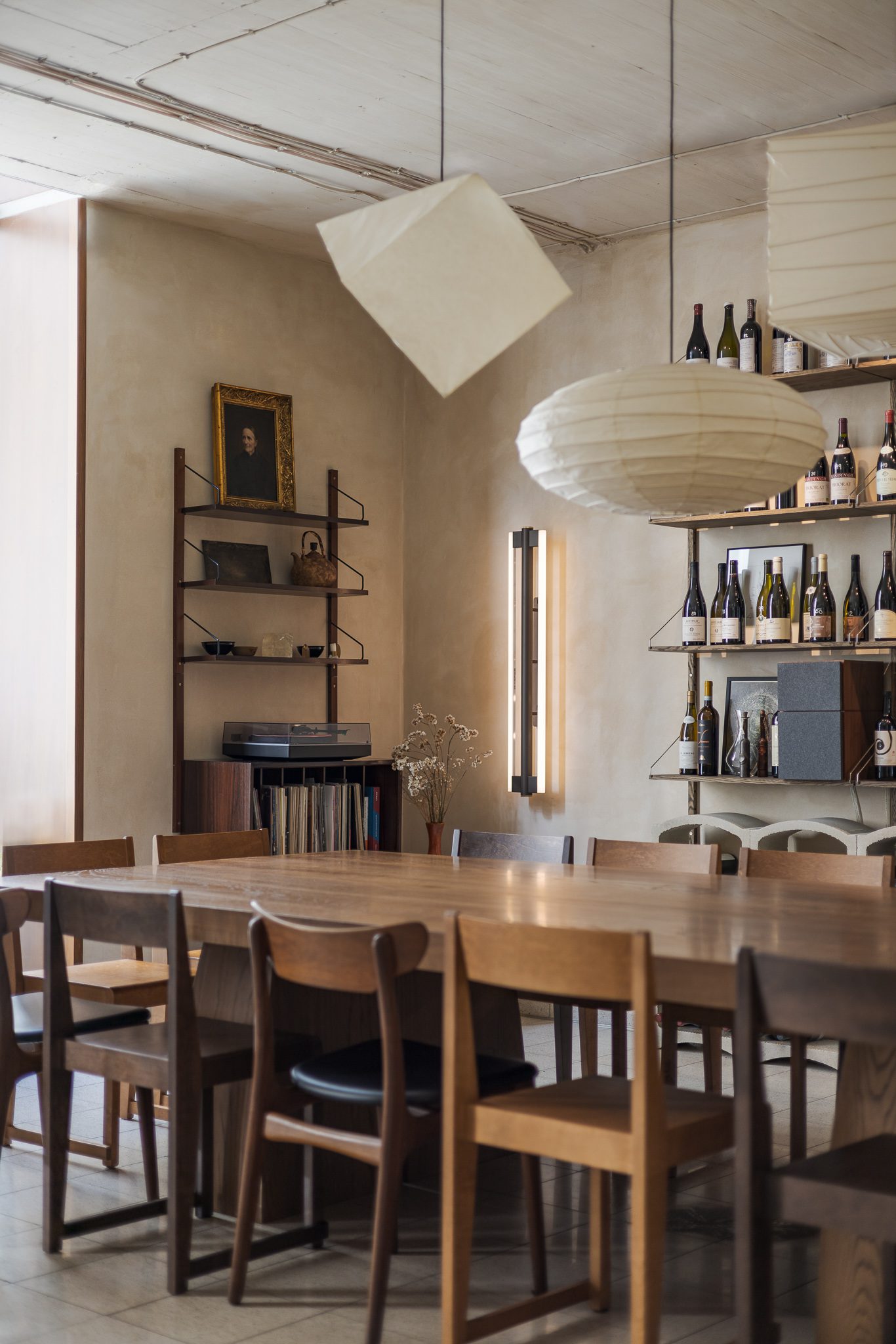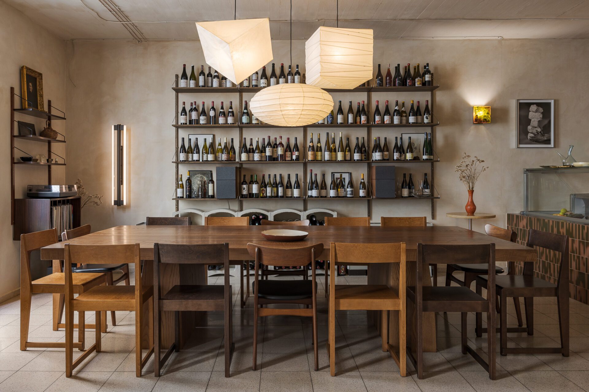 A space carefully curated from the owners' travels. Fine dining for the stomach and the eyes. Combinations of materials, textures, and flavors create an organized chaos that invites you to gather around a large table in the subdued atmosphere of a ground-floor space on a narrow old town street.