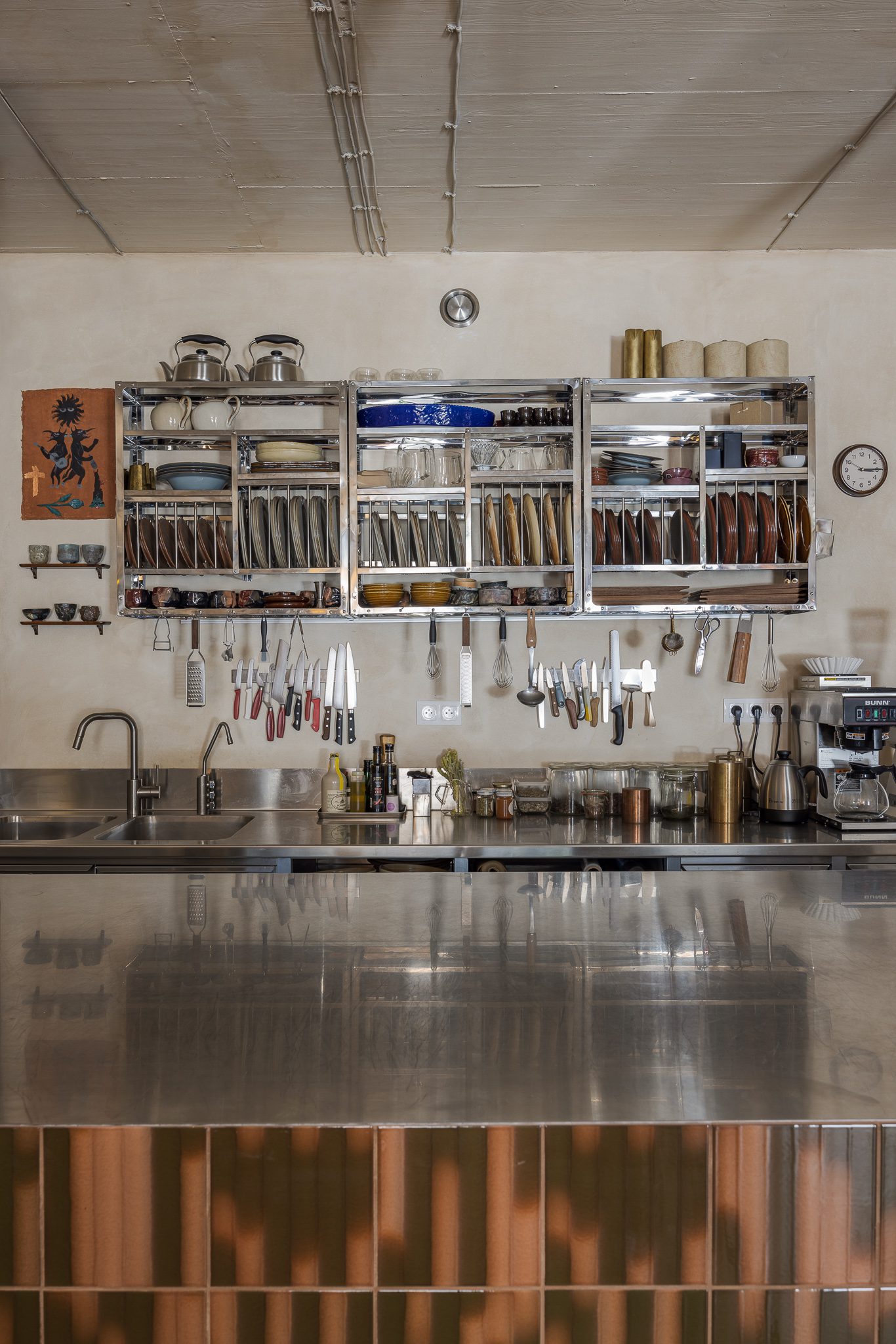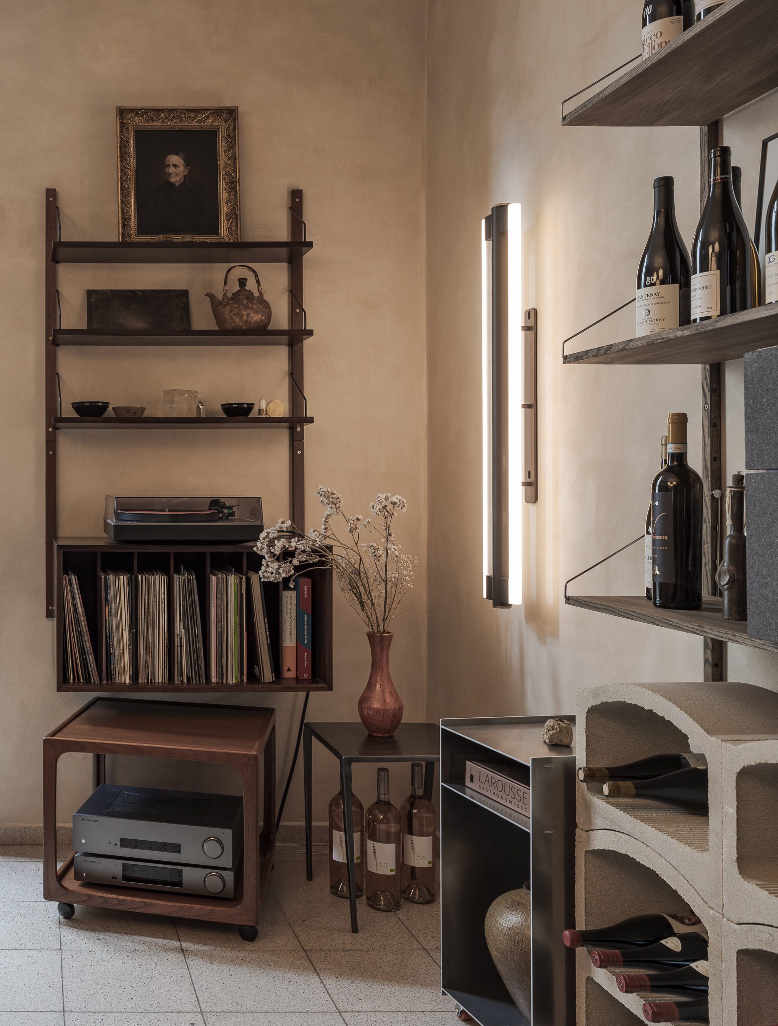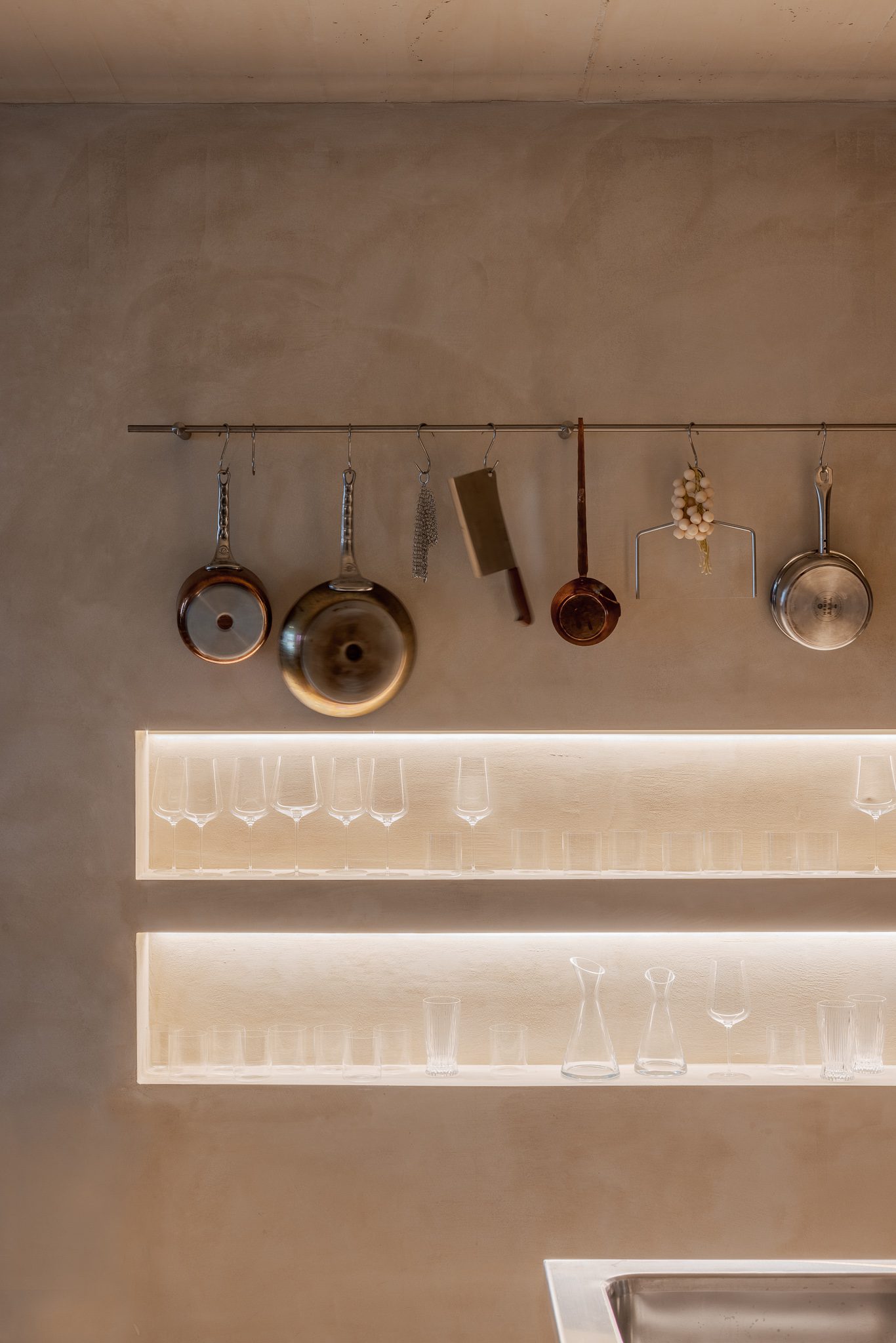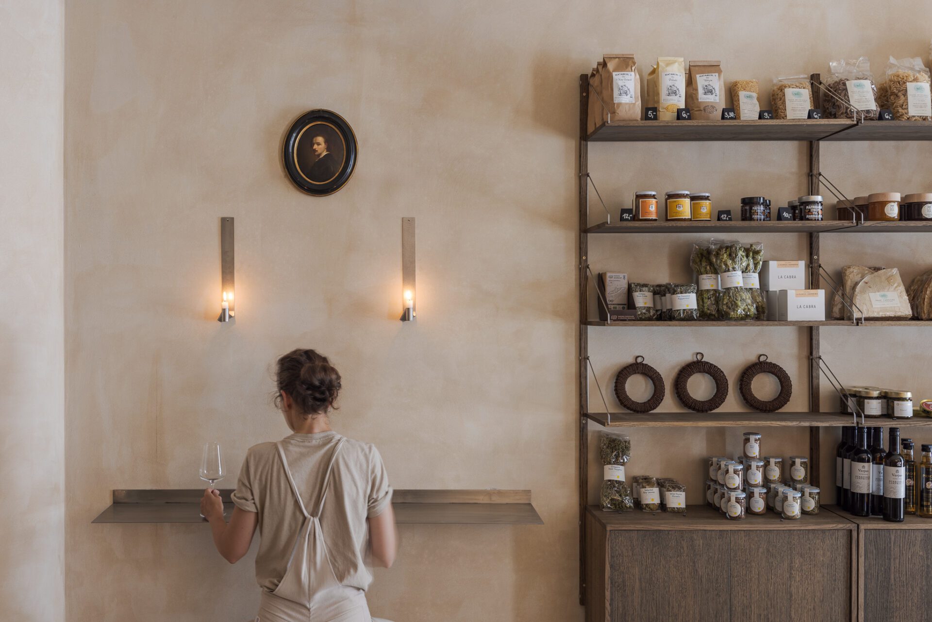 A space carefully curated from the owners' travels. Fine dining for the stomach and the eyes. Combinations of materials, textures, and flavors create an organized chaos that invites you to gather around a large table in the subdued atmosphere of a ground-floor space on a narrow old town street.