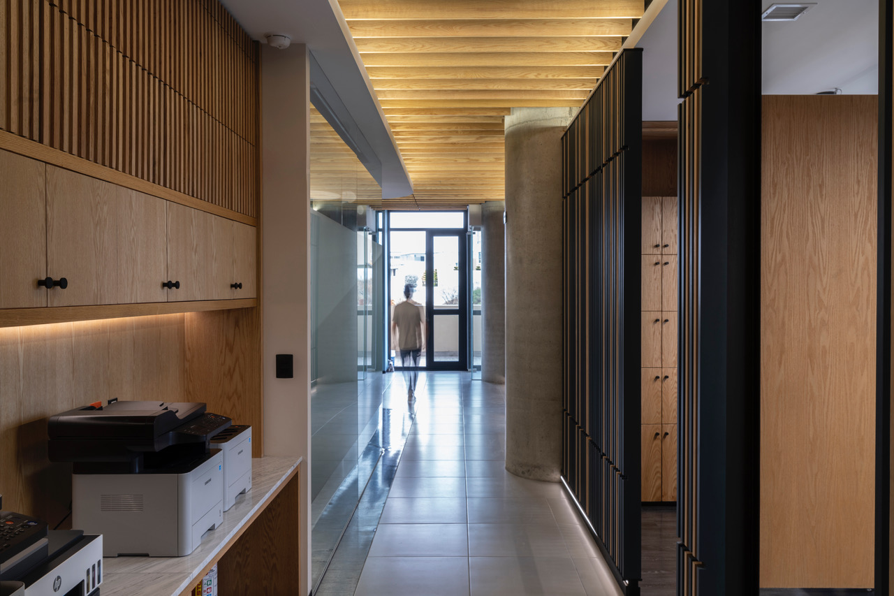 Starting from the access, through rhythm we sought to generate a skin that would envelop the spaces giving them privacy/acoustics; We created a multisensory experience using textures on ceilings and walls through architectural elements, such as the skin that surrounds the heart of the project, which is the meeting room, the place where everything converges. We integrate carpentry lattices with lights and shadows to provide visual and acoustic privacy without diminishing/interrupting communication or teamwork.