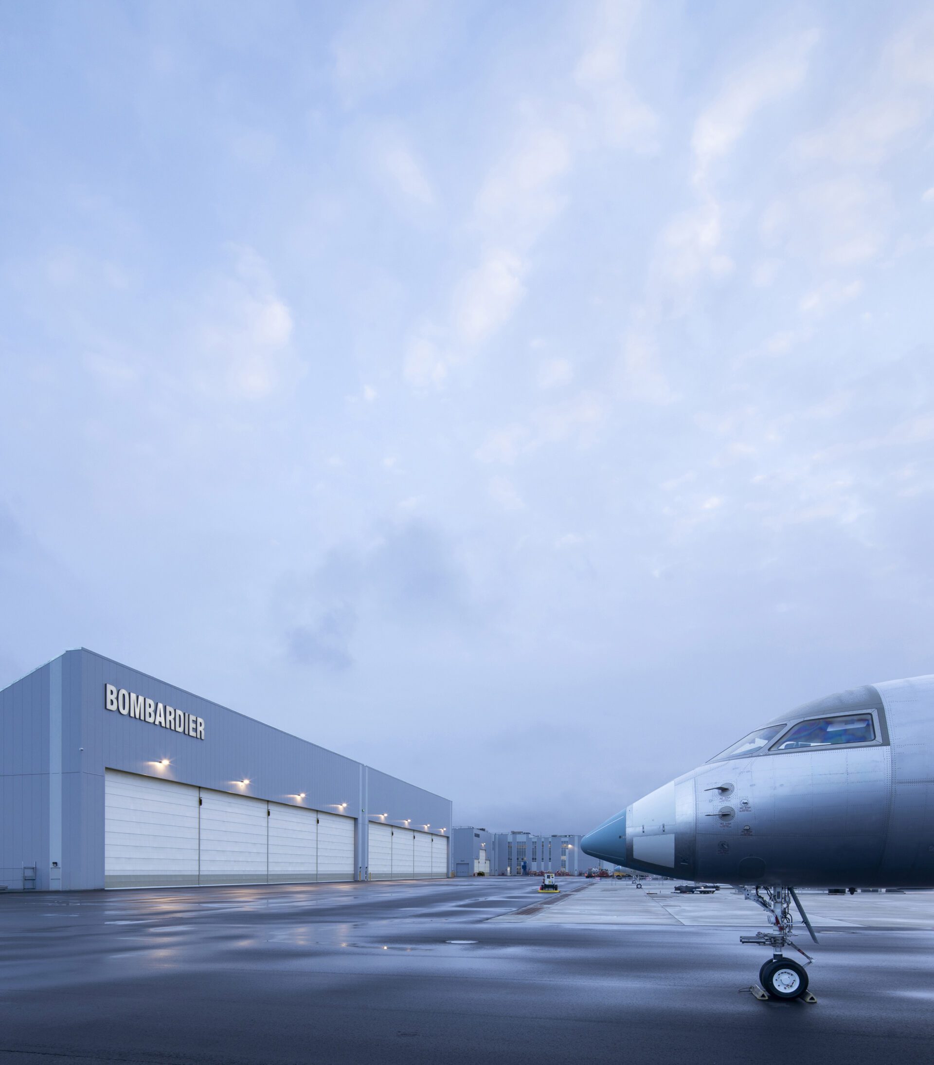 The project relocates Bombardier’s historic 366-acre Downsview facility to a compact, irregular 41-acre site adjacent to Canada’s busiest runway, demanding a complete rethinking of the site strategy. Two principal buildings—a manufacturing facility and a flight test hangar—support Bombardier’s Global line of business jets, serving both government and private clients.