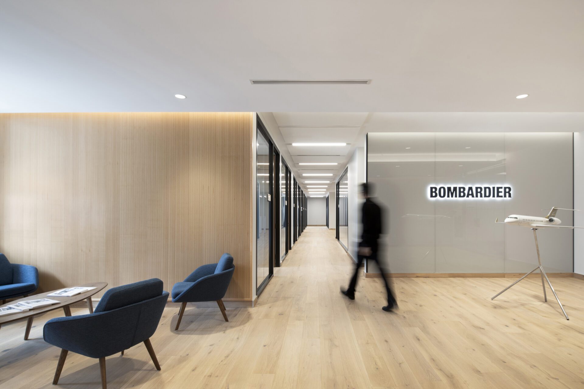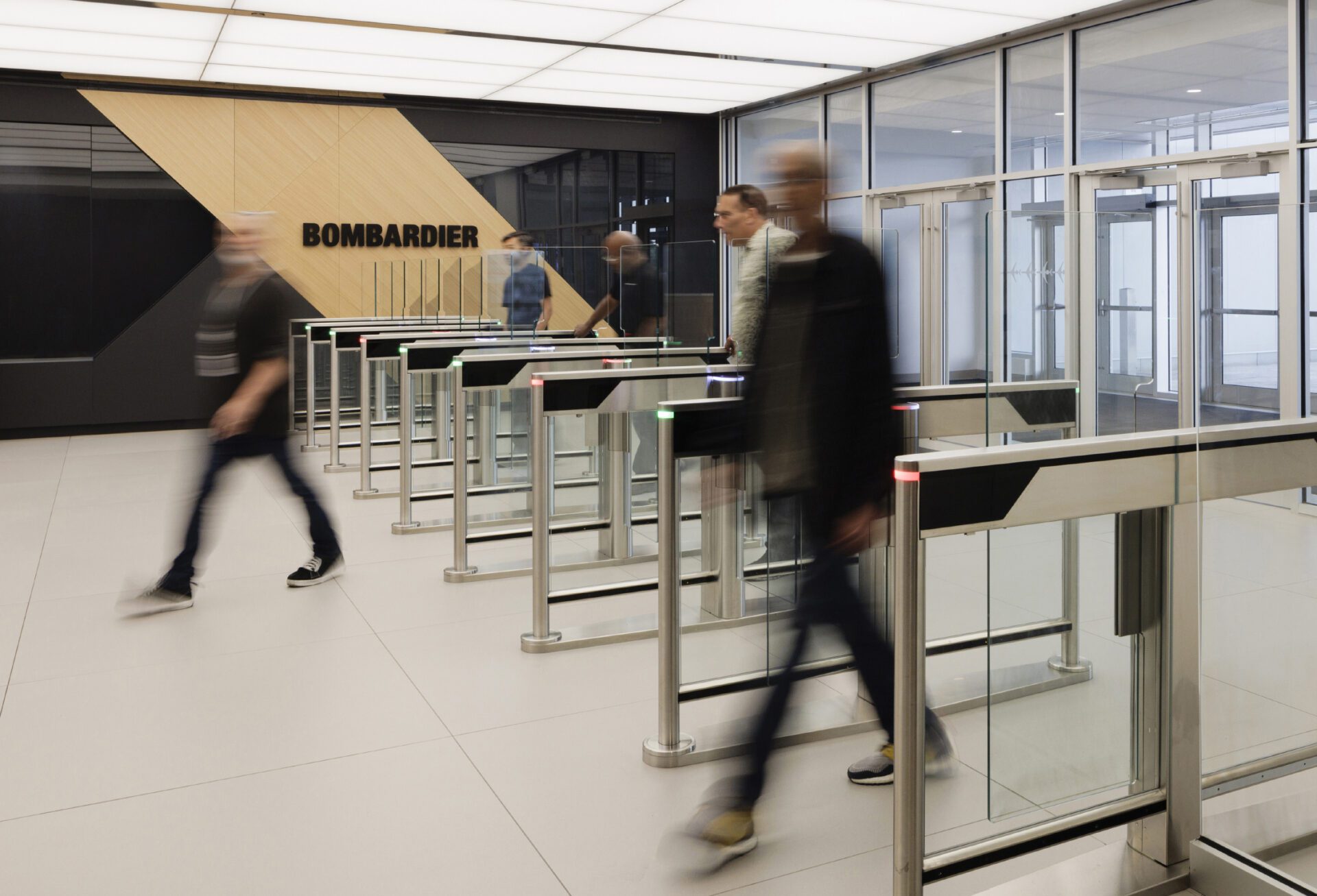 The building’s façades feature a rhythmic composition of barcode-like strips in translucent polycarbonate, optimizing daylight penetration while mitigating solar gain. As a result, 88% of workstations benefit from natural light—significantly enhancing occupant well-being and reducing reliance on artificial lighting. Beyond daylighting, more than 50% of the campus’s energy requirements are met through renewable sources, reinforcing Bombardier’s commitment to environmental innovation.