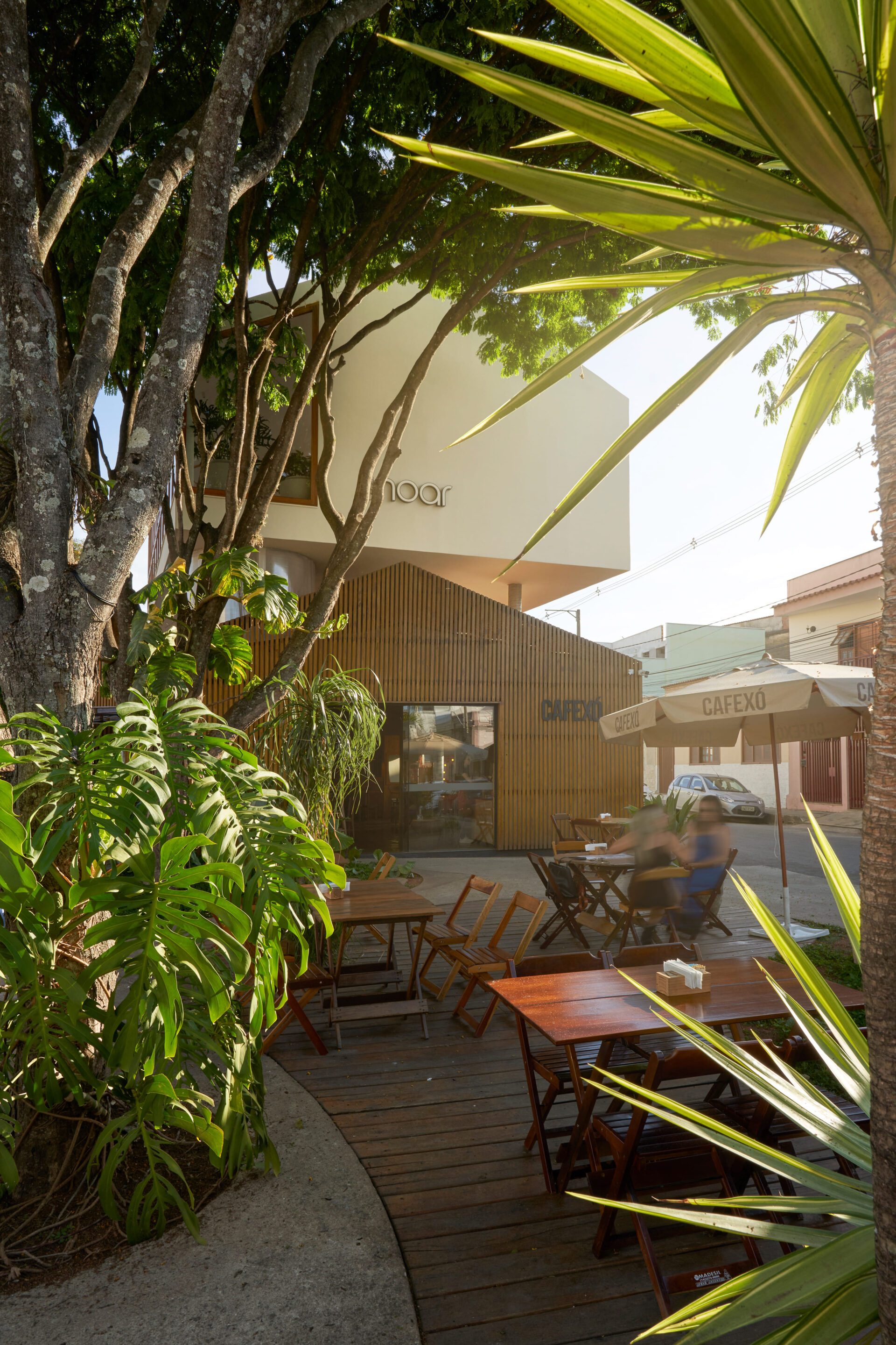 Fourteen years before the inauguration of the Casa Noar, the thrift store on which it was built began the process of revitalizing Rua Cristóvão Colombo, which had a history of abandonment and marginalization, presenting it for the first time as a destination. In 2016, the renovation of the thrift store added café activities, and this combination, which became Cafexó, created a diverse movement for the street. The addition of the office in 2023 elevated this process, attracting different audiences through the exuberance of the construction, the landscaping work, and the cultural movement it provides.