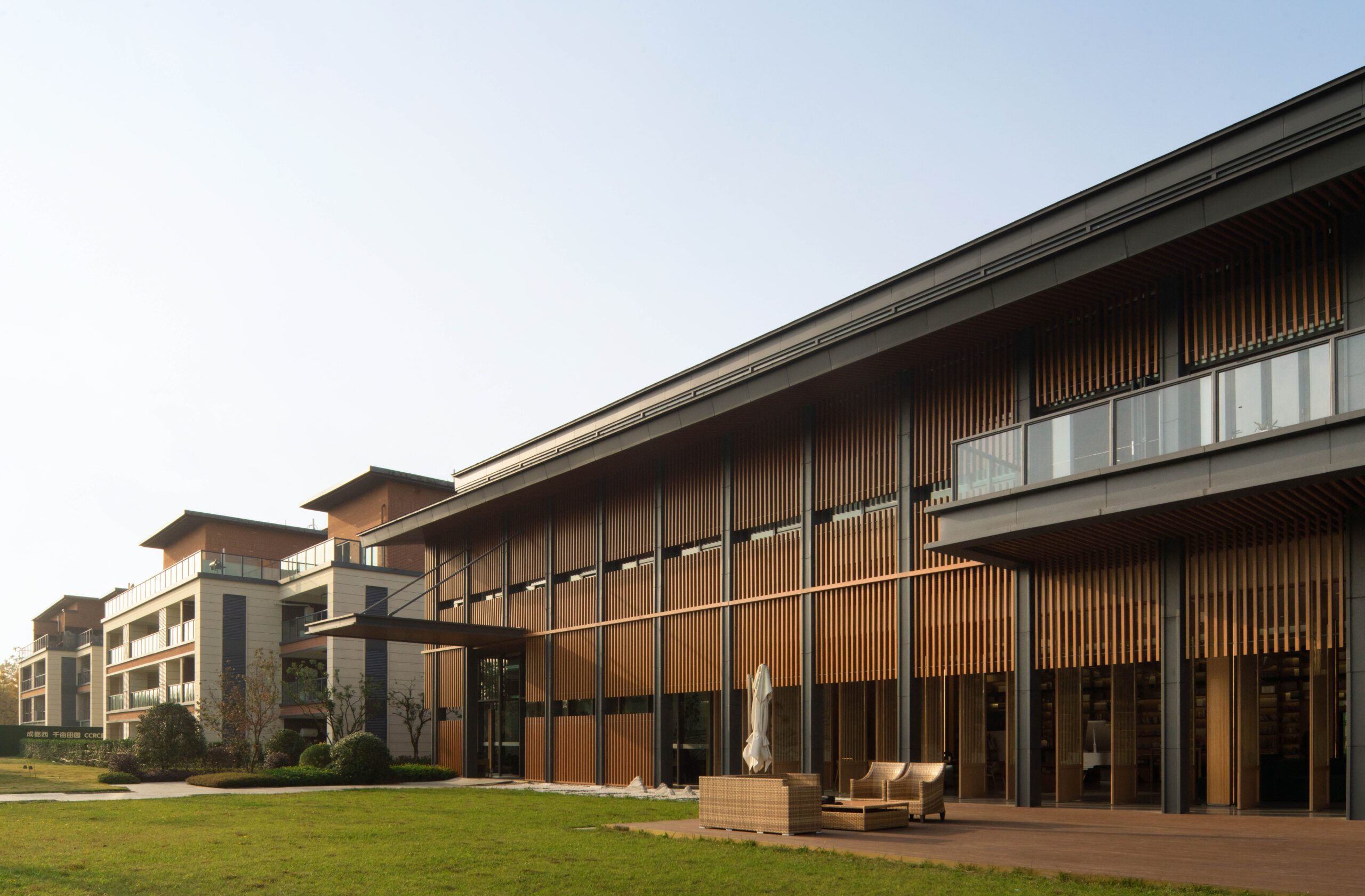 The traditional farmer houses in LINPAN of Chuntai Village have been built with wood. Therefore, the facade of the Experience Center aims to create a rural wooden house. The architects use the architectural language of sloping roofs, wooden grilles and the double skin. The double-layer exterior design presents the image of a rural wooden house during the day, and at night, indoor lights scatter through the grille, showcasing a warm and moving indoor space amidst the chirping of frogs. The double layer skin has not only the effect of shading, but also maintains the integrity of the exterior facade while achieving natural ventilation.