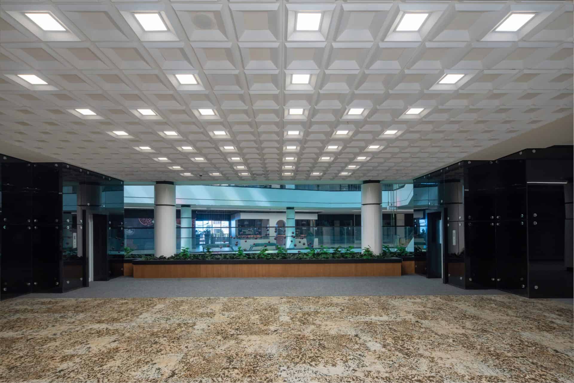 The interior space of the complex is full of dynamism and movement. The central void creates a dynamic lighting quality inside the project. At different times of the day, the movement of the sun has varying effects on the visual quality of the interior spaces. In addition to natural light, this central void also enhances the sense of an open and inviting spatial quality.