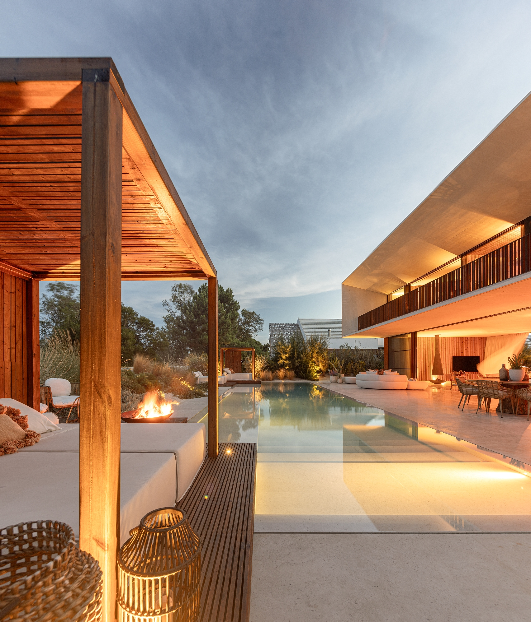 The exterior spaces of terraces, balconies and gardens were designed to emphasize the natural beauty, for permanence and as a complement to the interior, with continuity between materials and design from the interior to the exterior, which gives a sensation of depth to the pine forest that extends along the dune vegetation that was carefully designed to embrace the pool.