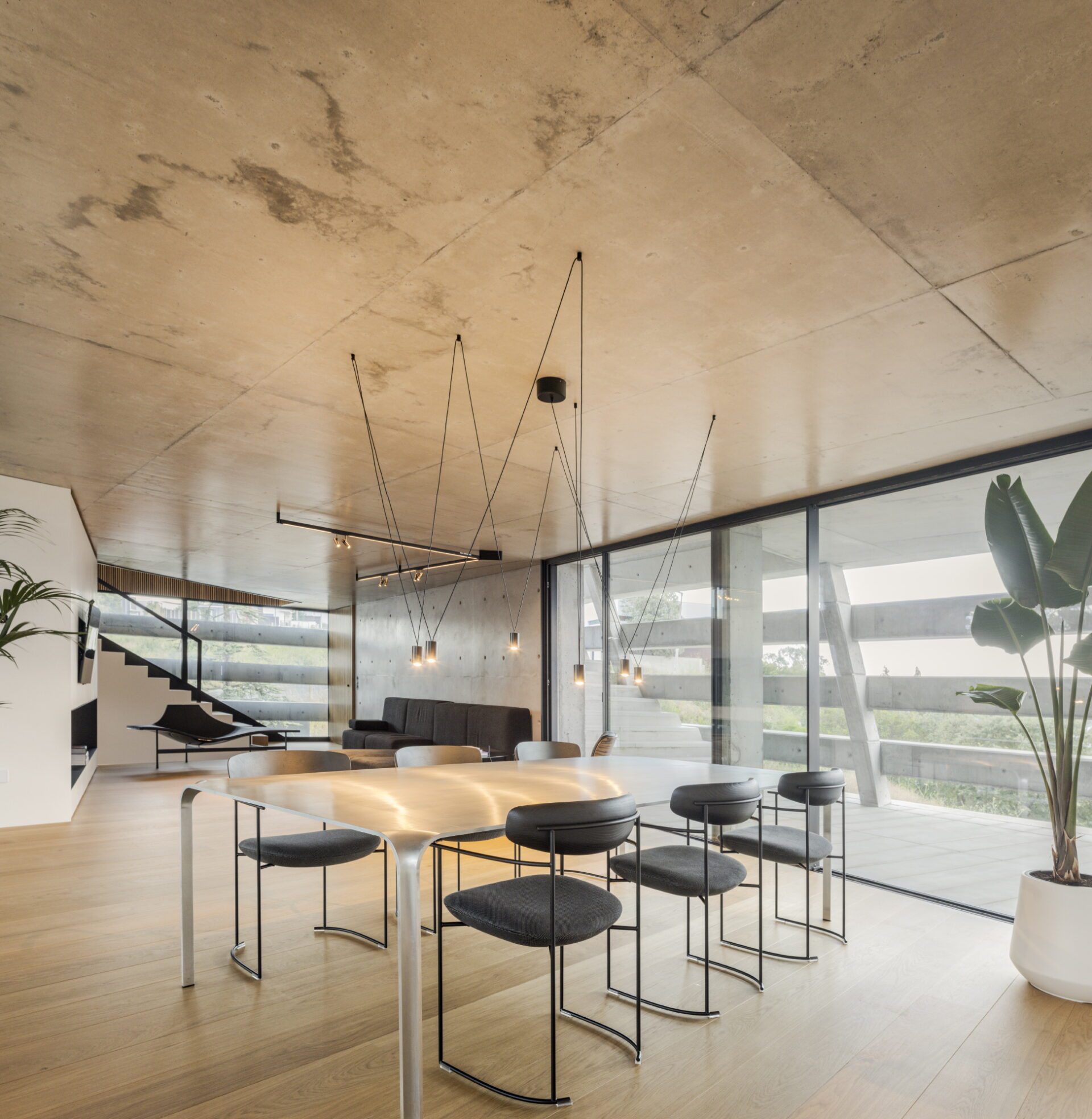 Inside, the house consists of half floors that connect some of the spaces with each other, while making others separate and autonomous.