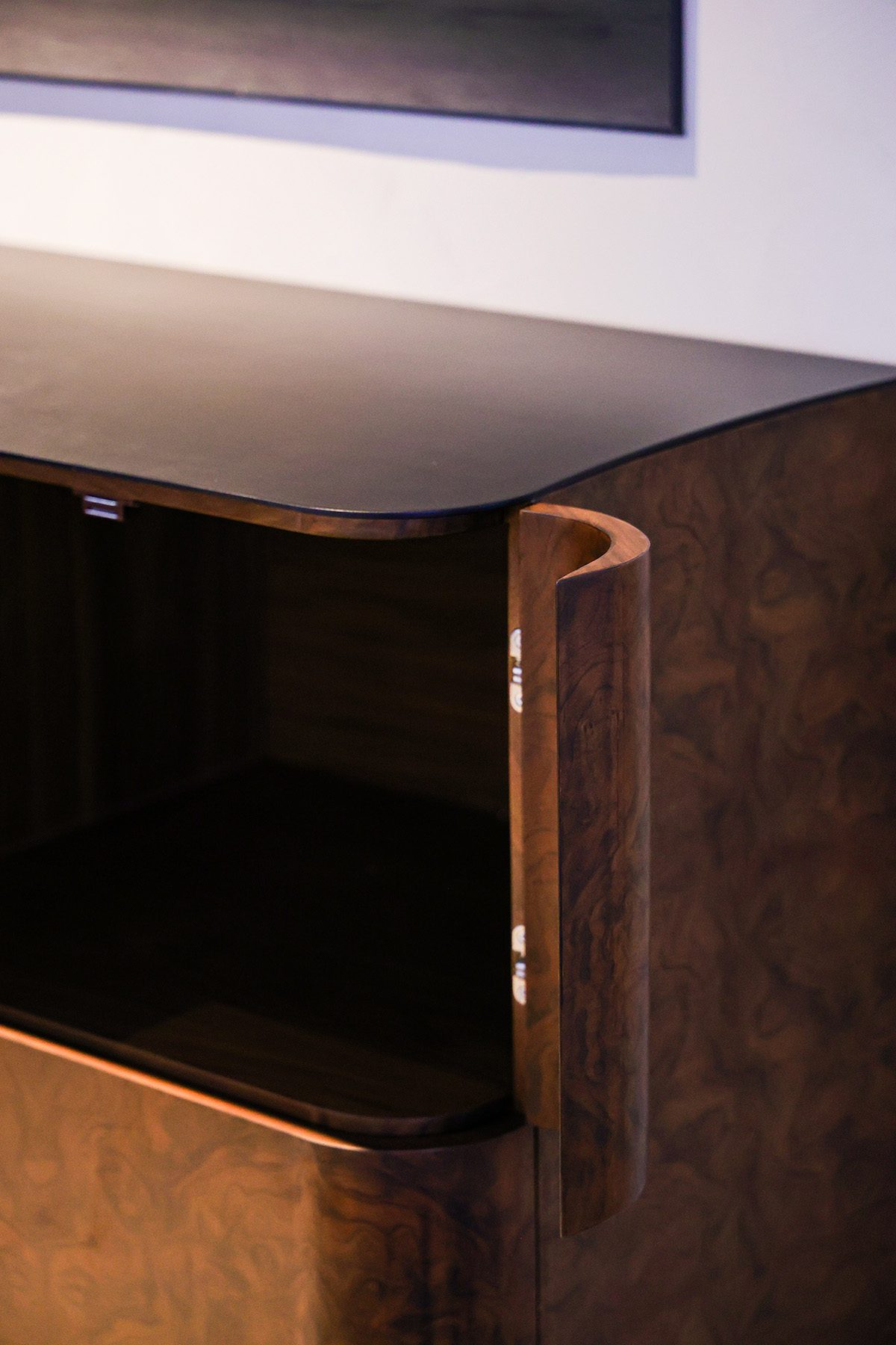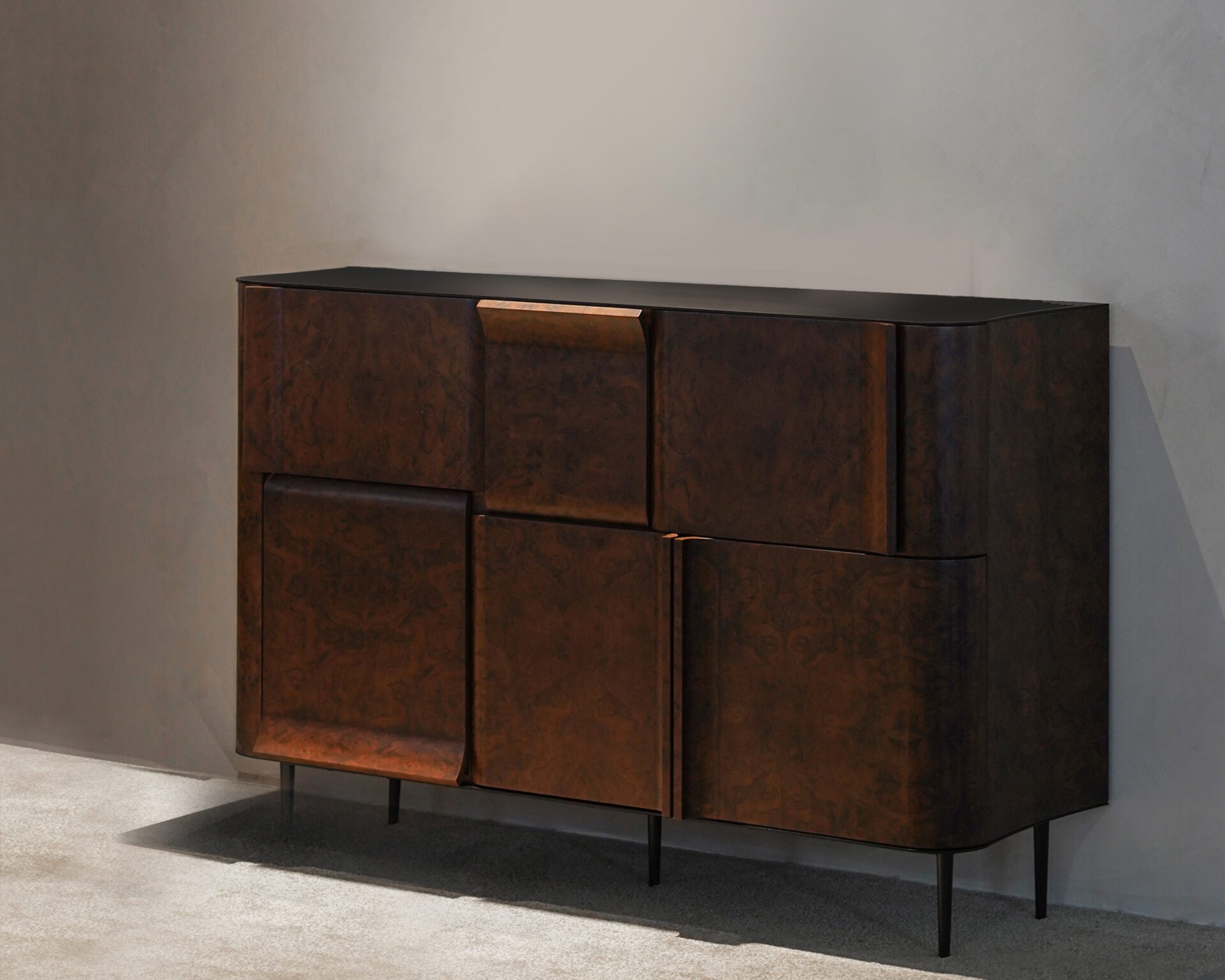 The CURL SERIES caters to diverse tastes, offering a range of personalized finish options such as wood veneers and traditional Chinese lacquer, alongside countertop materials like glass, marble, and metal. Whether one prefers a natural feel or traditional craftsmanship, the series offers finishes that suit a variety of styles, from modern minimalism to vintage charm. This choice in finishes allows the CURL SERIES to integrate seamlessly into various interior design aesthetics, meeting the needs of individual preferences and enhancing the ambiance of any space.
