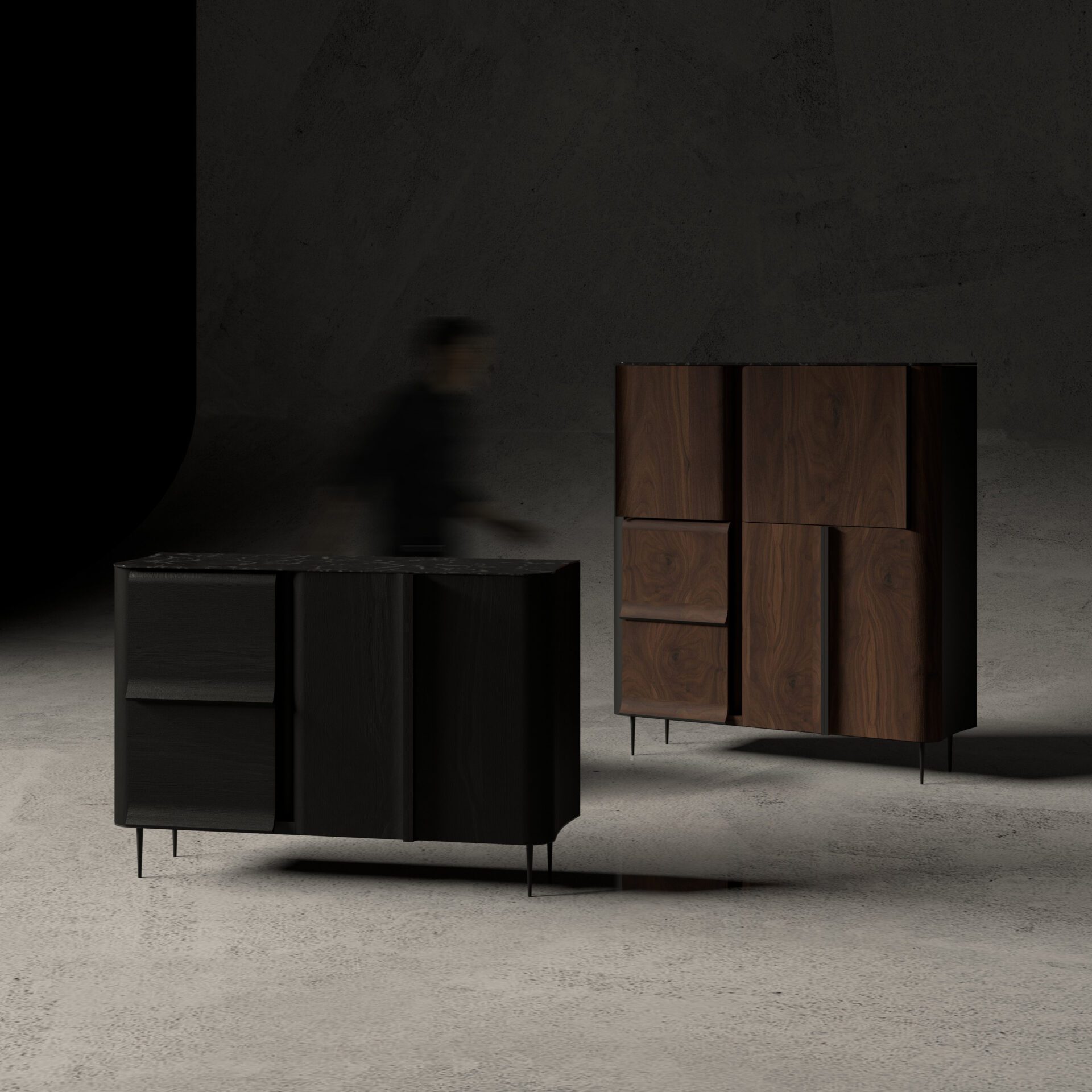 Functionally, the CURL SERIES is highly versatile, with modular door panels that allow users to customize configurations to suit their specific needs. The system’s flexibility supports a range of applications, from compact 1x1 designs to more expansive setups suitable for consoles, nightstands, freestanding wardrobes, and upright cabinets with integrated shelving. Its modular nature and array of colors provide both visual appeal and practical flexibility, making it a sophisticated addition to any space. Multi-directional panel openings enhance ease of use, further elevating the series’ functionality.