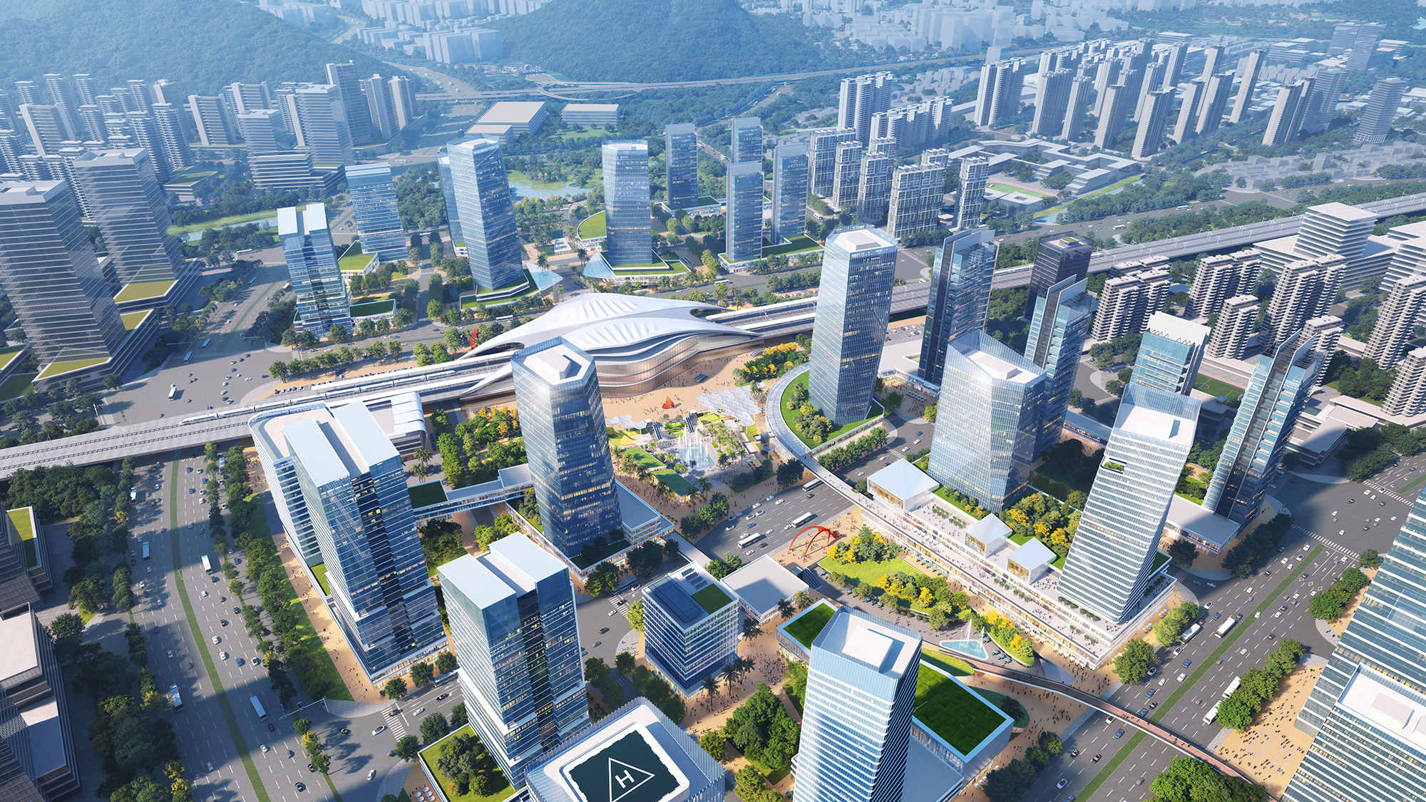 The urban design takes "one axis and one belt" as the core, connects four characteristic groups, namely Binhai Bay Station, Midtown, South Bay, and The Coast, and draws a scene of a better life for all people through the connection of parks and coasts.