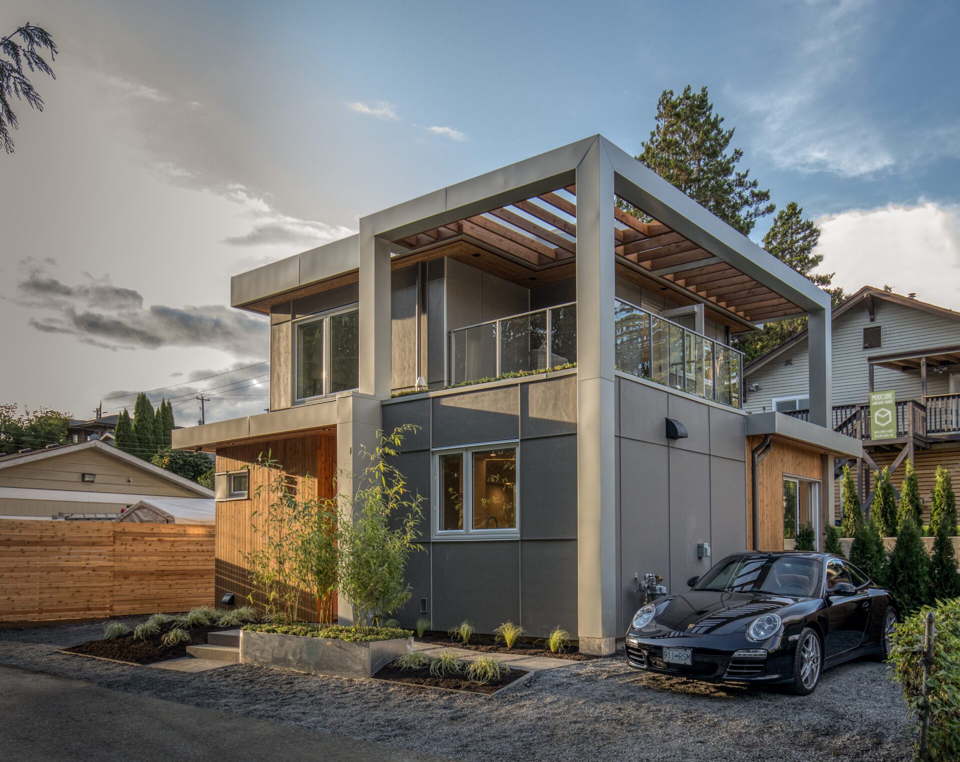 Canada is experiencing a housing crisis that requires innovative soft density solutions that speed up construction and simplify the building process. Most North American cities consist of suburban sprawl with vast amounts of land devoted to single family housing. The East 4th MODCUBE is a prototype for prefabricated, sustainable, small footprint living that doesn’t compromise on design, comfort, or functionality. These can be constructed on existing single family lots providing much needed housing for the missing middle. Built in North Vancouver, this prefabricated laneway home delivers 990 square feet of efficient living space across two floors, with an additional crawl space below for ample storage.