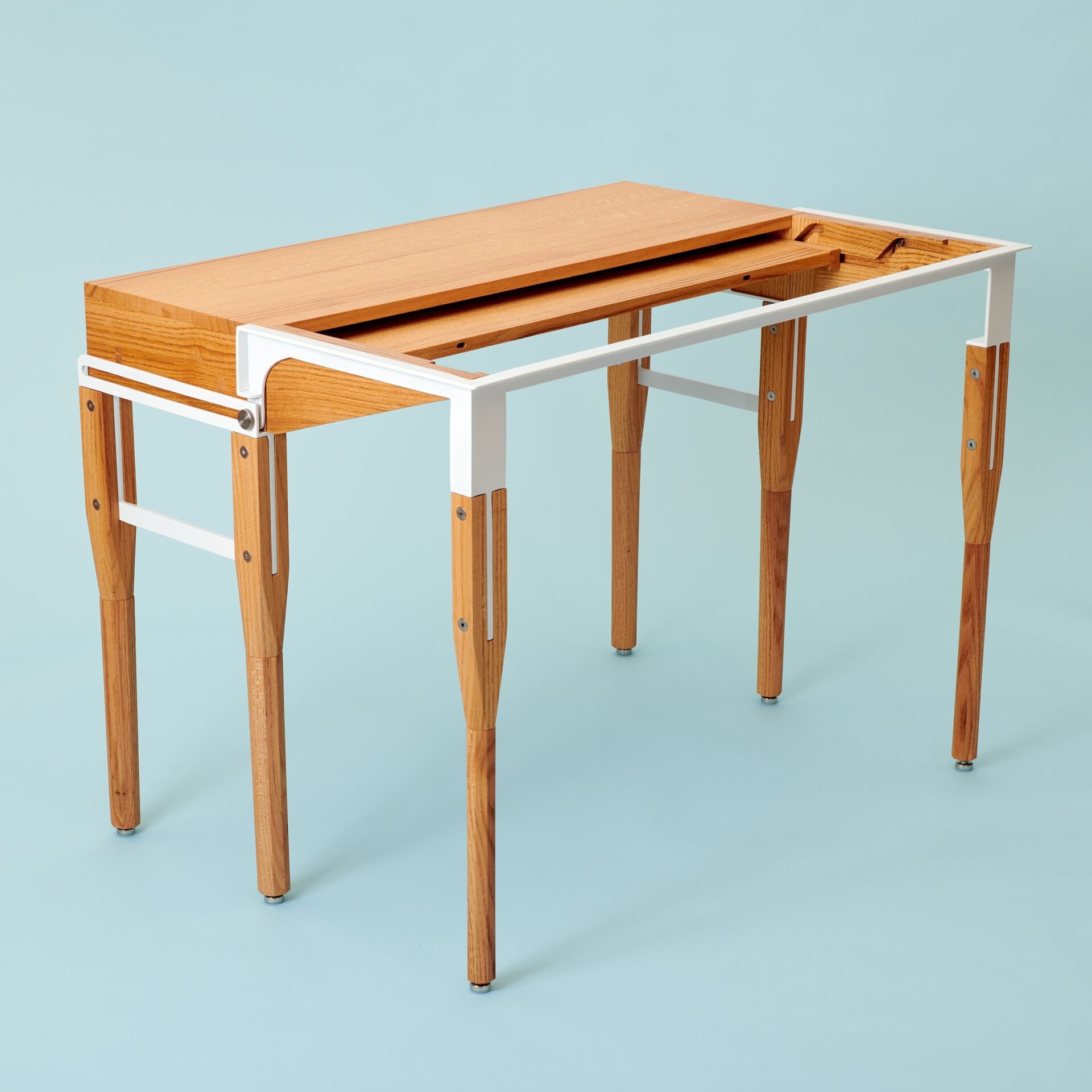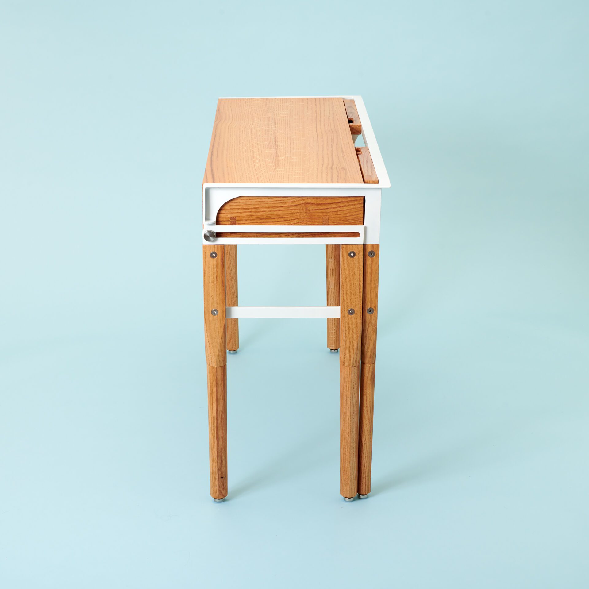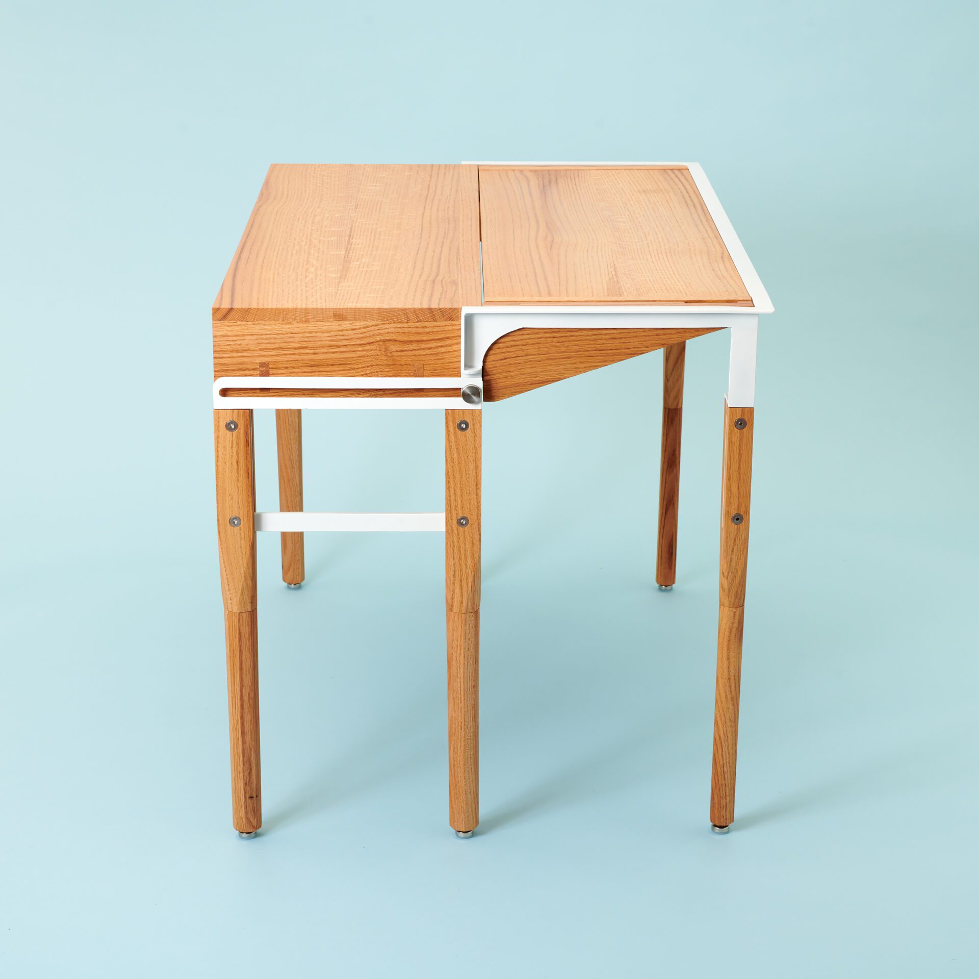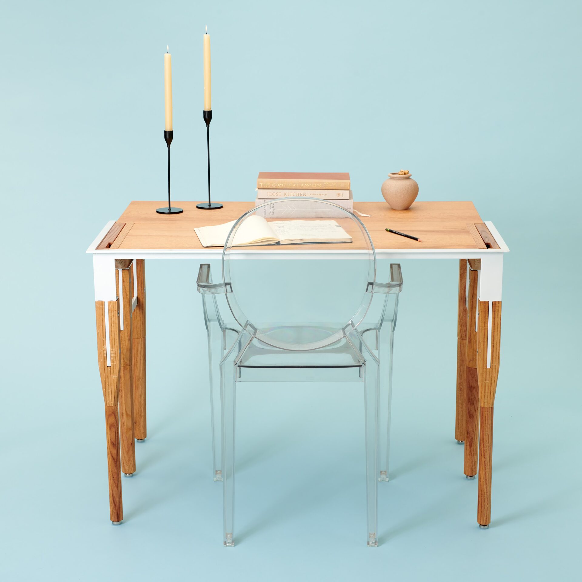 The sun sinking, you set a pot for tea and slice a baguette, add to it a bit of butter and ham, and twist out the cork of yesterday’s wine for a relaxing evening. Settling on the couch you savor each bite and sip as your body rests and your mind begins to wander, inviting creativity after a long day of focused labor. The daylight, ever fading, counters the rise of inspiration within you and as the kettle begins its delicate call, you find the entry table to draw its legs forward, revealing its hidden feature – a table top that glides into position, expanding the working surface, like a plant sending out a new leaf. Onto its new form, you set a pen and notebook and go to quell the faint whistle of your kettle, returning to your sanctuary through steaming clouds of lavender and lemon.