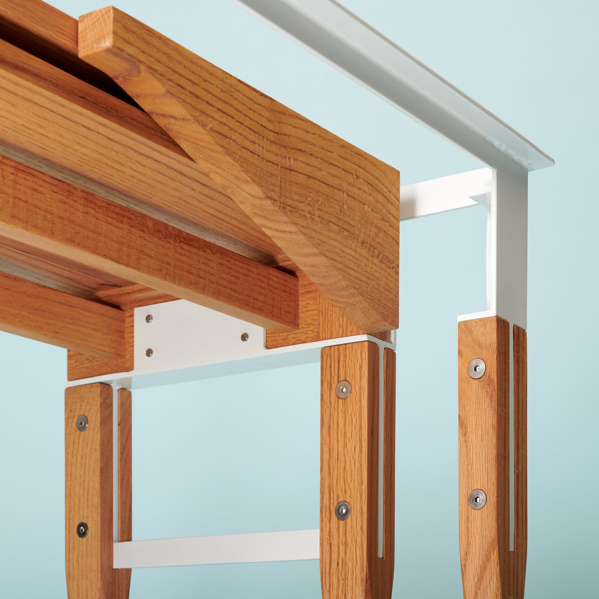Placing the hall chair at the helm, you sit and pen your first marks, anticipating discovery as you endeavor to capture the fleeting inspirations of your evolving thoughts. As the night grows deeper and your notebook fills, your body sends pleas for rest, and with a final sip of tea, your toiling mind resolves to close today. The pen finds its cap, the notebook its pocket, and you gently tuck the desk away. An entry table that became a desk, sleeps in its hidden form, awaiting your return another day.
