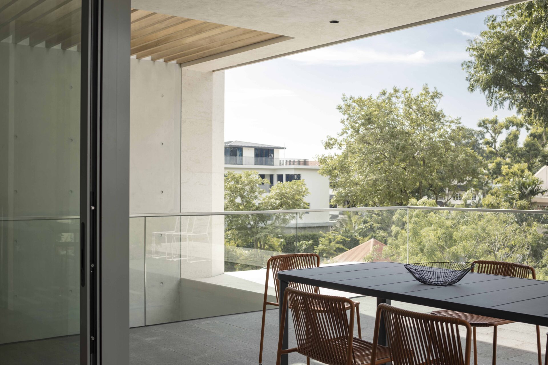 Sustainability wise - the house is designed to rely fully on natural lighting in the day. The courtyard draws in daylight, wind and breeze into the house from the large openings at the third storey level. It also allows for cross-ventilation at the dining/dry kitchen and improves the whole livability of the house by incorporating nature into their living environment. The house employs architectural elements common in the tropics such as sun canopies and screens, which are important for living in Singapore's tropical climate.