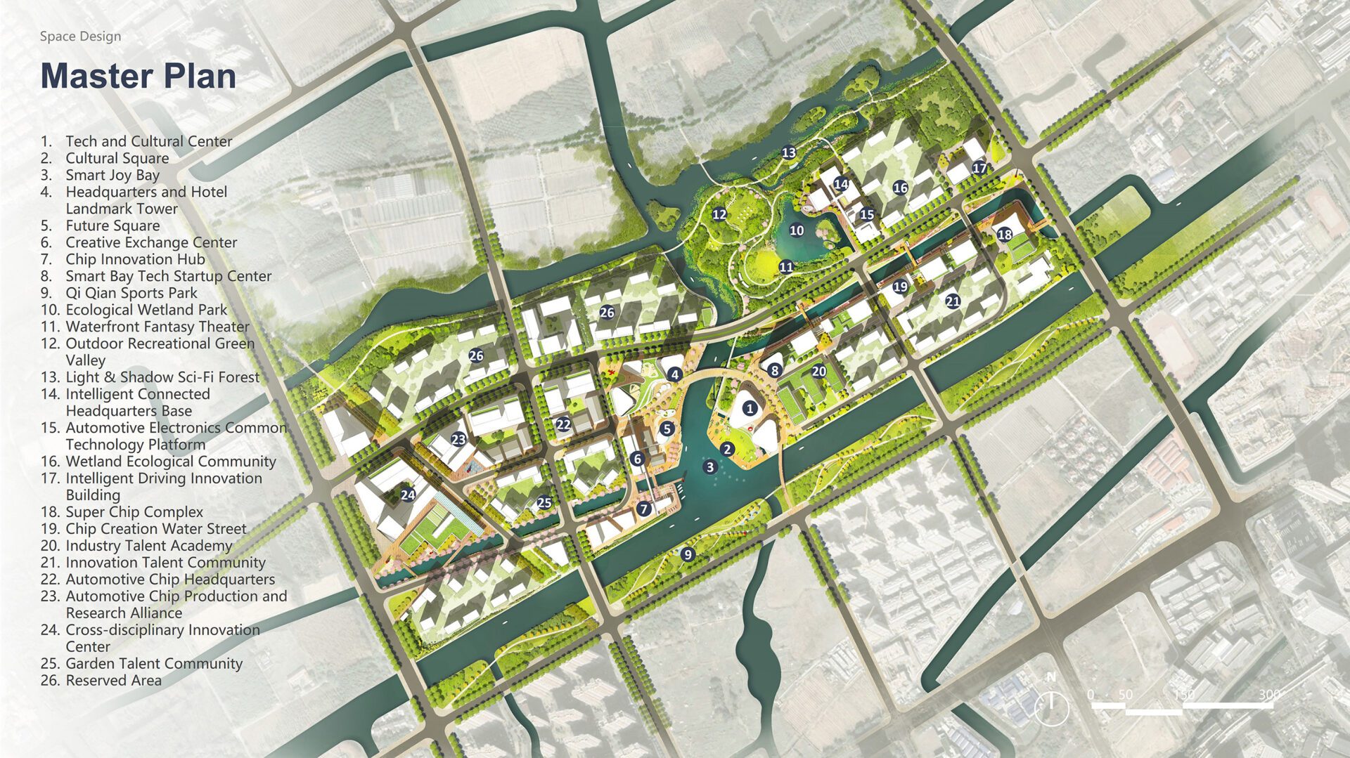 The project centers around the designed Future Blue Bay and Ecological Green Bay, fostering a harmonious blend of ecosystem, industrial growth, and urban living. The urban design leverages the site's water network resources to create a distinctive waterfront public realm, shaping urban areas with local characteristics and rich cultural experiences.
