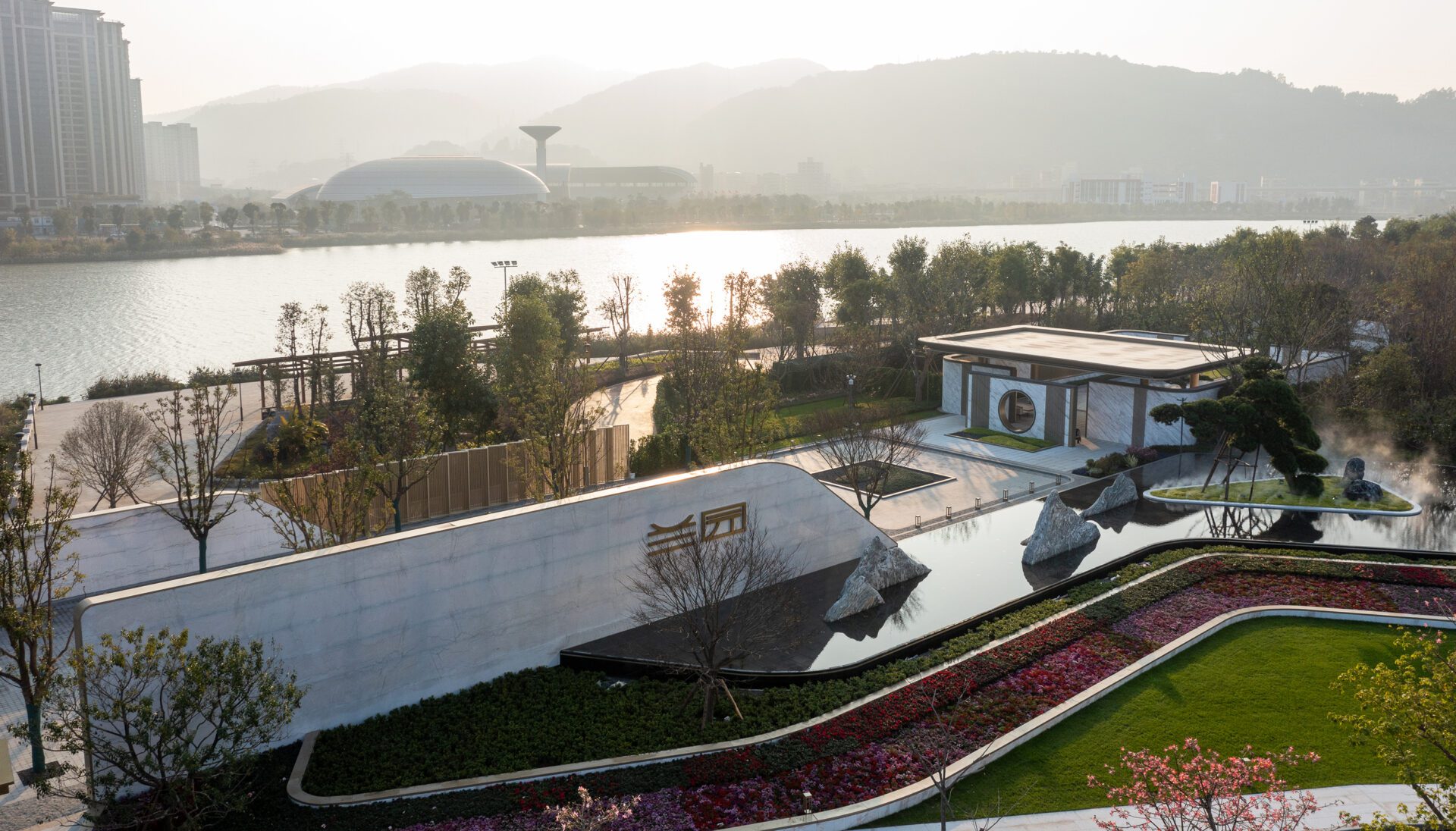 Fuzhou Lanyuan Luxury Residences Sales Area is a 5,000 square meter portion of a landmark residential development situated in the heart of Fuzhou. The development fuses contemporary sophistication and cultural sensitivity. This entry area welcomes guests and sets the tone for a garden journey to the sales units. The design process was driven by three strategies: to create a unique identity inspired by the local context; to activate different scales of open spaces; and to connect the site through a flow of experiences.