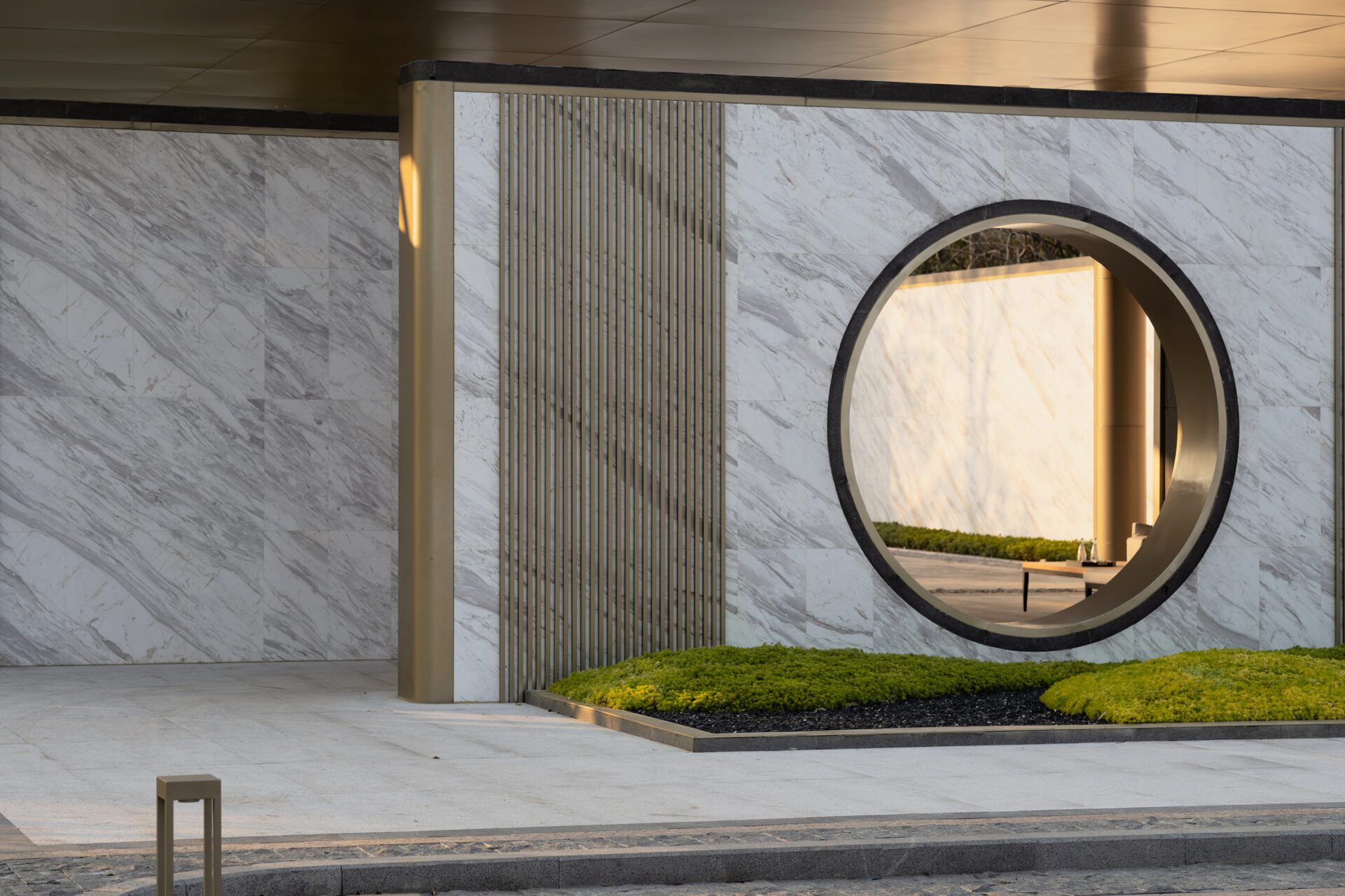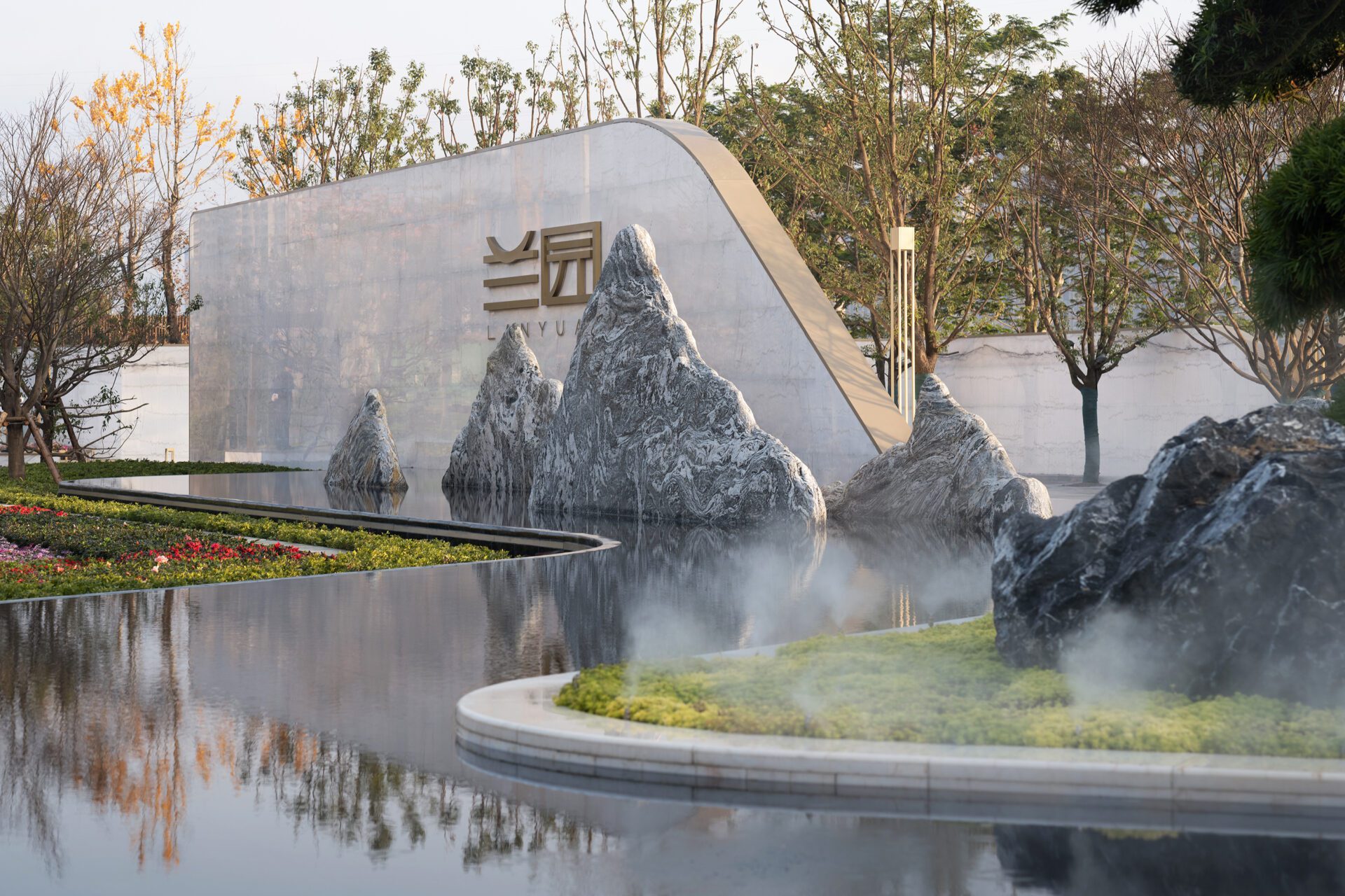The landscape of the Sales Area Entry Courtyard layers carefully studied experiences that transport visitors to intimate yet impressive environments. A sense of comfort comes from an approach to space rooted in traditional Chinese Gardens. The spaces were carefully curated to provide a series of landscape discoveries through three unique scenes.