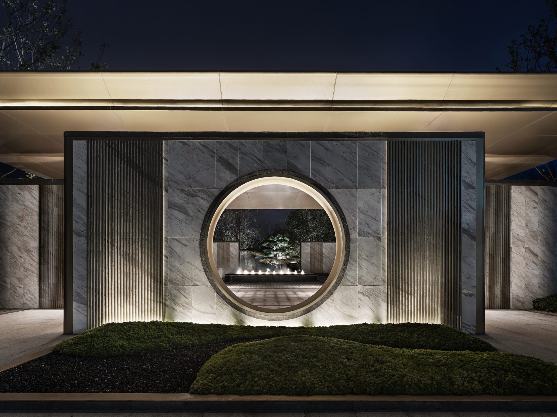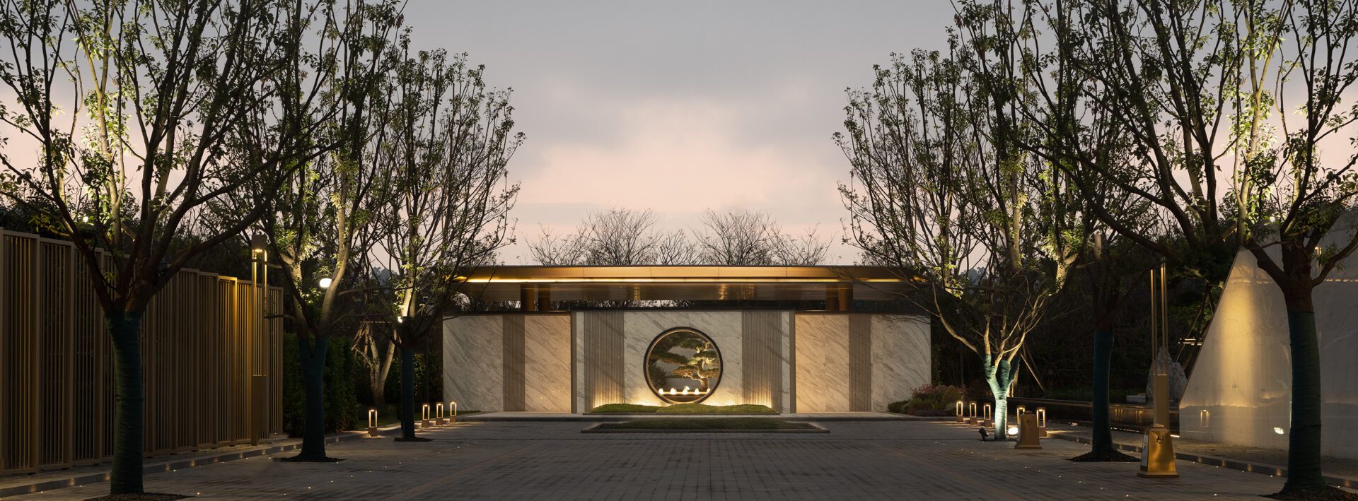 The grand yet delicate Arrival Garden with clean lines, water elements, art, and a visual corridor elevates the connection to nature by allowing river and mountain views into the site. The Arrival Tree Bosque framed by a series of walls and vegetation signals visitors to slow down and focus on the moon gate giving a glimpse of the next phase in the journey. The Iconic Pavilion house is a metaphor for spring and is meant to embody a feeling of abundance. The contemporary lines of the pavilion walls carefully capture the harmony of nature from the surrounding landscapes.