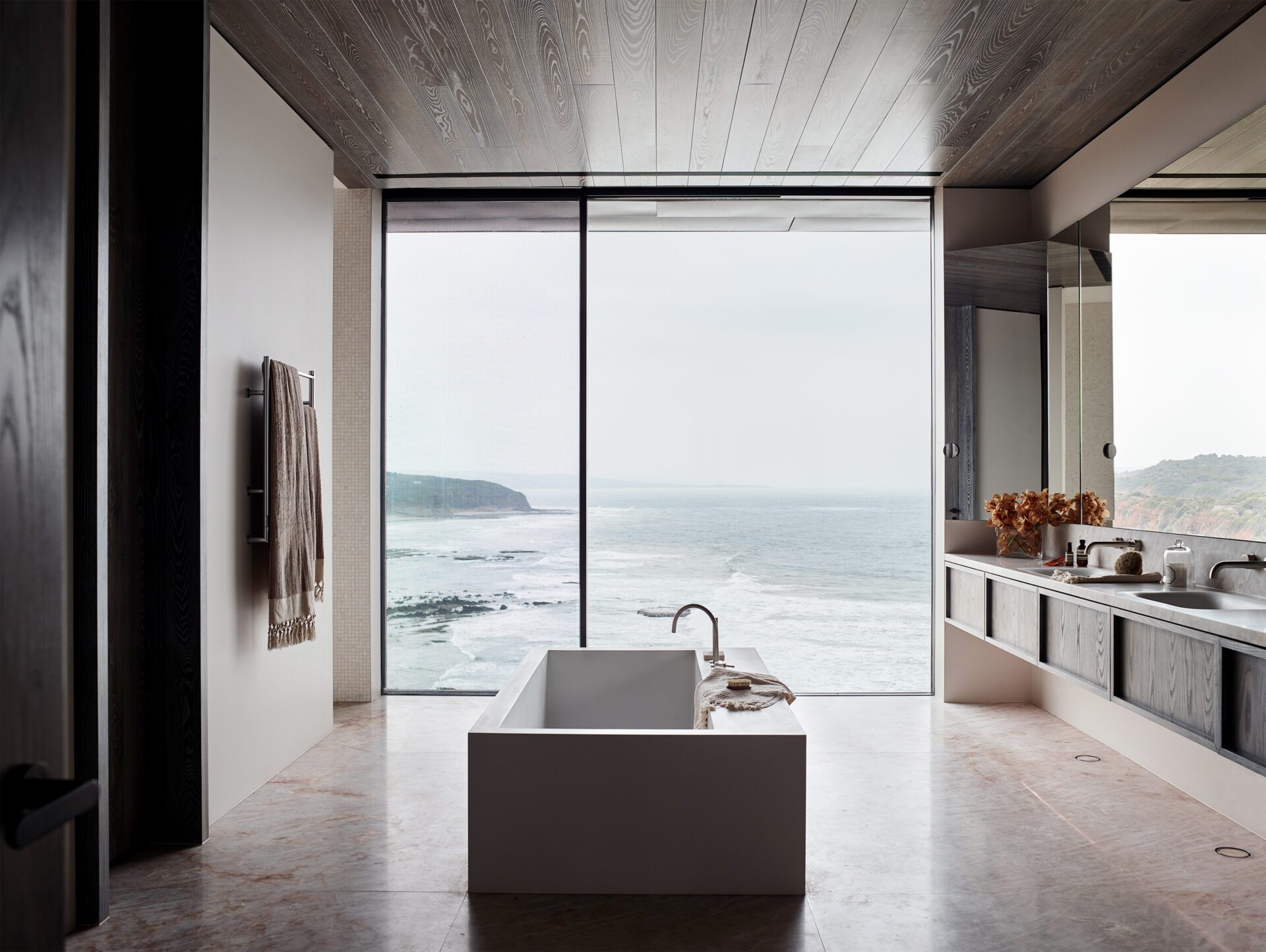 Crucial to the success of the architecture is a complete embrace of this extraordinary land. The residence is strategically positioned to afford the best possible views in three directions: towards the majestic Eagle Rock, along the cliff faces above one of Australia’s most iconic surf breaks, and back to the iconic Split Point Lighthouse.