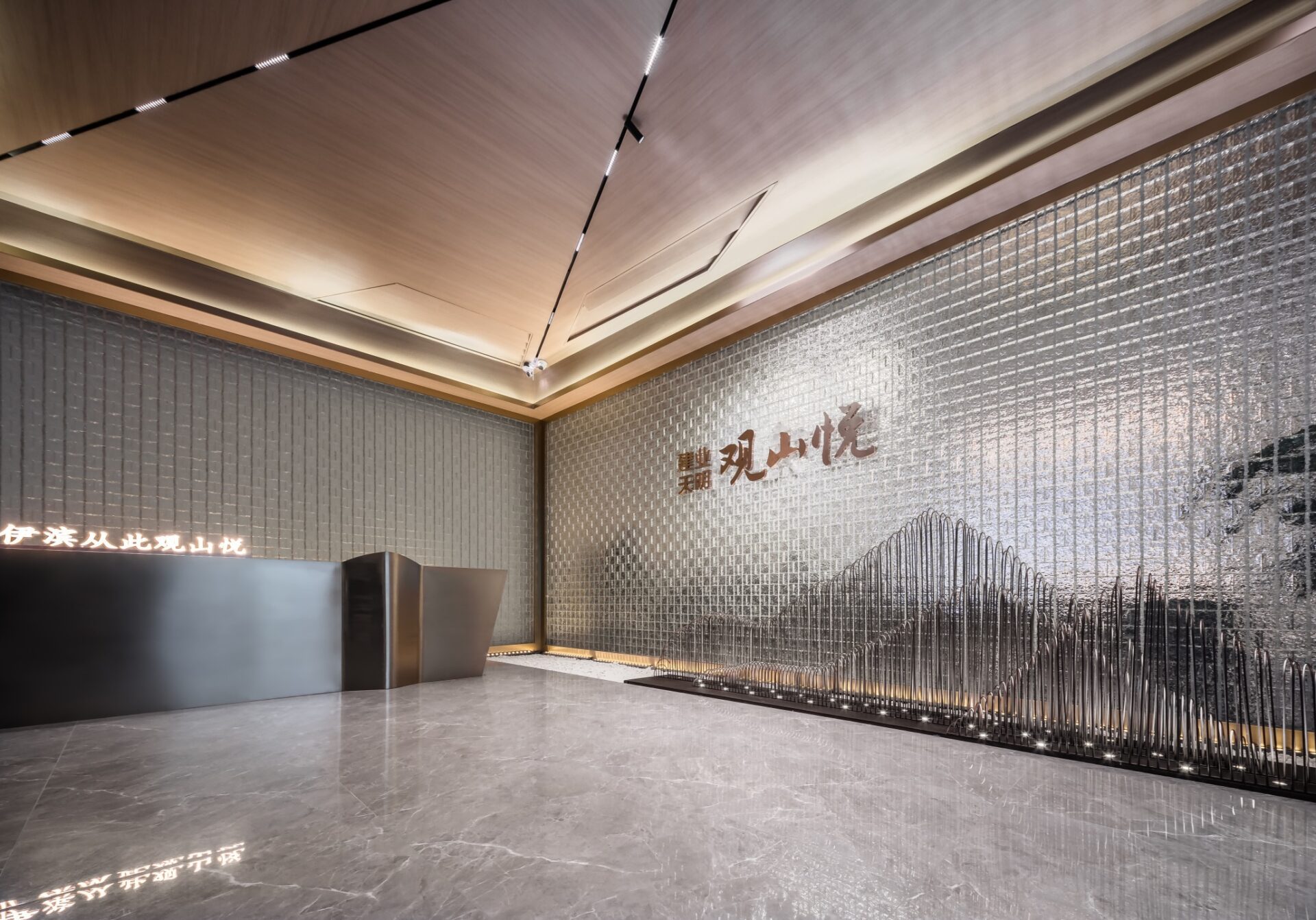 The "Guan Shan Yue" real estate development is located in Luoyang, the ancient capital within the Heluo region. The sales center's layout and spatial design are inspired by the principle of "Mountains in View, Waters in Delight | Oriental Aesthetics in Harmony." By employing dynamic linear elements, the design captures the essence of the "arched" natural terrain and the magnificent eastward flow of the Luo River between two mountains—a scene historically celebrated as the most sublime landscape under heaven. This design approach, which conveys vast concepts through delicate details, epitomizes the depth of ancient Eastern aesthetics. Consequently, the project garnered widespread acclaim and achieved rapid sell-out success.