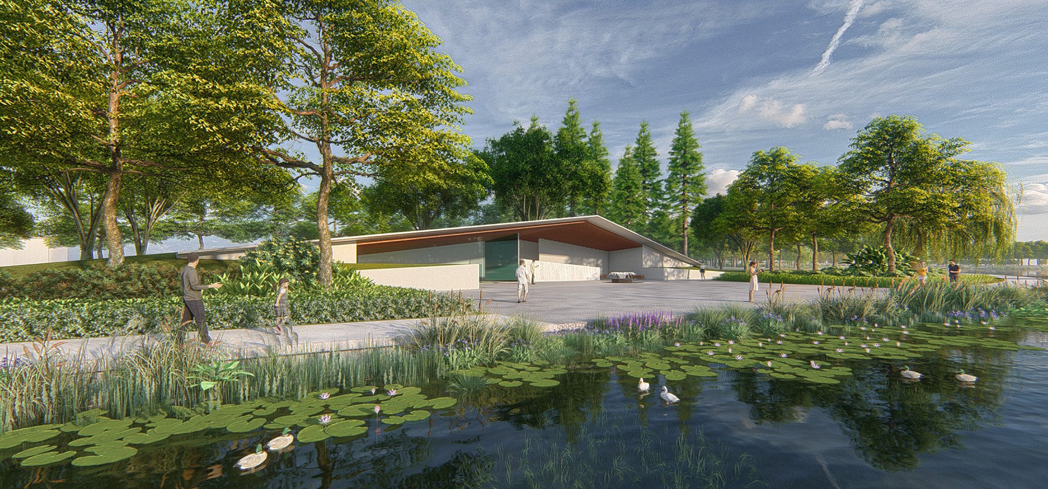It features various paths for cultural, meditative, and cycling activities. The Ecological Cultural Garden is a public space for leisure, culture, and learning.