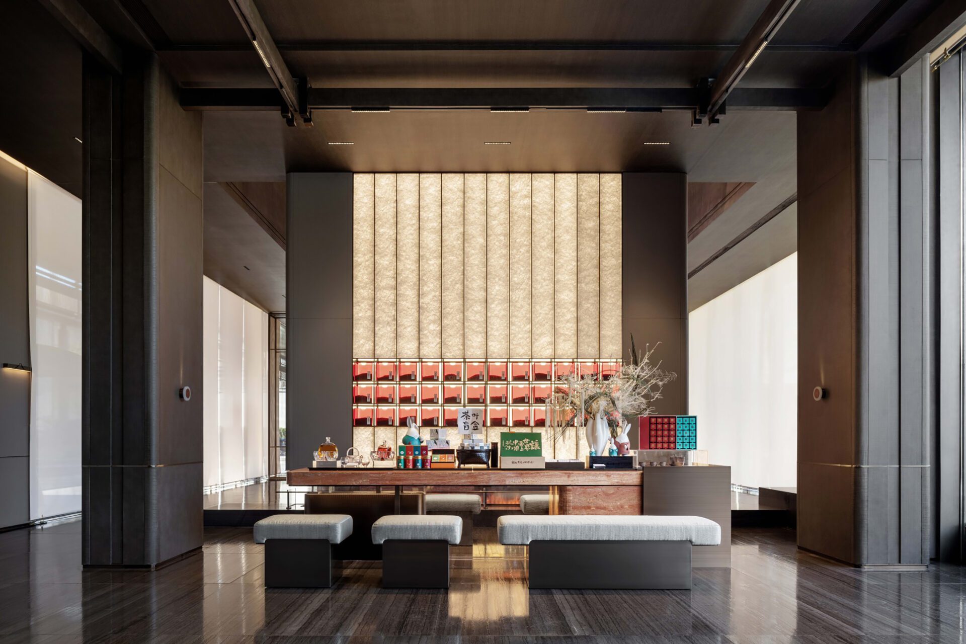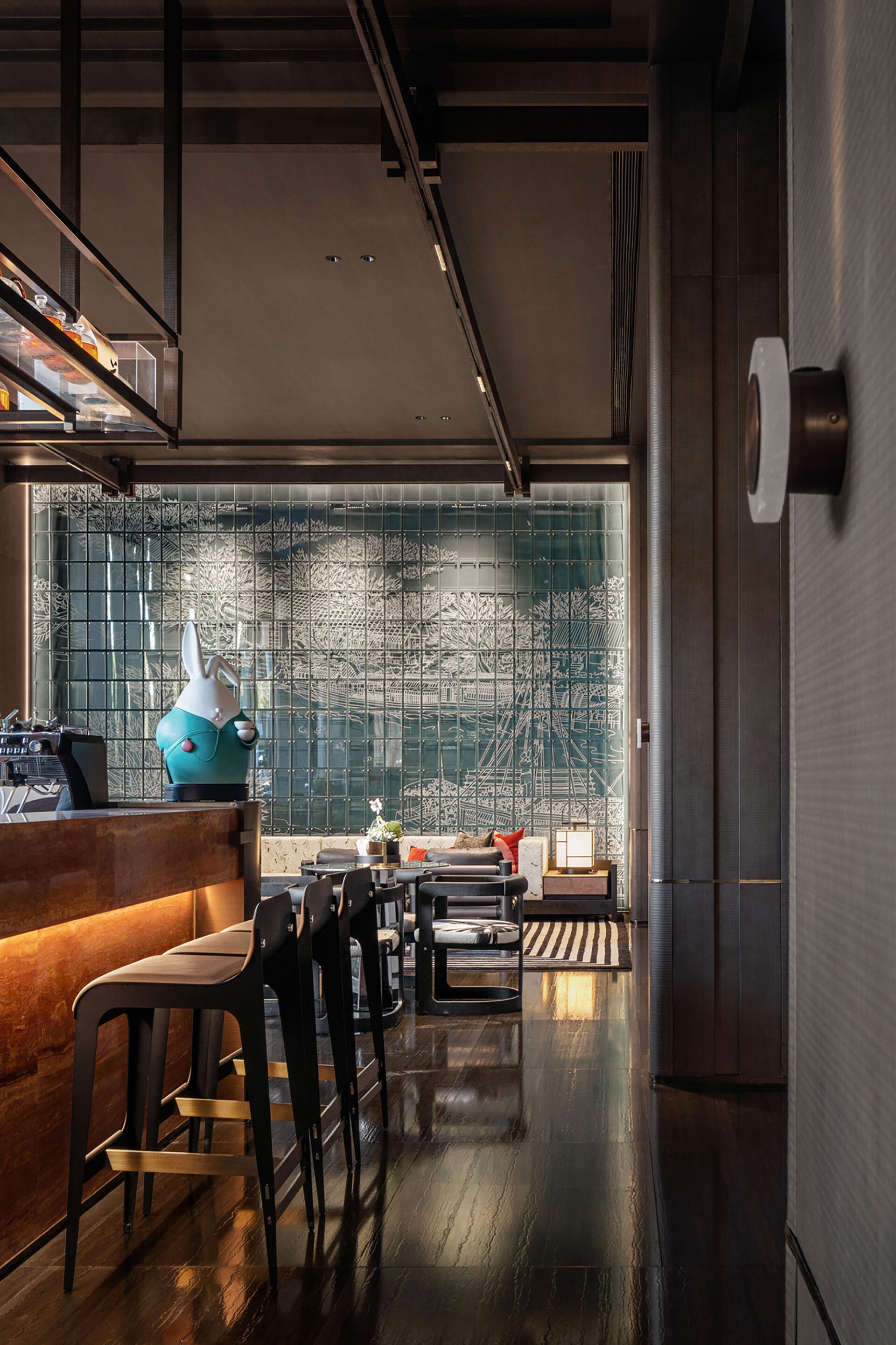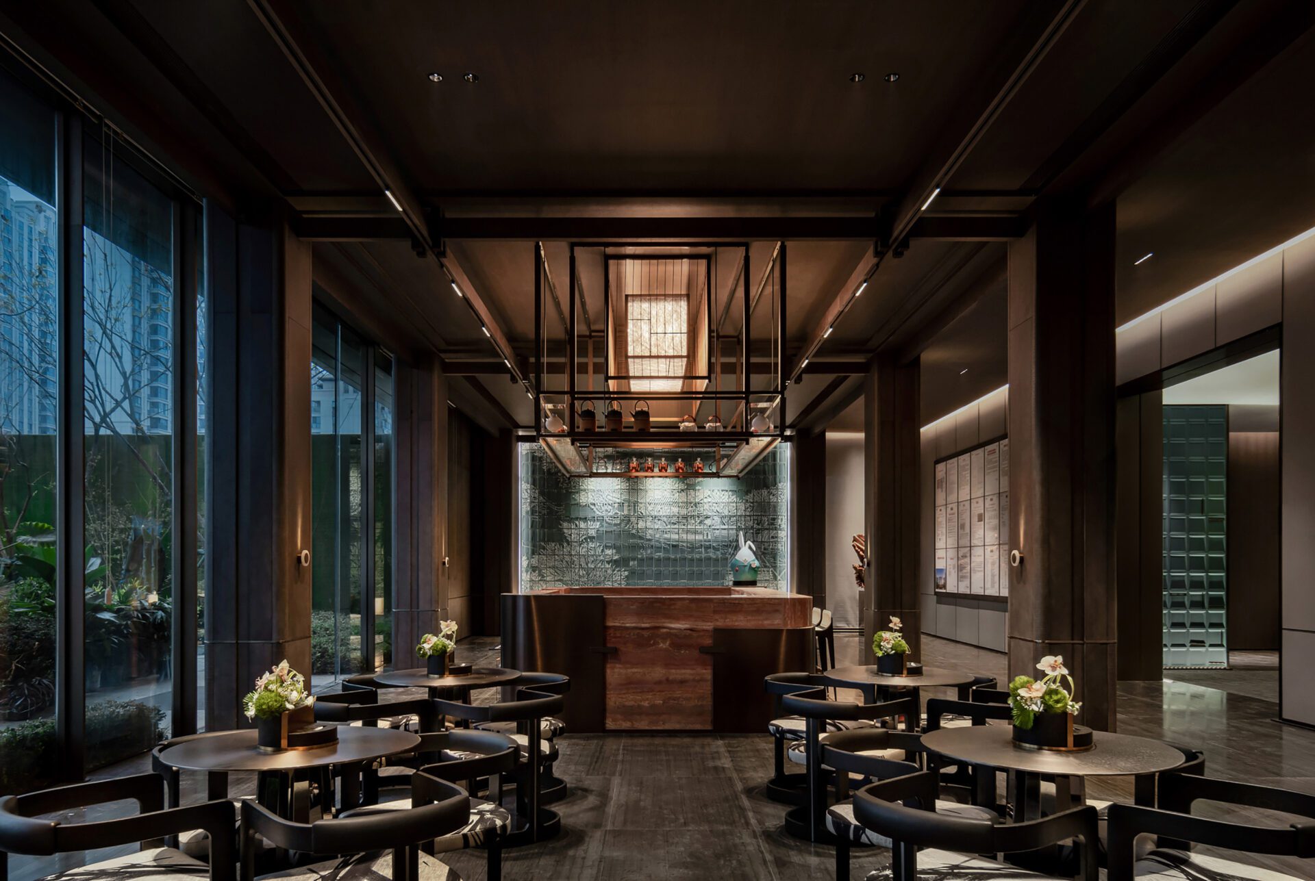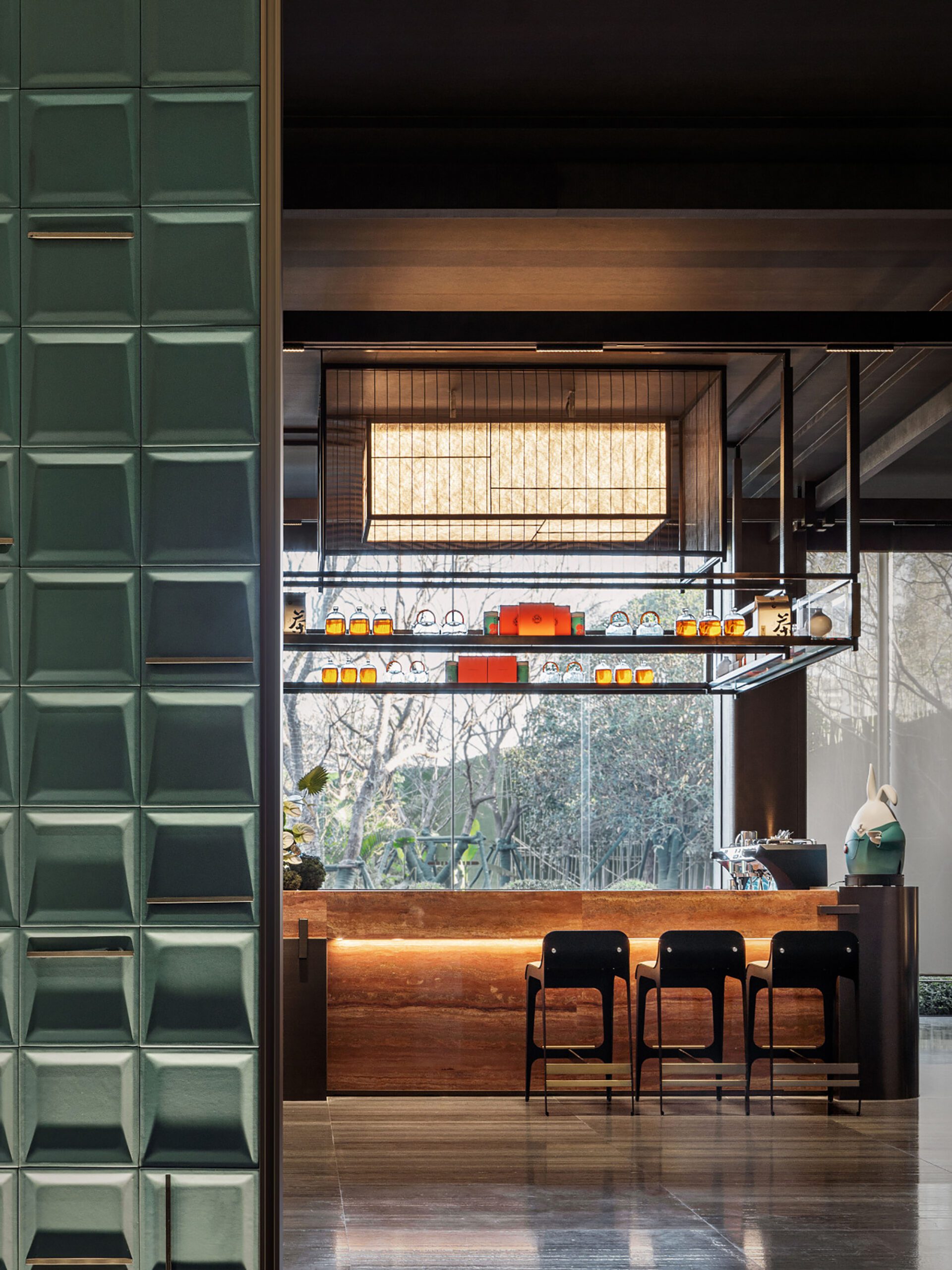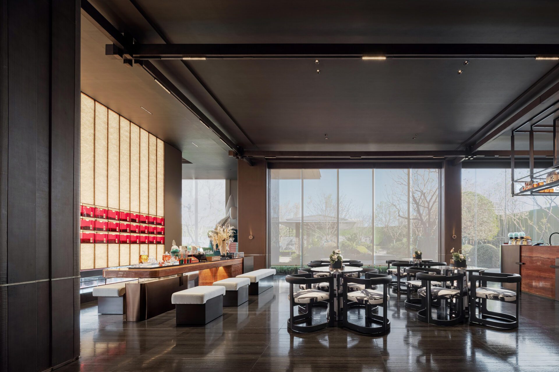 Inspired by a cultural journey through the canals on a tour of Yaohai, this project uses tea as a carrier to create a new modern cultural gathering place, creating a third community and a space to savour the culture of contemporary merchants and businessmen. The "walking into the yard four times" and the "roaming" landscape show the layout and mood of the space, combining classical and modern elements to achieve a fusion of ancient and simple charm and an expression of inheritance and innovation.