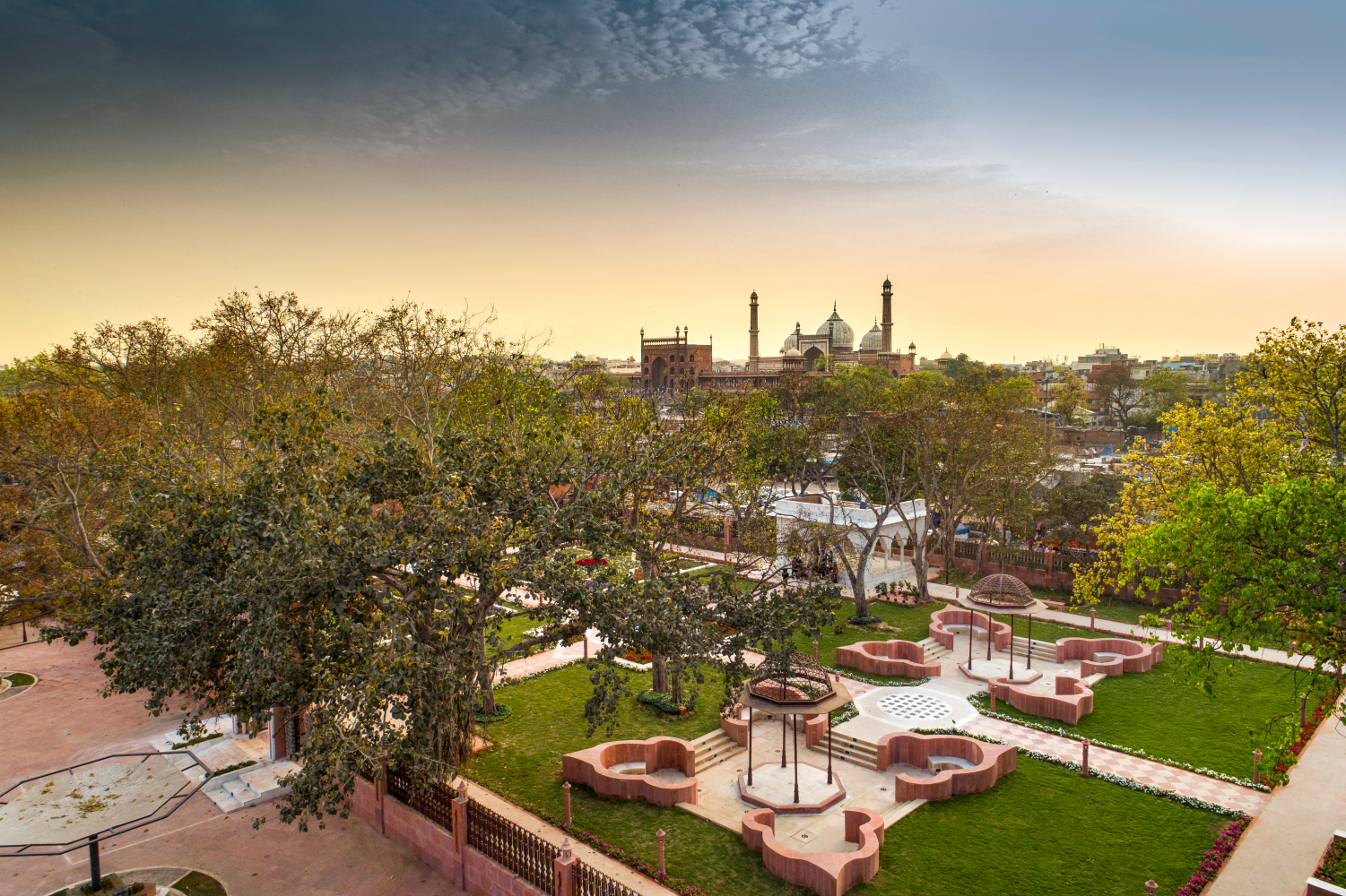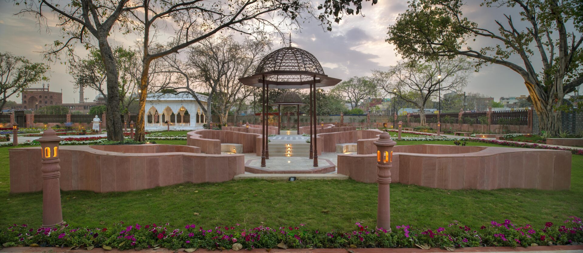 The heritage park is a redevelopment landscape project, envisioned in the heart of Old Delhi, opposite the Red Fort. The site is blessed with panoramic views of The Red fort with Jama Masjid right behind it. Envisioned as a heritage escape the park brings a harmonious unison between Mughal and Hindu architecture.