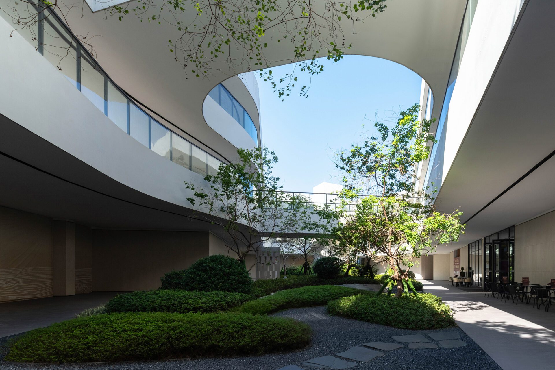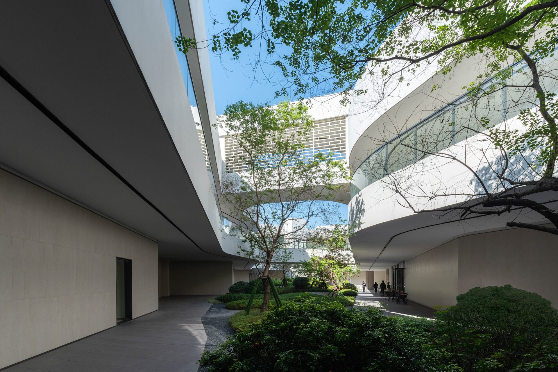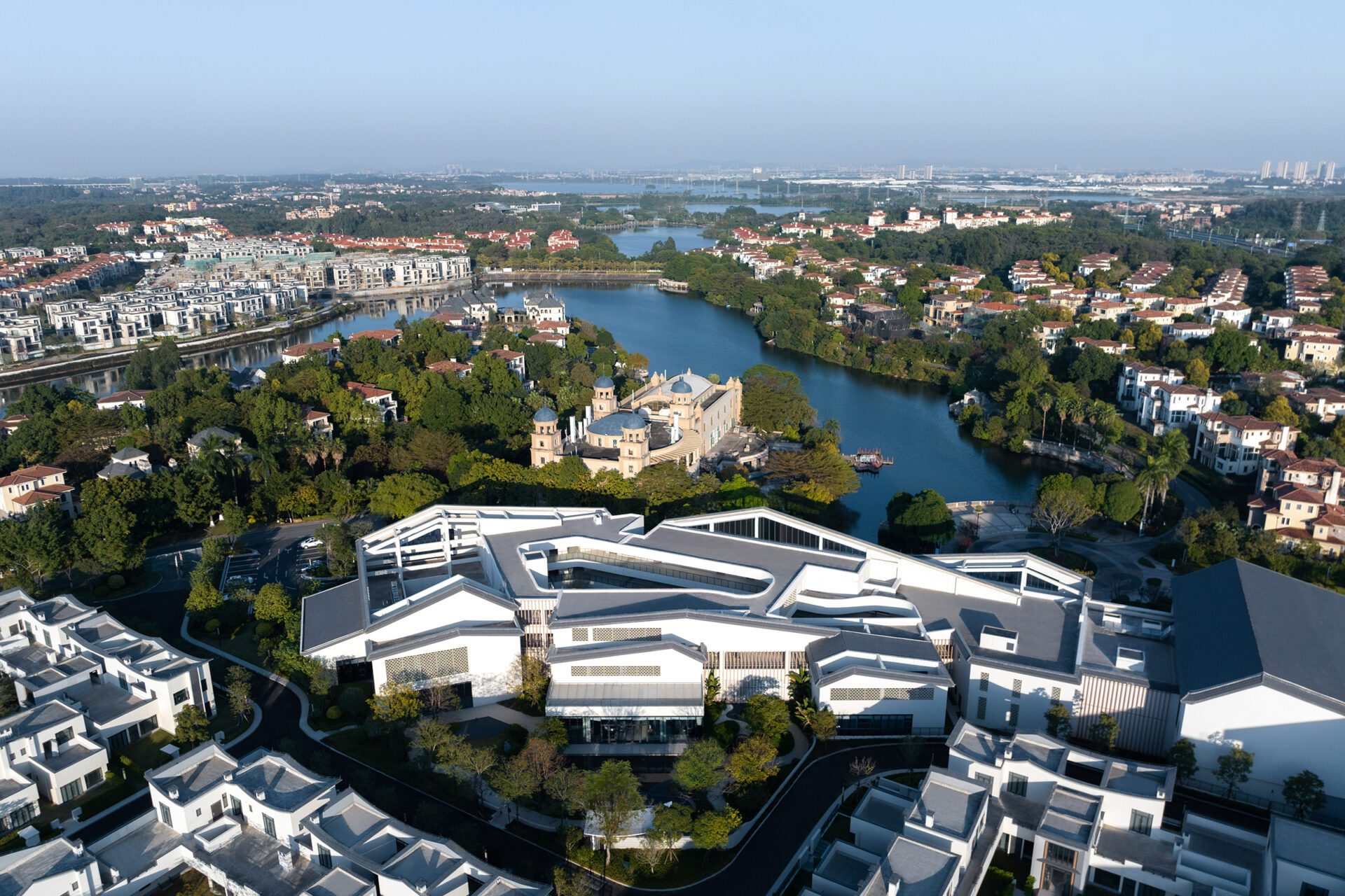 Sanshui, a region of natural wonder in Foshan. During the schematic stage, we attempted to recreate and reinterpret the distinctive water landscape. For an irregular location, we attempted to capture fluid and zigzag form in harmony with line and point. We etherealized the building with a flowing rhythm to realize its functions. Consequently, we created a space that encourages dialogue between the architectural position and the landscape, and is merged as one entity.