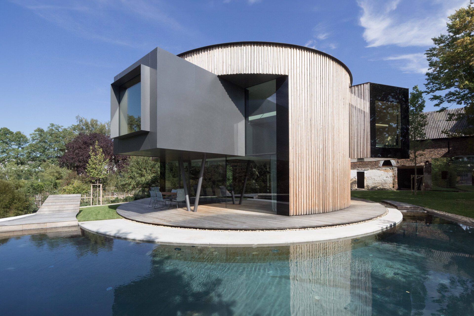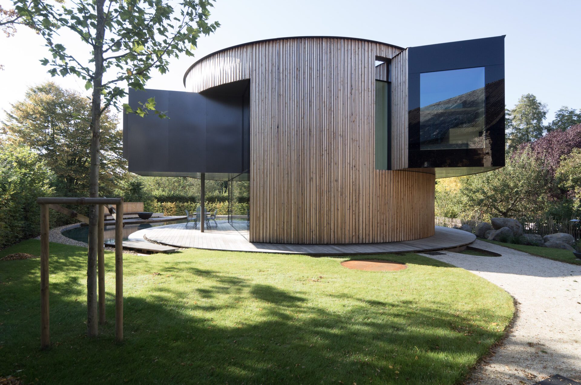Located on the outskirts of the city near the countryside, the building was designed as a residential house. The special feature: Like a sunflower, the structure rotates with the course of the sun. In the winter, the heating requirement is minimized due to the solar gains, whereby, in the summer, turning into the shade protects the house from overheating.
