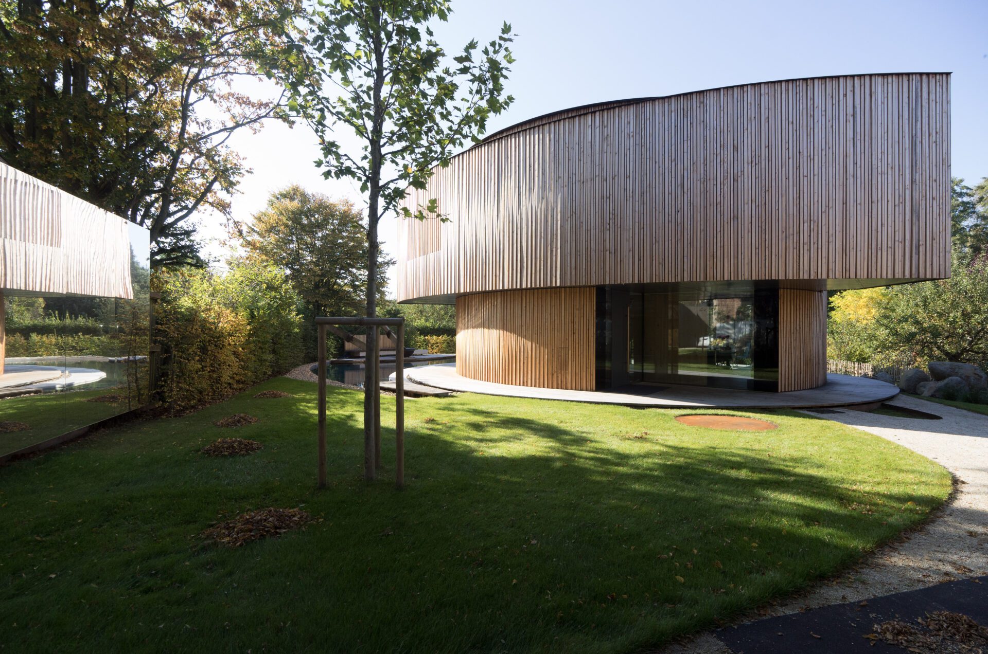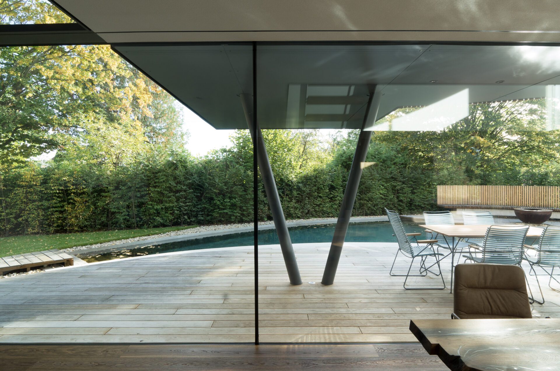 The building was constructed with sustainability in mind. Building materials were used according to their significance. The building was realized as a prefabricated modern timber frame construction due to the economic efficiency and ecological aspects, but also on account of its weight. Oakwood as a native hardwood was used in the exterior, for the decking of the terrace, and in the interior for the furniture, the wall cladding and for the parquet flooring.
