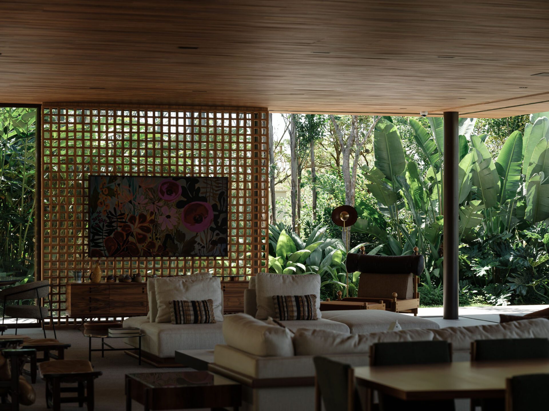Located in the countryside near São Paulo, this house features an open and contemporary design landscape. The project embraces the natural topography of the site and prioritizes integration between indoor and outdoor spaces. Generous openings and large glass panels allow for an abundance of natural light to flood the interiors throughout the day, enhancing the sense of openness and connection with nature. The landscape design is present in all areas of the house, reinforcing the architecture’s lightness and fluidity. Native and tropical species were carefully selected to ensure resilience, low maintenance, and year-round greenery.