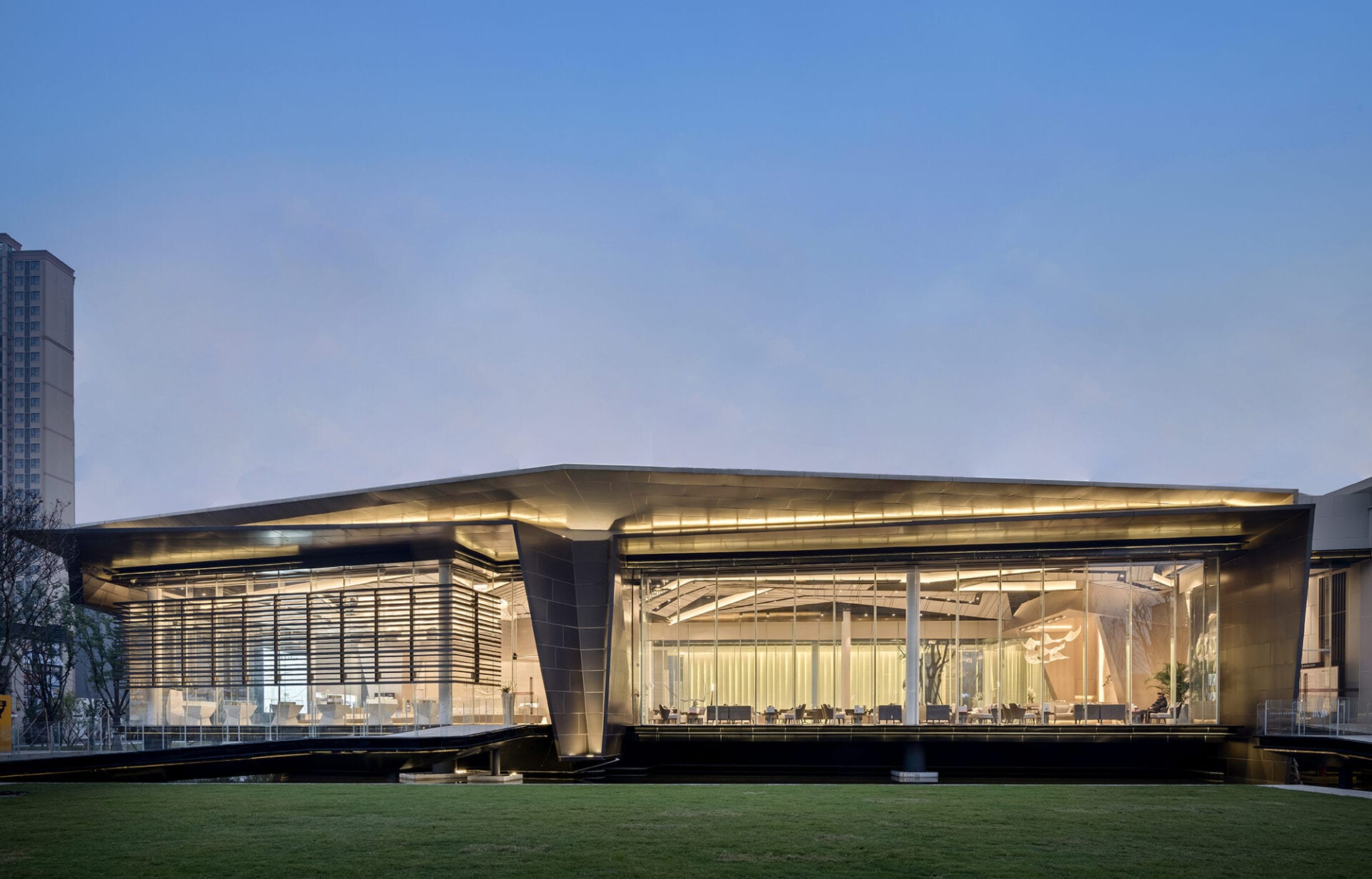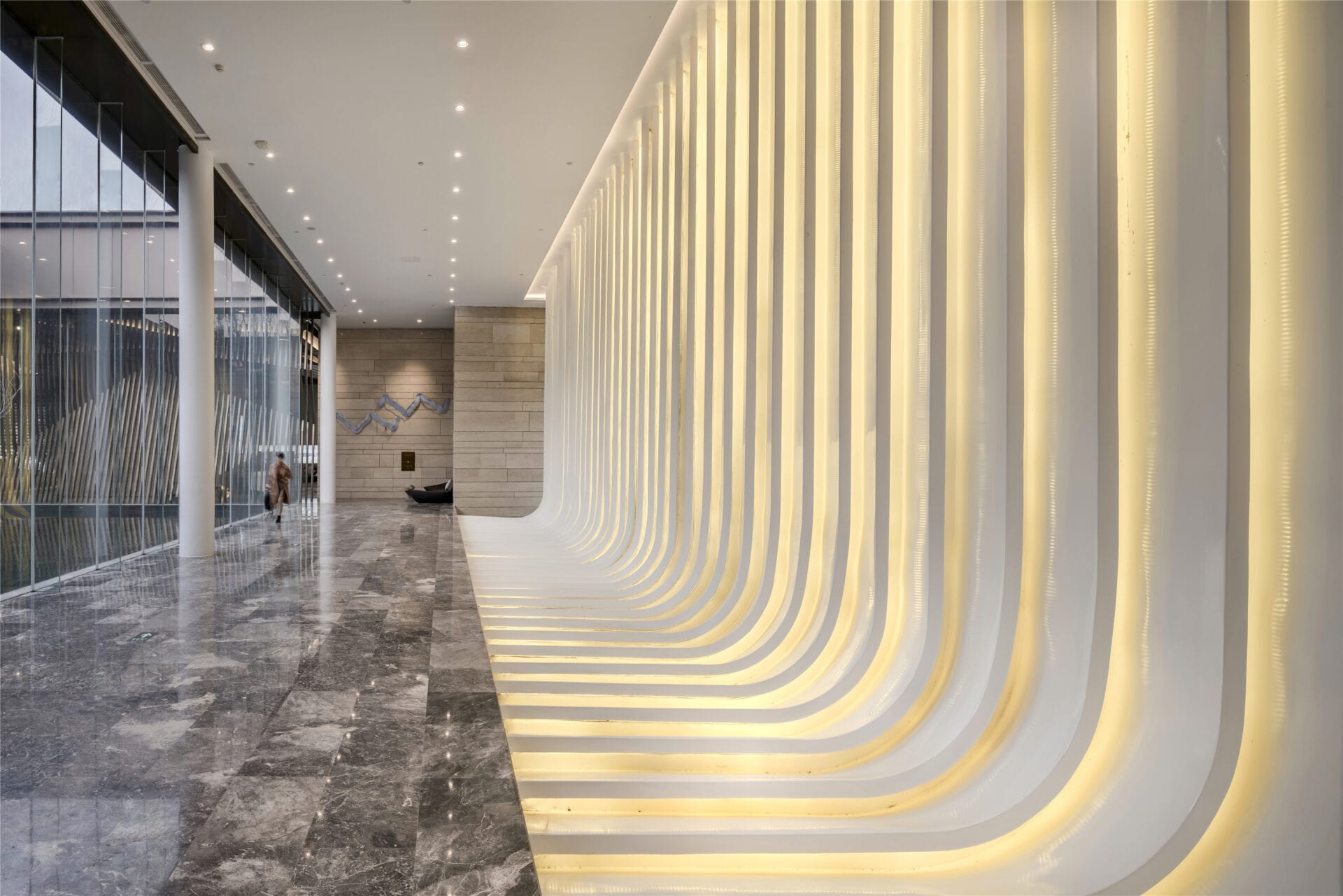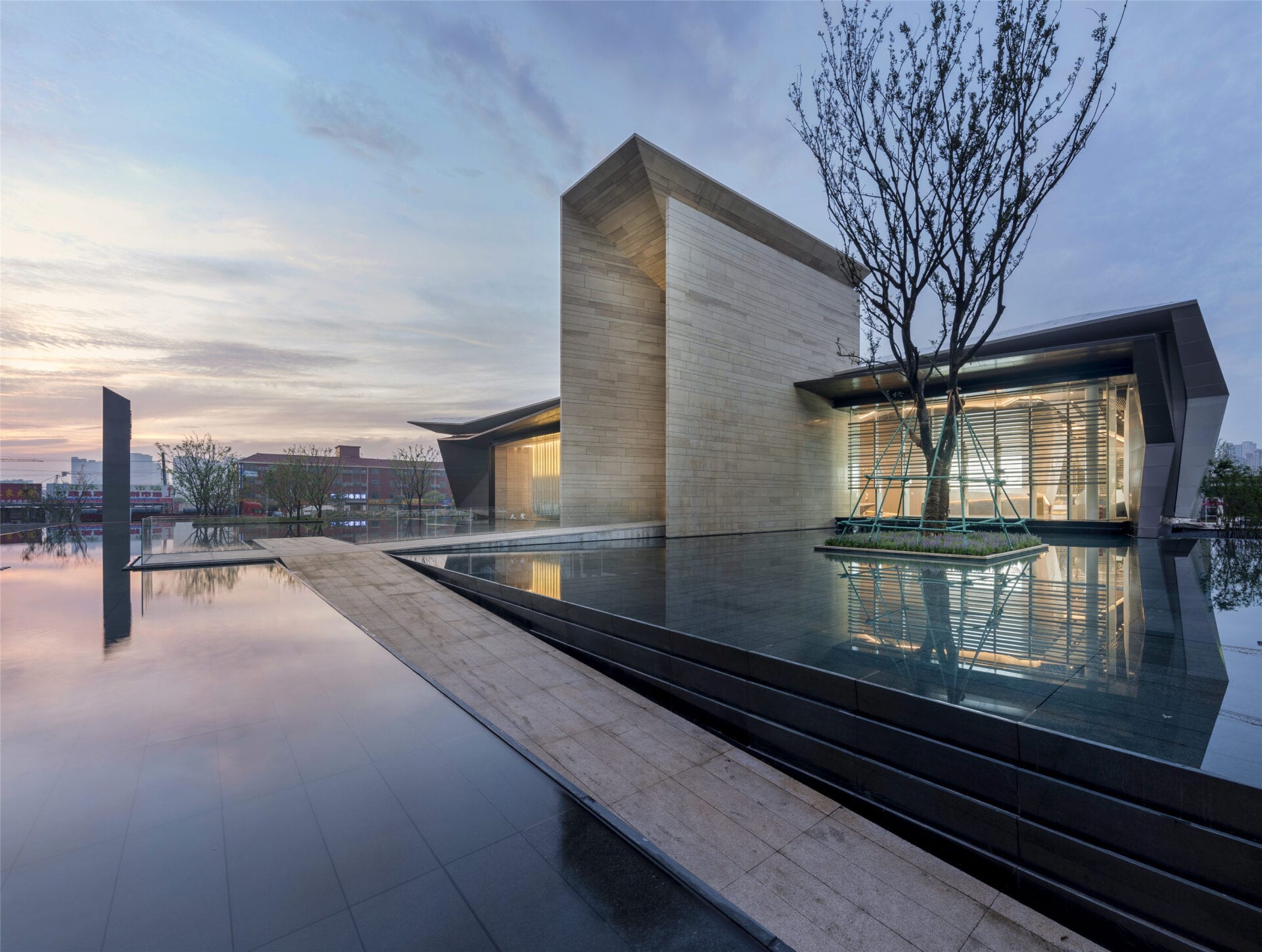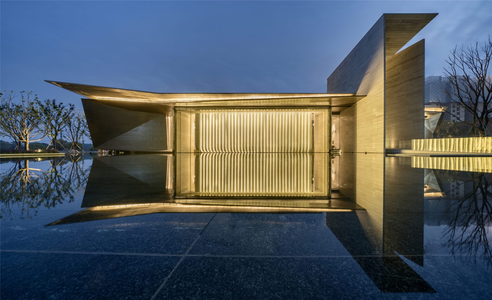 This project is located in Wuhan, which is also known as Jiangcheng because it has many rivers. Water is the theme in this case. The architectural design conveys the relation of water, architecture and nature by a transparent concept. The designer integrate the three parts of interior,architecture,landscape into one and form a experience space of gallery-style exhibition in the way of integration of architecture, interior and landscape. A large pool is designed in front of the architecture and it looks like that the whole building is floating on the water. We design a luminous water curtain wall for exterior elevation of the architecture to echoing the theme of water. Luminous water curtain wall is consisted by LED light strips, the running light strip looks like running water, which is reflected in the water pond. The water curtain wall has two surfaces, one is the exterior elevation of the architecture and the other is the interior background wall.