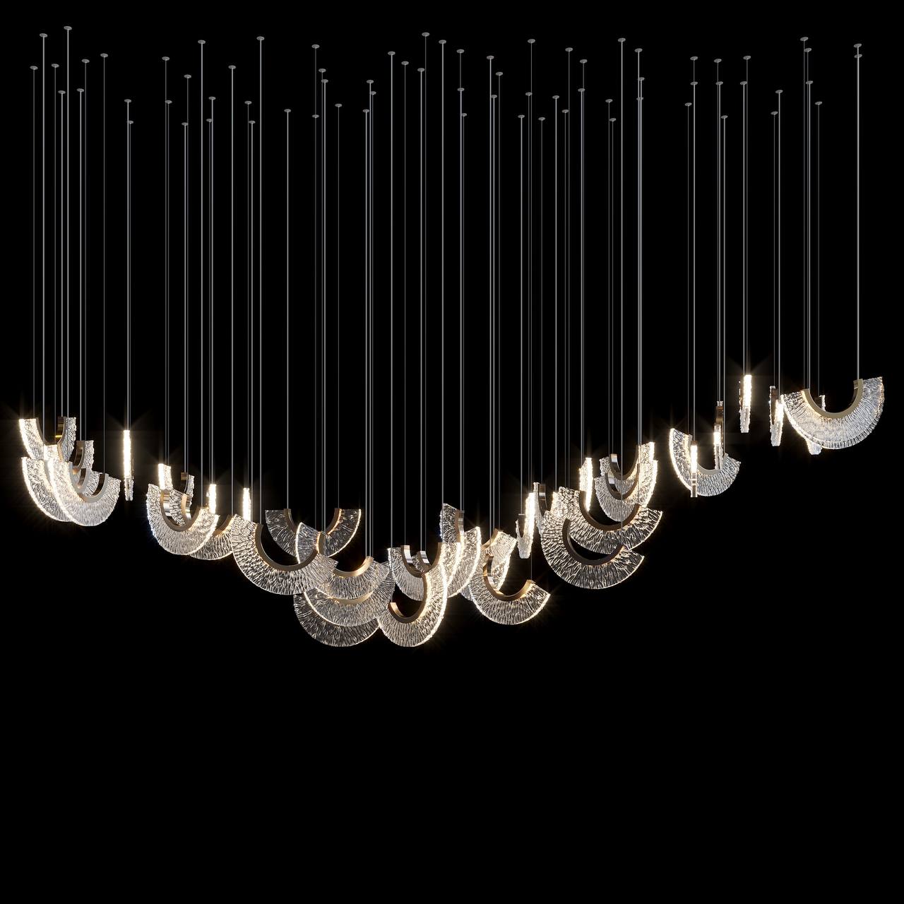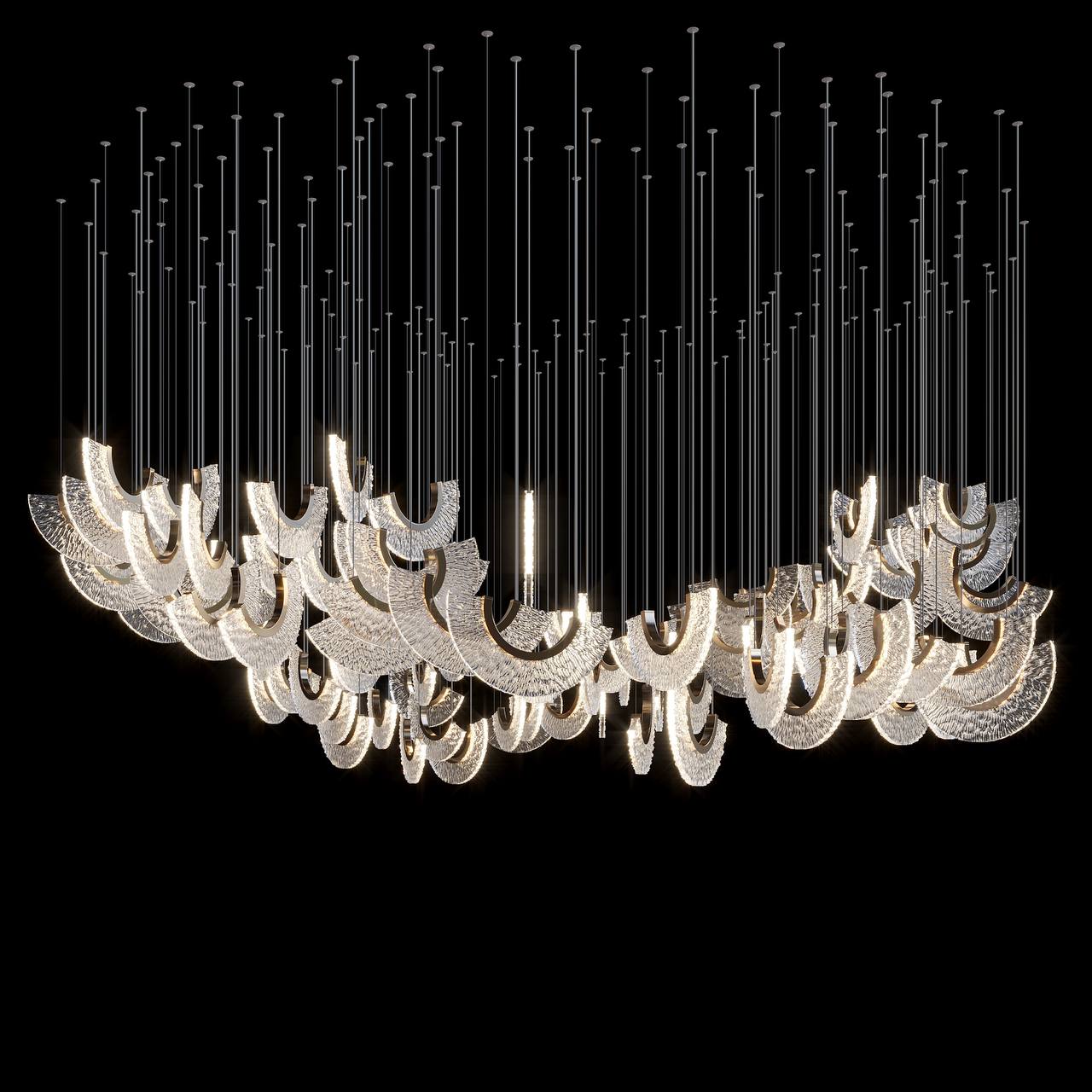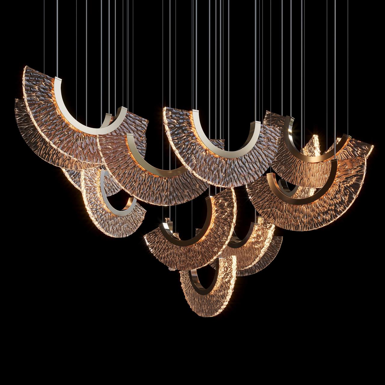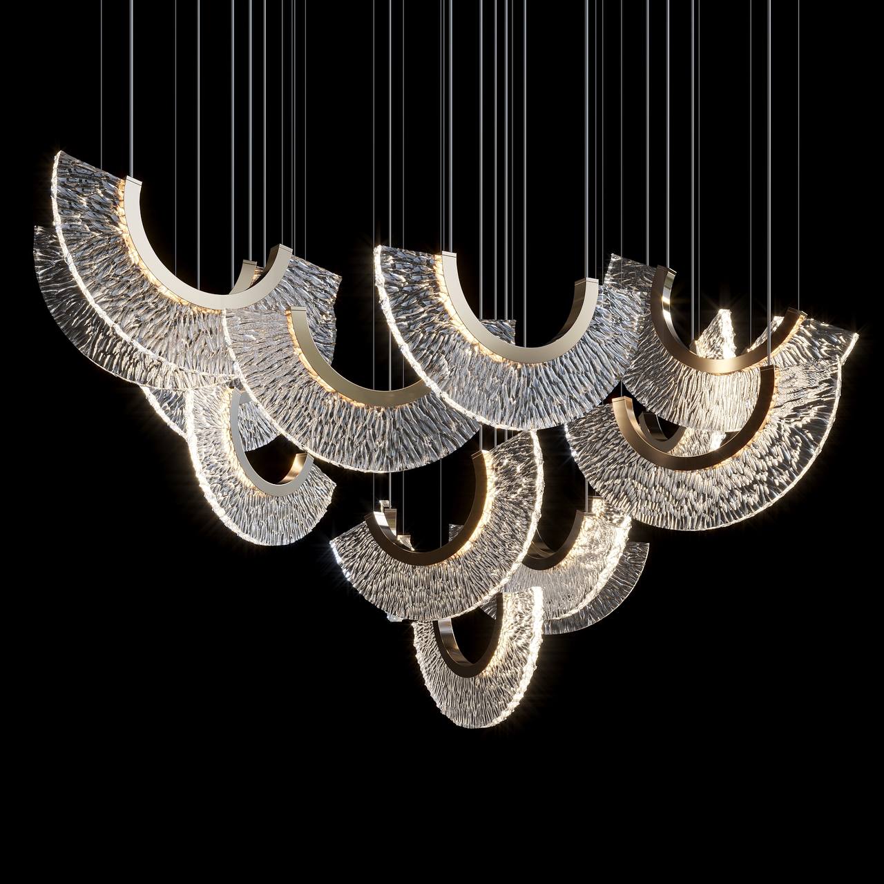 The LC0458 lighting composition by Vargov®Design perfectly balances contemporary design and refined glass textures. Its elements, shaped like semi-circles made from textured glass, create a unique interplay of light and shadow.